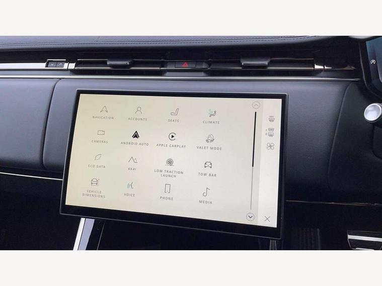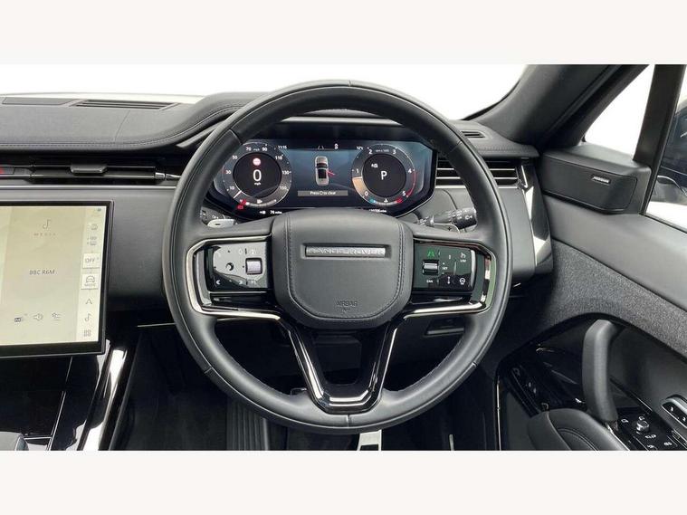 13.1" Touchscreen, 3D 360 degree surround camera with wade sensing, Adaptive cruise control with steering assist, Android Auto, Apple car play, Blind spot assist, Bluetooth connectivity streaming, Driver condition response, Eco mode, Electric power assisted steering (EPAS), Interactive Driver display instrument cluster, Lane departure warning system, Lane keep assist, Push button start, Rear collision monitor, Rear traffic monitor, Remote, Traffic sign recognition with adaptive speed limiter, Trip computer, Wireless device charging, 8 speed automatic transmission, Adaptive dynamics, All wheel drive system, Automatic access height, Dynamic air suspension, Terrain Response 2, DAB Radio (Digital Audio Broadcasting), Incontrol protect - SOS emergency call with automatic collision detection, optimised assistance call and Incontrol remote app essential, Pivi pro connected, USB/aux input socket, Adaptive brake lights, Automatic headlight levelling, Automatic headlights, Centre high mounted stop light, Electric heated/power fold memory door mirrors with approach lights and auto dimming driver side, Electric windows with one touch open/close and anti trap, Flush deployable exterior door handles, Follow me home lighting, Front and rear recovery eyes, Headlight power wash, Heated rear window, Heated washer jets, Heated windscreen, LED tail lights, Metal load space scuff plates, No badges, Rain sensing windscreen wipers, Rear animated directional indicators, Rear fog lights, Rear side wing doors, Rear wash/wipe, Remote window closing, Side repeater indicators in mirror, Trailer stability assist, Winter wiper park position, 3 seat bench in 2nd row, 60:40 seats with power recline and loadthrough, Air quality sensor, Auto air recirculation, Bright metal foot pedals, Centre console with armrest, Customer configurable single point entry, Driver's footrest, Easy boot loading, Ebony console door armrests and seatbelts, Electric adjustable steering column, Extended leather upgrade, Front and rear cupholders, Front door storage space, Front head restraints, Front map lights, Front seat back map pockets, Front stowage pocket, Front/rear passenger grab handles, Gearshift paddles, Heated steering wheel, Isofix child seat preparation, Loadspace cover, Loadspace Hook, Loadspace light, Loadspace mounting provisions, Lockable glovebox, Luggage tie-downs in loadspace, Multifunction steering wheel, Pollen filter, Power socket, Rear centre armrest, Rear head restraints, Rear ISOFIX, Single front passenger seat, Three 12V accessory power outlets, Upper secondary glovebox, Online pack with data plan - Range Rover Sport, 3 point seatbelts on all seats, Anti-lock braking system (ABS), Brake pre-fill technology, Configurable autolock, Cornering brake control (CBC), DSC - Dynamic Stability Control, EBD - Electronic brakeforce distribution, Electric parking brake, Electronic traction control, Emergency braking, Front seatbelt pretensioners, Front side airbags, Height adjustable front seatbelts, Hill descent control, Hill launch assist, Low traction launch, Occupant protection assist, Passenger seat occupant detector with front airbags, Power operated child locks, Roll stability control, Seatbelt warning, TPMS (Tyre pressure monitoring system), Immobiliser, Intrusion sensor, Keyless entry, Locking wheel nuts, Perimetric and volumetric anti theft alarm, Remote locking, Moonlight noble chrome interior finishers,