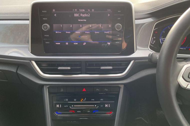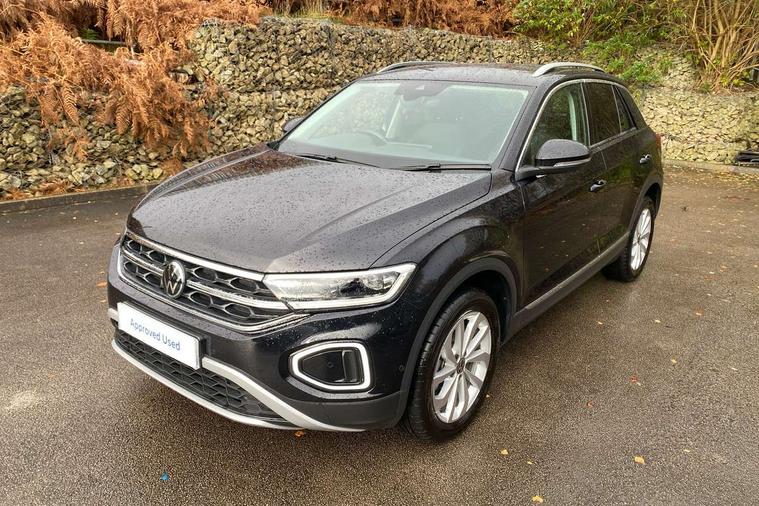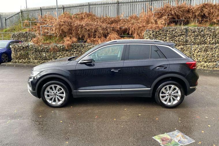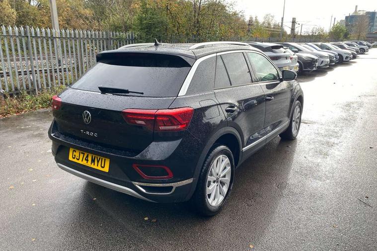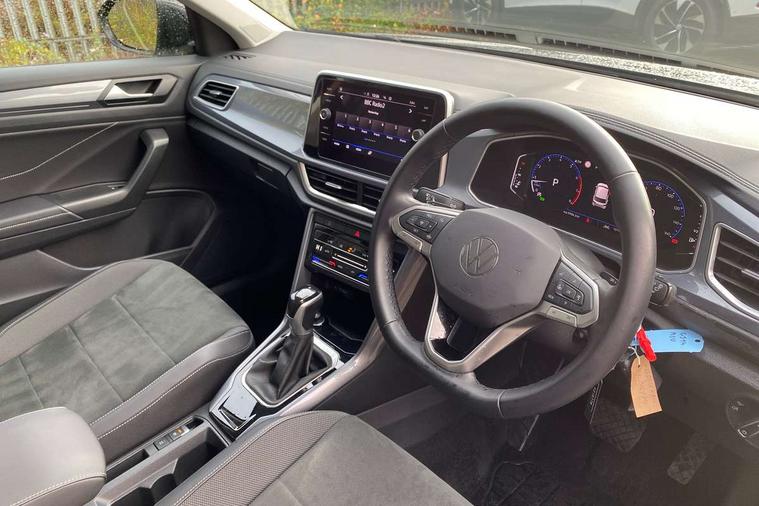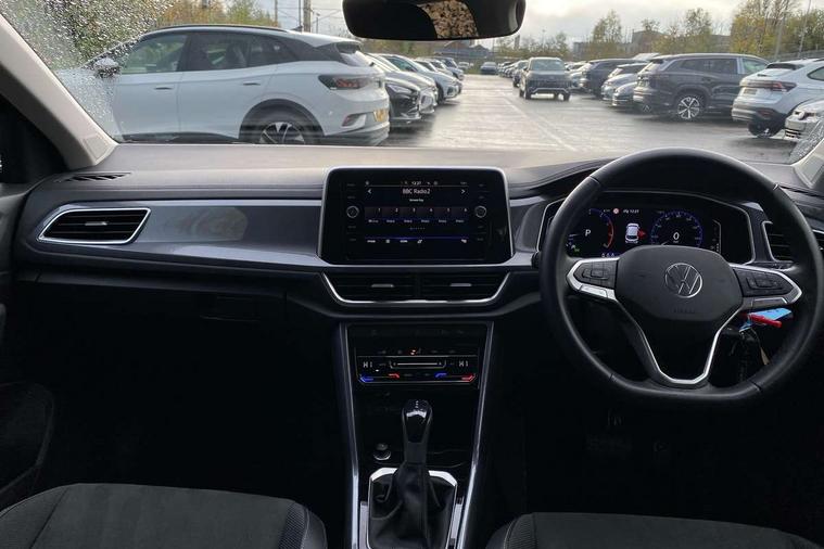 10.25" Digital cockpit pro, Advanced driver attention and drowsiness monitor, Emergency call service, Lane keeping system Lane Assist, Mobile phone interface, Modified key software - reduce switch off time for key status change to Long no motion, Online services, Park assist including front and rear parking sensors, Power assisted speed sensitive steering, Service interval indicator, Tailgate/trunk lid release from outside, Think blue trainer driver tips and journey analysis, Warning sound and light for front seatbelts unfastened, Wireless app connect, Wireless Smartphone charger, Battery regeneration during braking, Start/stop function with battery regeneration, DAB Digital radio, Diversity antenna for FM reception, Front and rear 6 speakers, Music playback - MP3, WMA and AAC files, Premium USB cable in choice of either Apple or Android smartphone compatibility, SD card slot, Simultaneous pairing of 2 compatible mobile devices, Title and cover art display, We Connect and We Connect Plus functionality, Auto dimming interior rear view mirror, Automatic hazard lights activation under emergency braking, Automatic headlight control with LED separate daytime running lights with coming/leaving home function, Body colour sports bumpers with silver metallic underbody fascia, Dynamic headlight range control with self adjusting whilst driving, Electrically adjustable and heated door mirrors, Extended roof spoiler, Exterior mirrors aspherical on driver side, convex on front passenger side, External USB type C socket and charging sockets, Front windscreen wiper with intermittent wipe and 4 position delay, Heated rear window, LED 3rd brake light, LED rear combination lamps, LED rear number plate lights, Light mode for poor weather, rain, fog or snow, Power windows with comfort operation and circuit breaker, Rain sensor, Rear exhaust tailpipe, Rear fog light on one side and reversing lights on both sides, Rear side wing doors, Rear wash/wipe with intermittent wipe setting, Remote electrically foldable door mirrors, puddle lights and reverse activated passenger's door mirror, 12V power socket in centre console, 3 rear head restraints, 3 seat bench in 2nd row, 4 load lashing points in luggage compartment, Air care climatronic air conditoning system with active combination filter and 2-zone temperature control, Chrome plated radiator grille inserts, air vent surrounds and light switch surrounds, Door and side trim panel with leatherette insert, Drawer under drivers seat, Front + rear carpet mats, Front centre armrest, Front comfort sports seats, Front cupholders x 2, Front footwell illumination, Front seat back storage pockets, Glove compartment door with light, Instrument lighting, white adjustable panel illumination, Interior ambient lighting and surround lighting, Interior light delay, Isofix child seat preparation, Leather gearshift handle, LED interior light with switch off delay/dimmer and 2 front/rear LED reading lights, Load-through provision with cup holder when folded down ('Unsplit rear seat bench, split folding backrest, with centre armrest), Luggage compartment lighting, Non-folding front passenger seat backrest, Single front passenger seat, Storage compartment in left and right luggage area, Storage compartment in rear doors, Storage compartments in driver and front passenger doors, Sunvisors with illuminated vanity mirrors, Variable boot floor, height adjustable and removable, Driver assistance pack without proactive passenger protection - T-Roc, 3 point height adj front seatbelts + pretensioners, 3 point seatbelts in outer rear with ECE label, ABS, Child locks on rear doors, City emergency braking and pedestrian monitoring, Driver and front passenger airbag with front passenger airbag deactivation, Driver and front passenger safety-optimised head restraints, Drivers seatbelt reminder, Electronic parking brake, Electronic Stability Control (ESC) inc EDL (Electronic Differential Lock) and ASR (Traction Control), Front and rear passengers curtain airbag system including front side airbags, Predictive pedestrian protection, Rear disc brakes, Two tone horn, Tyre pressure loss indicator, Volkswagen roadside assistance, Trims for alloy wheels,