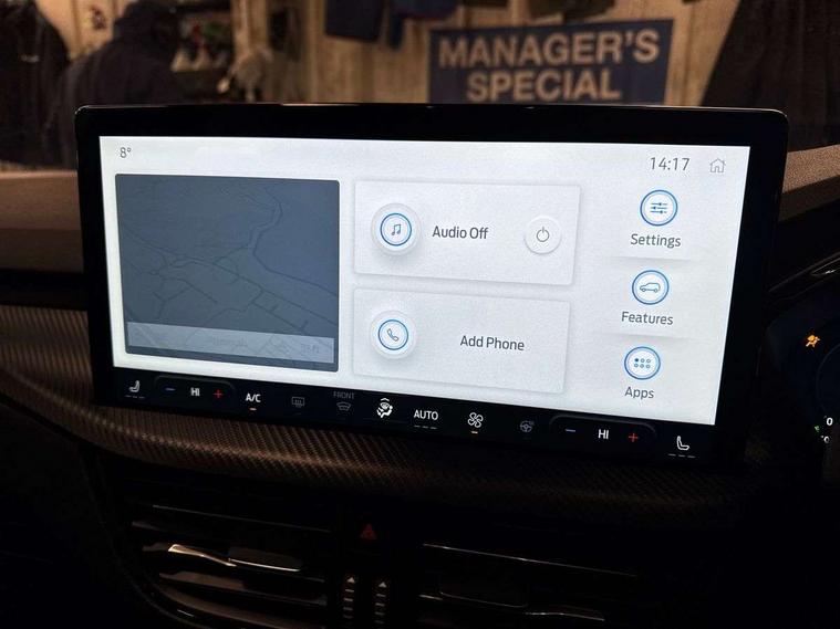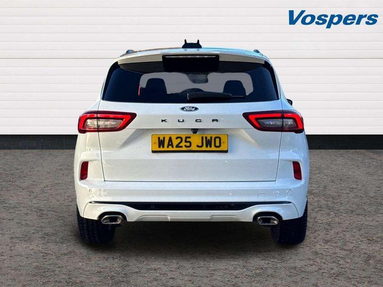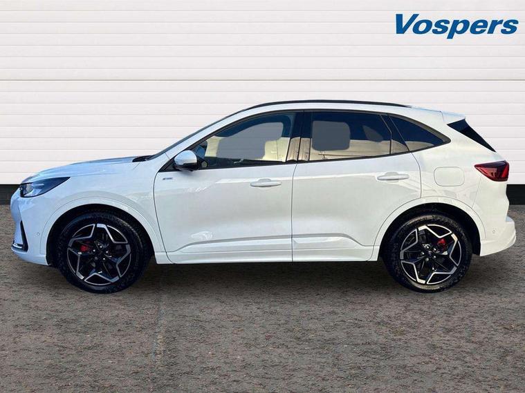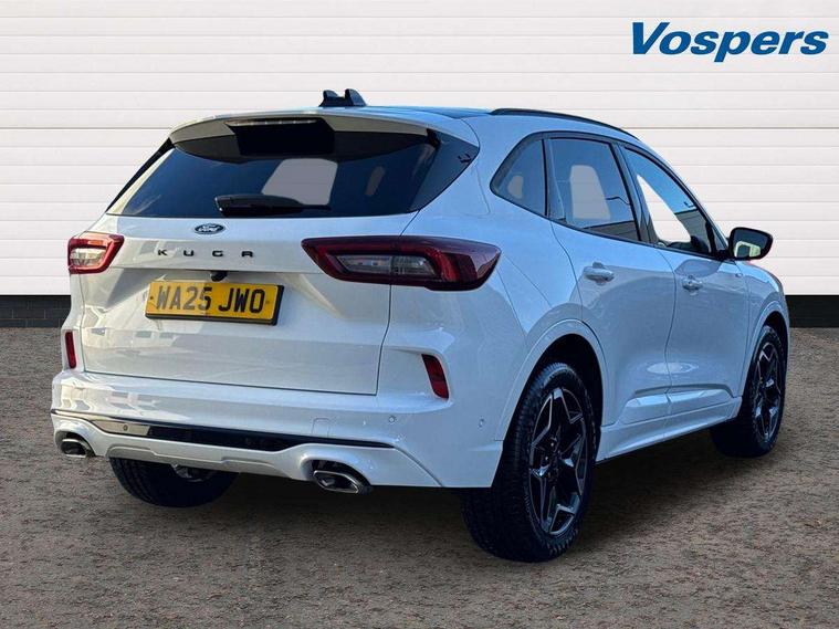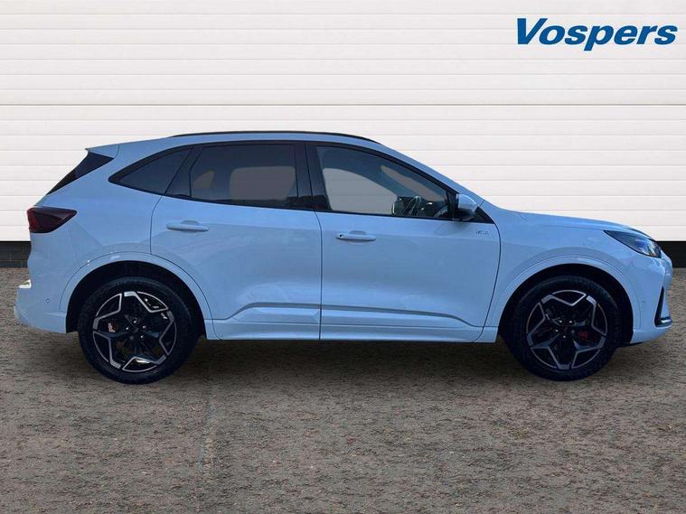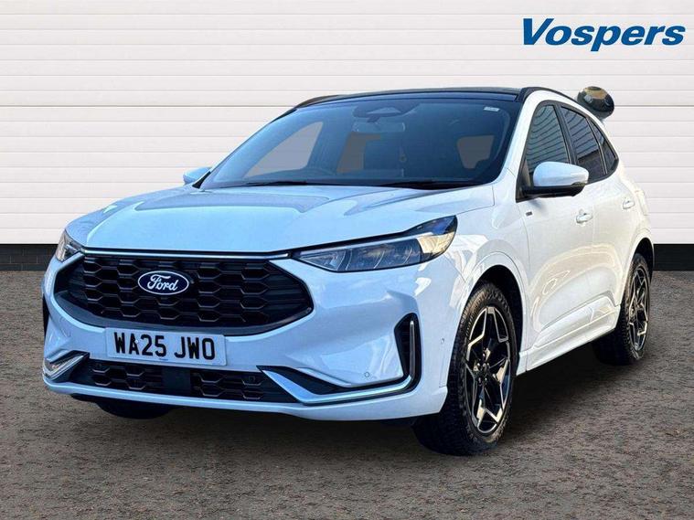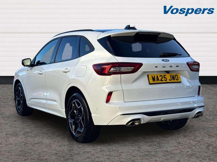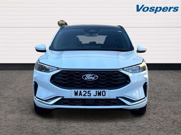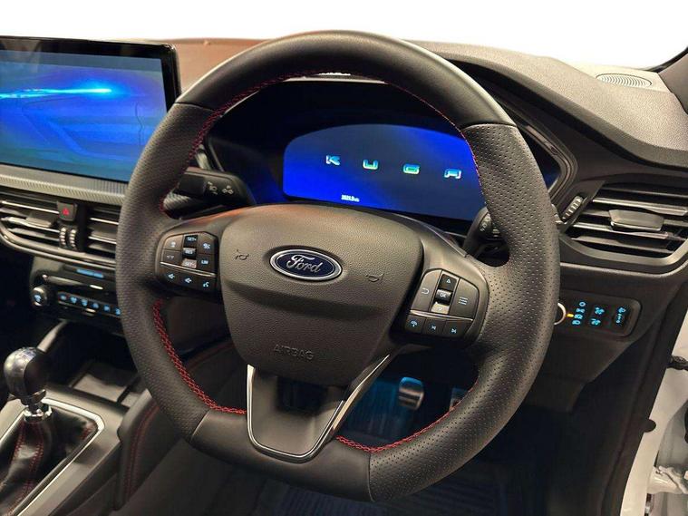 12.3" digital colour instrument cluster, 360 degree camera, e-Call (emergency call), Ford easy fuel, Ford SYNC 4 Navigation with 13" touchscreen, DAB radio, emergency assistance, Andriod Auto/Apple CarPlay, 5G modem & Ford Pass connect, Front and rear parking sensors, Hands free power tailgate, Lane keeping aid with lane departure warning, Power assist steering, Selectable drive modes, Service interval indicator, Sports suspension, Twist beam rear suspension, B&O premium audio system with 10 speakers, subwoofer and 2 USB ports, Auto headlamps with high and low beam, Black roof rails, Body colour bumpers, Front LED fog lamps, Large rear spoiler, LED daytime running lights, LED rear lights, Pop out door edge protectors, Power front/rear windows with global close, Power heated folding door mirrors with puddle lights, memory function and camera, Power opening panoramic roof, Quickclear heated windscreen, Rain sensing wipers, Rear privacy glass, Rear side wing doors, Rear wiper, ST-Line body styling kit, Third brake light, 12 way ergonomic power adjust driver's seat with memory (AGR certified), 12 way ergonomic power adjust passenger seat (AGR certified), 2nd row sliding seats, Electronic automatic temperature control (EATC), Front and rear head restraints, Partial premium touch sensico upholstery, Rear centre head restraint, Single front passenger seat, Sports seats, Driver assistance pack with intelligent adaptive cruise control - Kuga, Winter pack - Kuga, 3x3 point rear seatbelts, Airbags - front driver/passenger, front and rear curtain, Drivers knee airbag, Dynamic brake support, Electronic stability control (ESC) and ABS, Evasive steering assist, Ford MyKey Gen 2 safety system, Manual child proof rear door locks, Pre collision assist with autonomous emergency braking, Rear seat Occupancy alert, Red brake calipers, Tyre pressure monitoring system, Engine immobiliser, Keyless entry and Ford power start button (Keyless start), Locking wheel nuts, Remote powered central double locking doors, Thatcham category 1 alarm,