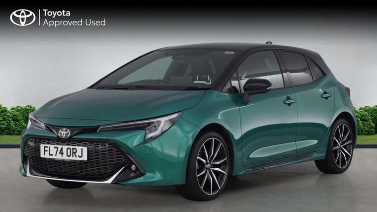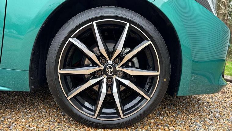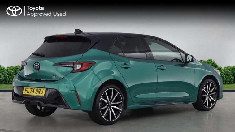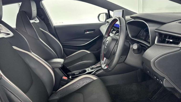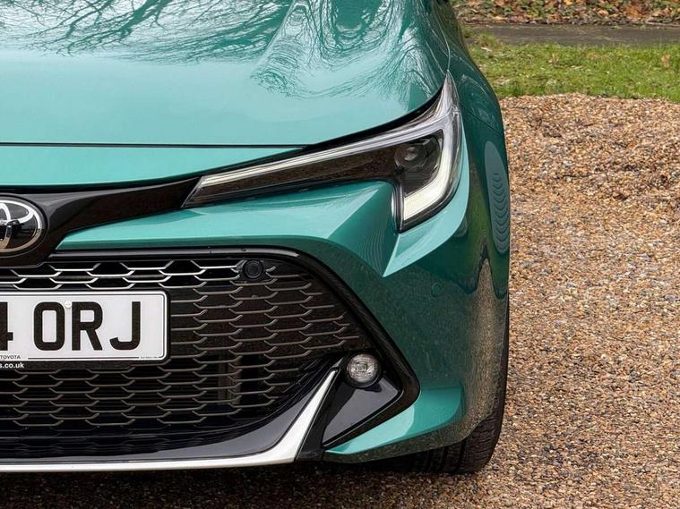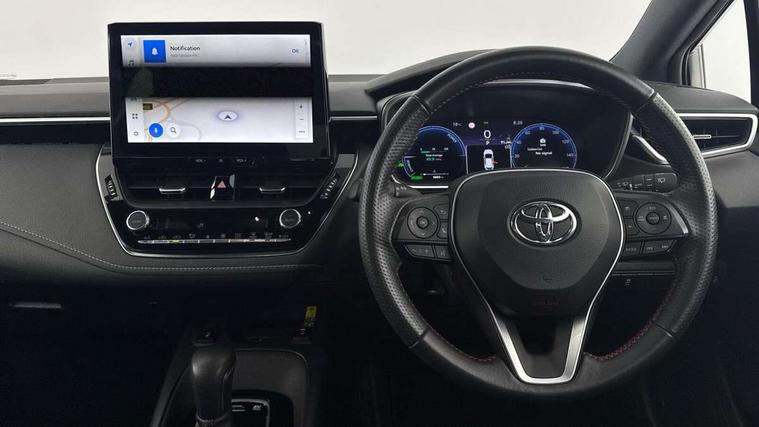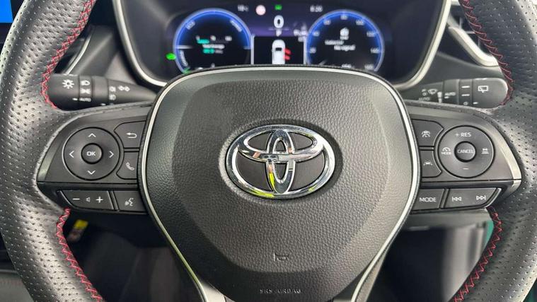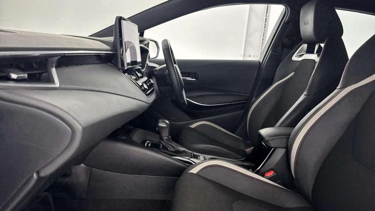 10.5" Multimedia display screen, Bluetooth telephone connectivity, Connected car functionality upgrade, tracker, remote status and e-care, Drive mode select (Eco, Normal), E-call, Electrically assisted power steering, EV drive indicator, Front and rear parking sensors with auto brake, Full Digital 12.3" TFT Digital Combimeter, Key reminder warning, Lane Departure Alert (LDA) switch on steering wheel, Memory on adjustable speed limiter, MyT connected services, Proactive driving assist (PDA), Reversing camera, Smart entry and push button start with GR Logo, Smartphone integration with Apple CarPlay and wired android auto, Tailgate, Toyota remote services, Toyota smart connect navigation, Wireless charger, Gasoline particulate filter, Vehicle Stability Control (VSC), 6 speakers, AM/FM radio, DAB Digital radio, Front USB-C in centre console, Front USB-C in dashboard, Smart voice assist/ Voice recognition, USB and Aux in connectors + 12V front outlet, Anti-jam protection on power windows, Auto up and down function on all power windows, Automatic folding mirrors, Automatic headlights with high beam assist, Black centre and side air vents, Black toyota logo in front, Body coloured bumpers, Body coloured door mirrors, Body coloured outside door handles, Dark chrome lower grille, Electrochromatic mirror, Follow me home headlights, GR Sport dark chrome front mesh grille and black rear grille, GR Sport exclusive under guard, GR sport scuff plates, LED daytime running lights, LED dual beam projector headlights, LED front fog lights, LED High mounted stop light, LED rear combi lights with LED lightguide, Manual headlight levelling system, New grille pattern, Noise reduction layer on windscreen, Piano black diffuser, Power adjustable heated door mirrors, Power front windows, Power rear windows, Privacy glass with UV filter, Rain sensing wipers, Rear side wing doors, Rear window defogger, Rear window wiper, Reverse tilting door mirrors, Rocker and door lower moulding, Roof spoiler, Satin chrome insert on front air vents, Satin chrome insert on front door assist grips, Satin silver front spoiler, Shark fin antenna, Tailgate release with push button, Time adjustment on intermittent wiper, Turning signal integrated indicators in door mirrors, Unique lower skirt, Unique side rocker with black insert, UV-filter on driver and passenger windows, 2 Shopping bag hooks in luggage compartment, 3 rear headrests, 3 seat bench in 2nd row, 3 spoke leather steering wheel with satin insert/red stitching + gear knob, 4 tie down hooks in luggage compartment, 60/40 split folding rear seat, Adaptive cruise control (ACC) switch on steering wheel, Adjustable speed limiter switch on steering wheel, Audio, multimedia and telephone switches on steering wheel, Black armrest on centre console box, Black gear shift console, Boot light, Centre room light, Driver and front passenger personal light, Driver and passenger assist grip, Driver and passenger seatback pockets, Driver and passenger sun visor with mirror and light, Dual zone automatic air conditioning with ECO mode switch, Fabric/synthetic leather upholstery, Front and rear cup and bottle holders, Front door pockets, Front head restraints, Front passenger seat, Front sliding synthetic leather armrest, GR Sports seats with partial leather bolsters, Heated seats, Illuminated entry system in room lamp, ISOFIX seat fixing (2 fixings on rear outer seats), Manual height adjustable for driver and front passenger seat, Manually tilt with sliding driver and front passenger seat, Nanoe-X air purifier, Parcel shelf, Pollen filter, Power window switches with satin chrome inserts, Rear armrest with 2 cupholders, Rear passenger coat hooks (2), Red stitching on gear shift, Remote air conditioning, Satin chrome inside door handles, Satin chrome surround on speedometer, Sliding armrest on centre console box, Slow opening glovebox with lights, Textile floor mats, Tilt/telescopic steering column, Voice recognition switch on steering wheel, Whiplash Injury Lessening (WIL) feature (active headrest) for seats, White ambient lighting on open tray and front cup holder, Toyota safety sense 3 pack - Corolla, 3x3 point rear seatbelts, Adjustable driver and front passenger seat belt extender to top anchor point, Anti lock braking system + Electronic brake force distribution, Brake assist function, Child locks on rear doors, Downhill Assist Control (DAC), Electronic parking brake, Emergency brake light signal (EBS), Front passenger airbag on/off switch, Front seatbelt reminder, HAC - Hill start assist control, Rear seat belt reminder, Seatbelt pretensioners and force limiters, Supplemental restraint system (SRS) 7 airbags - dual driver, dual side curtain, side impact and driver knee airbags, Traction control, Tyre pressure warning system, Acoustic vehicle alert system (AVAS), Alarm with motion sensor and immobilizer, Power passenger window lock, Remote central locking + deadlocks, GR Sport interior styling with accents and exterior styling, Satin chrome dash trim, Soft touch texture on upper dashboard, Stitching on lower dashboard, 18" Black machined face 10 spoke alloy wheels, Tyre repair kit, Unique wheel finish with red wheel cap,