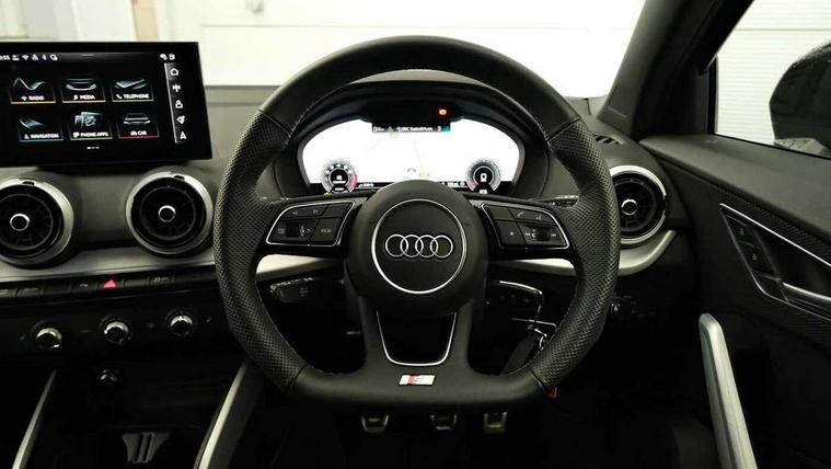 3D map display, Audi connect navigation and infotainment includes innovative services, Audi connect remote and control connects your vehicle to your smartphone, Audi drive select: power steering assistance + engine (modes: comfort, auto, dynamic, efficiency, individual), Audi smartphone interface - Apple carplay/Android Auto, USB connect, 2xSDXC card readers, voice control for navi, telephone, music and 3rd party apps, Audi virtual cockpit, Automatic start/stop system with recuperation, Bluetooth interface includes bluetooth audio streaming, Camera based traffic sign recognition, Cruise control, Distraction and Fatigue warning, E-call, Jukebox hard drive memory for music (10GB), Lane departure warning, MMI navigation plus with 8.8" touchscreen, Natural voice recognition, Power operated tailgate, Progressive steering, Rear parking sensors, Sport suspension, 6 passive loudspeakers, DAB Digital radio, USB type C port, Audi beam, Auto dimming rear view mirror, Black window trims, Bumper in full body colour paint finish, Electrically adjustable, folding, auto dimming and heated door mirrors with integrated LED side indicators, Front windscreen with grey tinted sunband, LED daytime running lights, LED headlights with dipped beam, high beam, position lights, indicators, LED rear lights, LED third brake light, Privacy glass - dark tinted rear and rear side windows from B-pillar backwards, Rear side wing doors, Rear wiper, Variable front intermittent wipers, Wheel arch trims in manhattan grey, 12V socket in front, 3 seat bench in 2nd row, 3 spoke flat bottomed multi-function leather sport steering wheel, 4-way electric lumbar support for front seats including manual seat height adjustment for both front seats, 60/40 split folding rear seat bench, Black carpets, Black cloth headlining, Front and rear head restraints, Front centre armrest, Front sport seats, Front/rear floor mats, Height/reach adjust steering wheel, Illuminated door sill trims with S logo, ISOFIX child seat mounting in front passenger and rear outer seats, Manual air conditioning, Single front passenger seat, Stainless steel pedals, Black styling pack - Q2, 3x3 point rear seatbelts, 6 airbags - Front, curtain and front side airbags, Electromechanical parking brake, Electronic stabilisation control including ABS, ASR and EDL, Front passenger airbag deactivation, Hill hold assist, Pre-sense front with pedestrian recognition, Seatbelt monitoring, Tyre pressure warning light with visual and acoustic warning, Warning triangle and first aid kit, Anti theft alarm, Anti theft wheel bolts, Electronically operated child locks, Remote central door locking, Aluminium interior element, Black dashboard, Gloss black centre console, Matt brushed aluminium trim inlays, Tool kit,