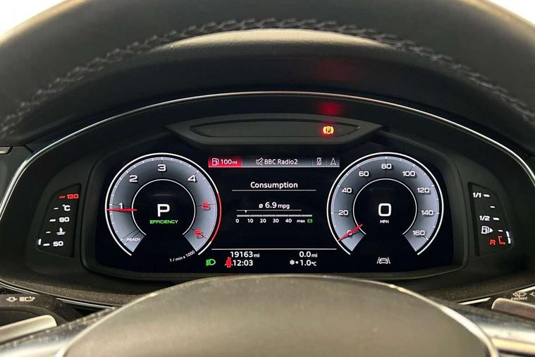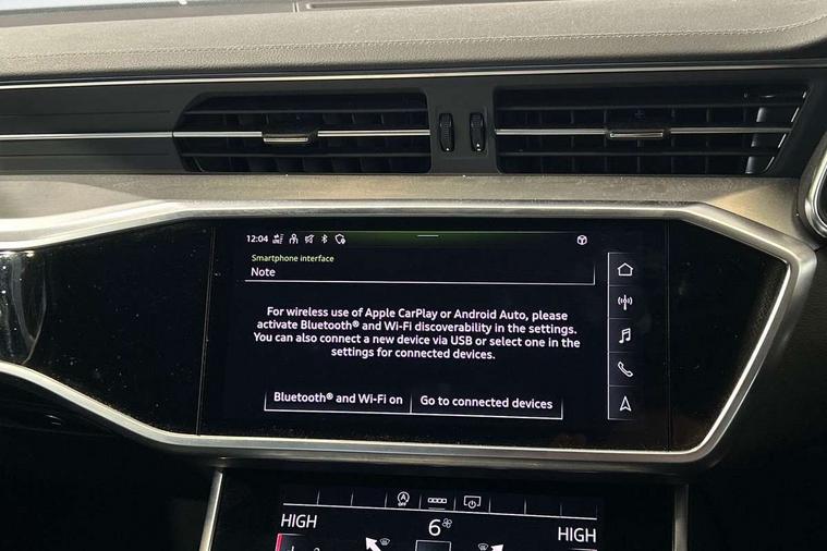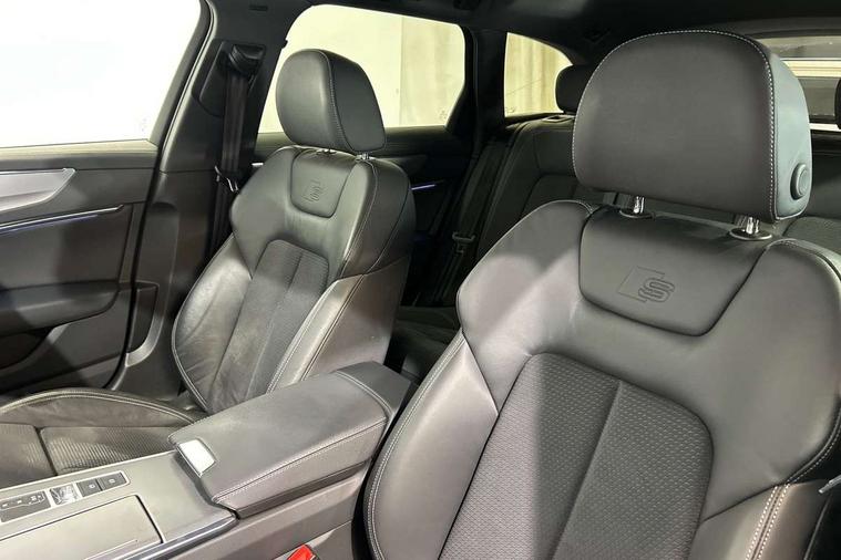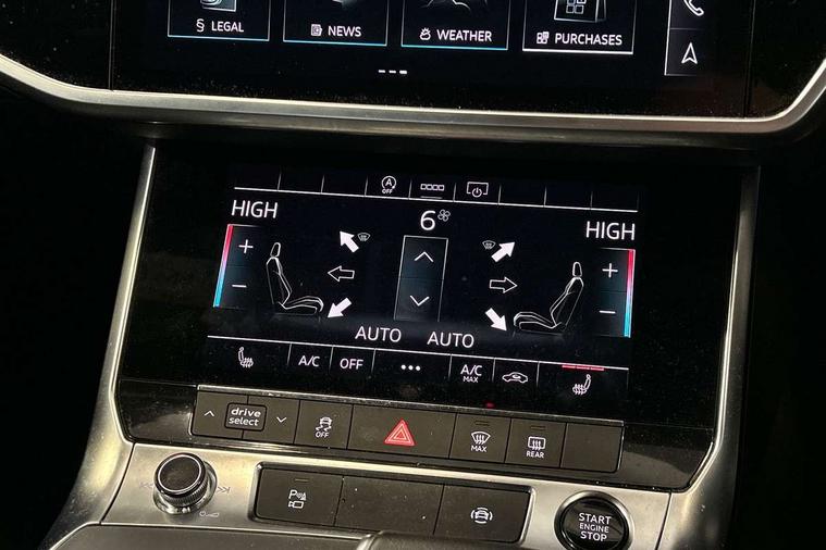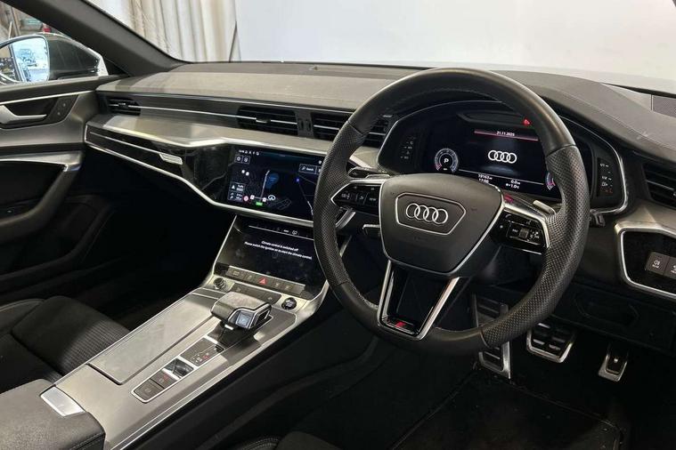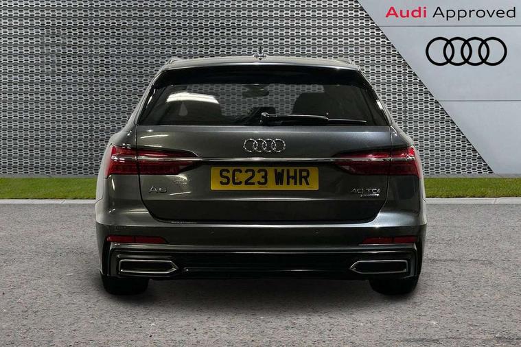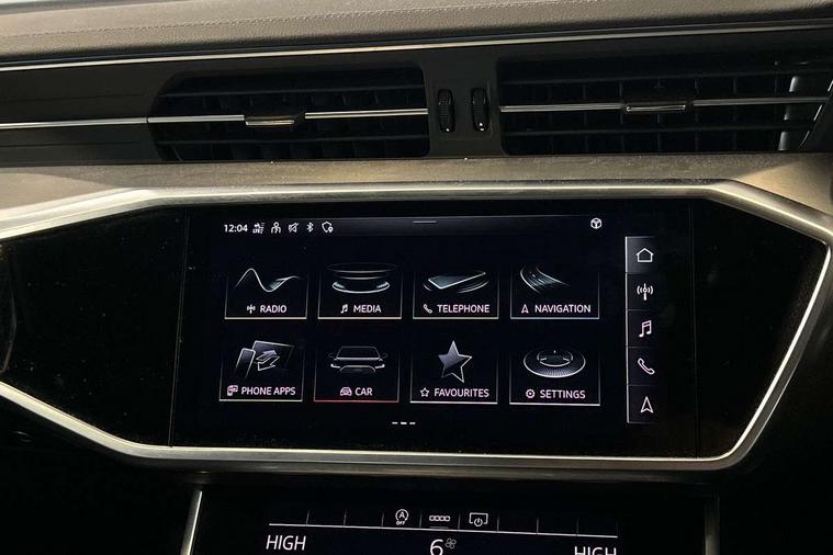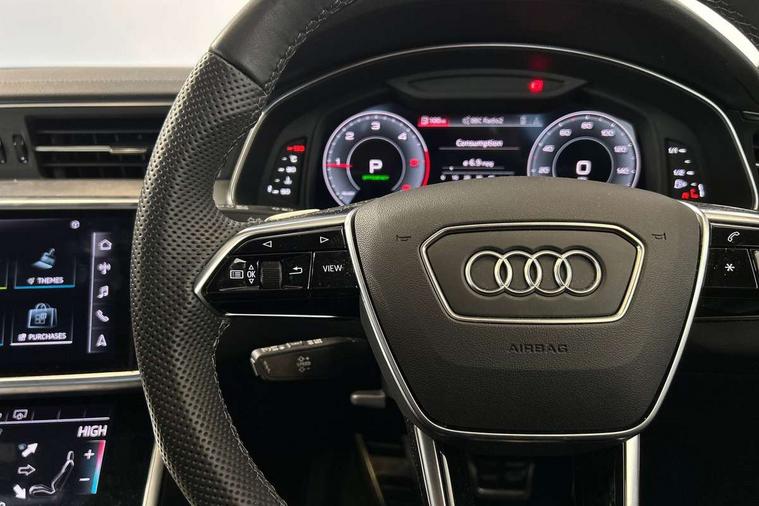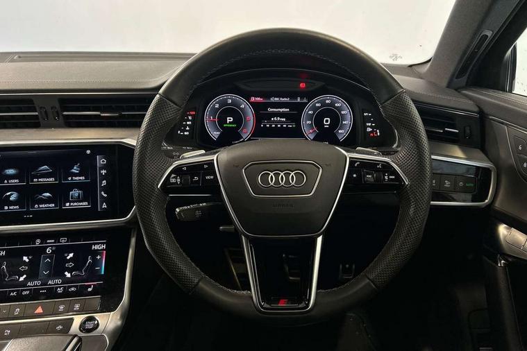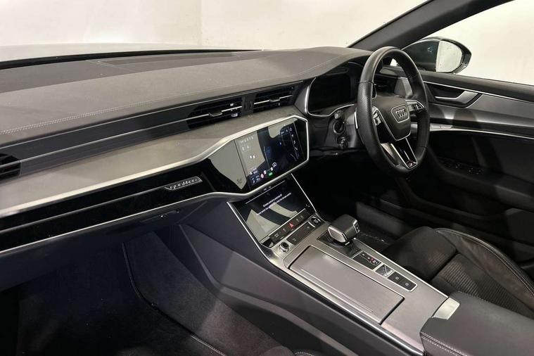 7" high resolution colour driver information display system, Audi connect safety and service (e-call), Audi connect with Amazon Alexa Integration, Audi drive select, Audi parking system plus - acoustic and visual park assist system for front and rear, Automatic start/stop system with coasting functionality, Bluetooth interface, Lane departure warning system, Power operated tailgate, Progressive steering, Rear view camera, Service interval indicator, Smartphone interface includes wireless Apple carplay/Android Auto, Voice control system, 12V Mild hybrid, 24 litre AdBlue tank, Diesel particulate filter, Quattro on demand, Sports suspension, Audi front music interface, Audi sound system, Auxiliary input socket, DAB Digital radio, USB connection, Aluminium roof rails, Body coloured door mirrors, Electric front/rear windows, Frameless auto dimming interior rear view mirror, Front intermittent wipers, Headlight washers, Heat insulating darkened glass in side and rear windows, Heat insulating glass in windshield, LED signature front daytime running light, LED third brake light, Matrix LED headlights, Matt black side air intake grille with inlay in matt aluminium, Privacy glass, Radiator grille in anthracite black matt, single frame in chrome and horizontal struts in matt aluminium silver, Rain and light sensors, Rear side wing doors, Rear wiper, S line air inlet design with inlay in matt aluminium, S Line badge on front fender, S Line front and rear bumpers, S line rear diffuser and grille in matt black with matt aluminium tailpipes, S Line roof edge spoiler, S Line side skirts, Signature rear LED light design, 2 zone deluxe electronic climate control, 4 way electric lumbar support for driver and front passenger, 40/20/40 split folding 3 rear seat bench in 3 parts with rear centre armrest, Black cloth headlining, Black steering wheel insert, Electrically adjustable front seats with driver memory, Front centre armrest, Front head restraints, Heated front seats, Height/reach adjust steering wheel, Illuminated door sill trims with S logo, Illuminated sun visors with vanity mirrors, ISOFIX child seat mounting and Top Tether with front passenger airbag deactivation, Leather gear knob, Luggage compartment system, Perforated leather steering wheel with contrast stitching, Rear headrests, S line front and rear black carpet floor mats with contrast stitching, Single front passenger seat, Stainless steel pedals and foot rest, LED Interior Ambient Lighting Pack - A6, Non smoking pack - A6, Technology pack - A6, 3 point seatbelts on all seats, Airbags - Front side, front and rear including head, Audi pre-sense front, Black seatbelts, EBD - Electronic brakeforce distribution, Electromechanical parking brake, Electronic Stability Control (ESC) including ABS, ASR and EDL, Extended pedestrian protection measures, Manual child proof rear door locks, Seatbelt monitoring, Tyre pressure warning light, Warning triangle and first aid kit, Anti theft alarm with tow away protection, Anti-theft wheel bolts and wheel loosening detection, Immobiliser, Keyless Go, Remote central locking, Matt brushed aluminium dark inlays,