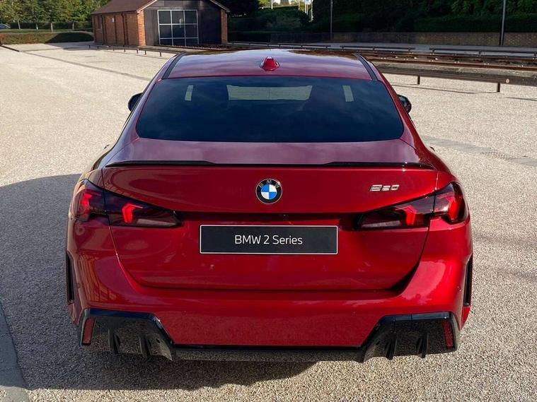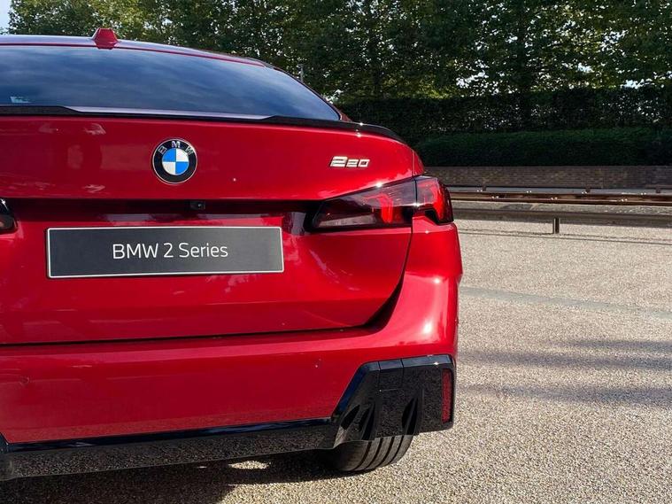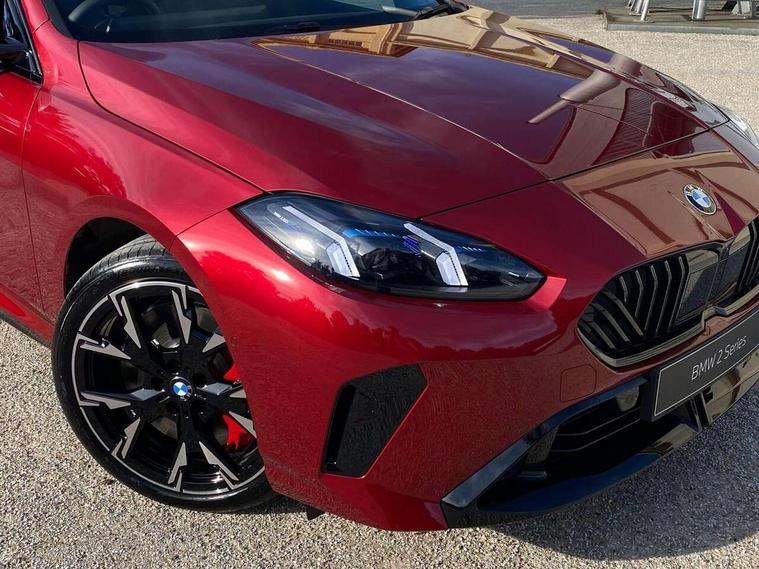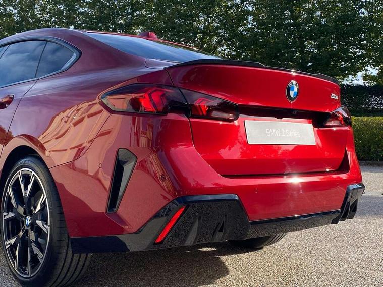 3 driving modes Normal, Eco, Sport, Active guard plus, Attentiveness assist, Auto start-stop, Bluetooth / WiFi interface for wireless connection of mobile terminal devices and audio streaming, BMW ConnectedDrive online services, BMW Intelligent Personal Assistant, BMW Live cockpit plus with widescreen display 10.25" instrument cluster and 10.7" control display, BMW Online services, BMW operating system with 7.0 mid interface, BMW Teleservices, Check Control warning system for monitoring of lights and door/luggage compartment open warning, Cruise control with braking function, Electric power steering, Front and rear parking sensors, Gearshift time display in manual mode, Integrated navigation data with map data via USB +features such as 3D landmarks and micro city models, Integrated owners handbook, Intelligent voice assistant, Lane departure warning system, Oil sensor for level and grade, On board computer - average speed+fuel consumption, service interval, clock/date, odometer/trip meter, outside temperature display and ice warning, Optimum shift indicator, Park assist including reversing assistant, lateral parking aid and reversing assist camera, Personal e-SIM, Personal Profile, Pull away assistant, Speed limit Info including no-overtaking indicator, Speed limiting function, 49 litre fuel tank, Automatic transmission with gearshift paddles, Drive Performance Control, Electronic differential lock, M Adaptive suspension, Performance Control, Petrol Particulate Filter, VALVETRONIC engine management, 2x USB Type C ports (for charging and data transfer), 4G LTE Connectivity with hard wied 4G network sim card, DAB Digital radio, Auto wipers, Automatic headlight beam throw control, Automatically dimming rear view mirror, Body colour door handles, Direction indicator side lights integrated exterior mirrors, Exterior M sport design elements, Folding side mirrors with auto dimming/folding wing mirrors with auto dimming, Follow me home headlights, Front and rear bumper panel with M specific design, in body colour with inserts in black high gloss, Heated door mirrors, High gloss shadow line exterior trim, High level third brake light, Key with M identification, LED daytime running lights, LED eyebrow turn indicators, LED front fog lights, M identification on the sides, Rain sensor with automatic headlight activation, Rear boot, Rear fog lights, Rear side wing doors, Rear window heating, Roof trim strip in vehicle colour, Shark fin antenna, Side sill covers with M specific design in body colour, Trailer stabilisation logic, Visible VIN plate, Welcome lighting, 12V power socket in centre console, 2 cupholders in front centre console, 3 rear seat head restraints, 3 seat bench in 2nd row, 3 spoke sports black walknappa leather steering with black stitching, shift paddled boost inscription, shaped thumb rests, specific M Badge, Anthracite headlining, Child seat ISOFIX attachment for two outer rear seats and front passenger seat with anchorage points, Conditioned based service, Driver and front passenger backrest net on rear, Driver and front passenger seat heating, Four grab handles integrated in roof lining, Front and rear door pockets including bottle trays, Front and rear side armrest integrated into door trim, Front head restraints, Height adjustable front head restraints, Luggage compartment lighting, Rear seat backrest with manual 60:40 split folding with 3 top tether clips integrated on rear of seat panels, Single front passenger seat, Sun visors with vanity mirrors and insert tab, Connected pack professional - 2 Series Gran Coupe, 2 tone horn, Airbag - Front driver and passenger, front and rear head, front side, curtain head protection, manual deactivation of front passenger airbag possible, Anti lock braking system (ABS) with cornering brake control, BMW emergency call, Brake drying, Braking readiness, City braking function, Crash sensor activating of airbags, Unlocking doors, hazard warning lights, interior light, safety battery terminal, Dynamic stability control + (DSC+), Dynamic Traction Control - DTC, Electrically operated hand brake, Front and rear disc brakes, PC iBrake (Post crash approach control warning with light braking function), Rear brake discs, Rear child proof door locks, Seat belt security check for driver and front passenger, Seatbelt warning, Side impact protection, Three point seat belts on all seats including front belt stopper, pyrotechnic belt tensioners and belt force limiters, Trailer stability control, Tyre pressure monitoring system, Ventilated front disc brakes, Warning triangle and first aid kit, Central locking switch for all doors, fuel filler cap and luggage compartment, Deadlocking function system to all doors, Drive away locking system on all doors and luggage compartment, Locking wheel bolts, Start/Stop button (illuminated) in centre console with keyless engine start and Auto Start-Stop deactivation button, Thatcham Cat.1 alarm and immobiliser, Two remote control key with integrated key - open/close doors/fuel flap/tailgate +1 button for unlock compartment with M design high gloss black inlay, Reduced rolling resistance tyres, Tyre repair kit,
