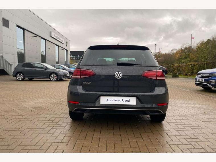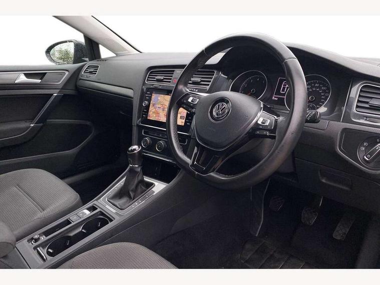 'Lights On' Reminder warning buzzer, ACC - Adaptive cruise control with front assist, forward collision warning, distance monitoring, city emergency brake and speed limiter, Bluetooth telephone and audio connection for compatible devices, Brake pad wear indicator warning light, Driver alert system, Driver profile selection, Driving Mode Selection with four preset modes - Eco, normal, sport or individual modes, Instrument cluster in white, Multifunction computer with visual gear change recommendation for fuel consumption, Power assisted speed sensitive electro-mechanical steering, Push tank flap, Speed limit display, Speedo, rev counter, electronic odometer, trip, service interval display, exterior temperature and fuel gauge, Stop/start system, Warning buzzer and light for front seatbelts unfastened, Battery regeneration during braking, XDS electronic differential lock, Composition media system, DAB Digital radio receiver, MP3/WMA compatability, Multi device interface (MDI) with USB connection, Personalisation 1.1 profile for media, Premium USB cable in choice of either Apple or Android smartphone compatibility, SD card slot, SMS Functionality, USB and SD card connectivity, Black front air intake and radiator grille with chrome insert, Black rear diffuser, Body colour bumpers, Body colour door handles, Body colour door mirrors with integrated indicators, Dusk sensor + automatic driving lights, Electric front windows, Electric rear windows, Electrically adjustable and heated door mirrors, Fully galvanised body, Heated rear windscreen, Hidden exhaust pipe, High level 3rd brake light incorporating LED Technology, LED daytime running lights, LED front fog lights with static cornering light function, Rear fog lamp, Rear tinted glass 65% light absorbing from B pillar backwards, Rear window aerial, Rear window wash/wipe with intermittent wipe, Reflectors in all doors, Tailgate with integrated rear roof spoiler, Windscreen wipers/ intermittent wipe + 4 position delay, 12V socket in luggage compartment, 3 rear headrests, 4 load lashing points in luggage compartment, 60/40 split folding rear seat backrest, Auto fold down lever in rear seat backrest, Bag hook in luggage compartment x 2, Cooled glovebox, Cupholder cover, Dust/pollen filter, Front and rear reading lights incorporating LED technology, Front centre armrest with storage compartment and two rear air vents, Front seat back storage pockets, Grab handles front x 2, rear x 2 with integrated coat hooks, Height and reach adjustable steering wheel, Illuminated vanity mirrors, Instrument lighting white adjustable panel illumination, Interior light delay, Isofix preparation for 2 rear child seats, Load through provision with rear centre armrest and cupholders x2, Luggage compartment lighting, Overhead storage box, Passenger underseat drawer, Pearl grey headlining, Storage box in luggage compartment, Storage compartment in roof console with cover, Storage compartments in centre console, Storage compartments in front doors, Storage compartments in rear doors, Stowable luggage compartment cover, Sun visors, Variable boot floor, height adjustable and removable, Convenience Pack - Golf, Light and Sight pack - Golf, Mirror pack - Golf, 3 rear three point seatbelts, Airbags - Driver's and front passenger's, curtain airbag, Driver's knee, front side impact and passenger's airbag deactivation switch, Anti-lock Braking System (ABS) with Hydraulic Brake Assist (HBA), Automatic post collision braking system, Child locks on rear doors, Driver/Passenger optimised head restraints, Electronic parking brake with auto hold, Electronic stability control (ESC) including Electronic differential lock (EDL) and ASR (Traction control) with deactivation via infotainment system, Pre crash preventive occupant protection, Three point height adjustable front seatbelts with tensioners, Tyre pressure loss indicator, Alarm with interior protection and deactivation via infotainment system, Electronic engine immobiliser, Remote central locking with 2 remote folding keys, Brushed dark silver decorative inserts in dash and door panels, Chrome plated air vent surround, Chrome plated electric mirror adjustment light switch surround, Polar night black centre console, Steel space saver spare wheel,