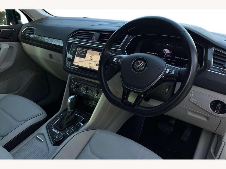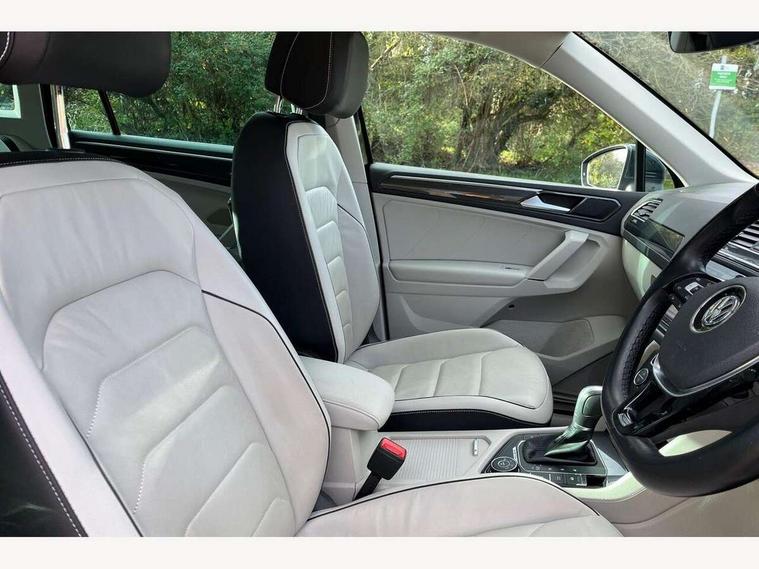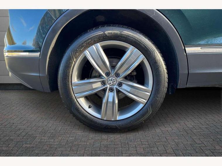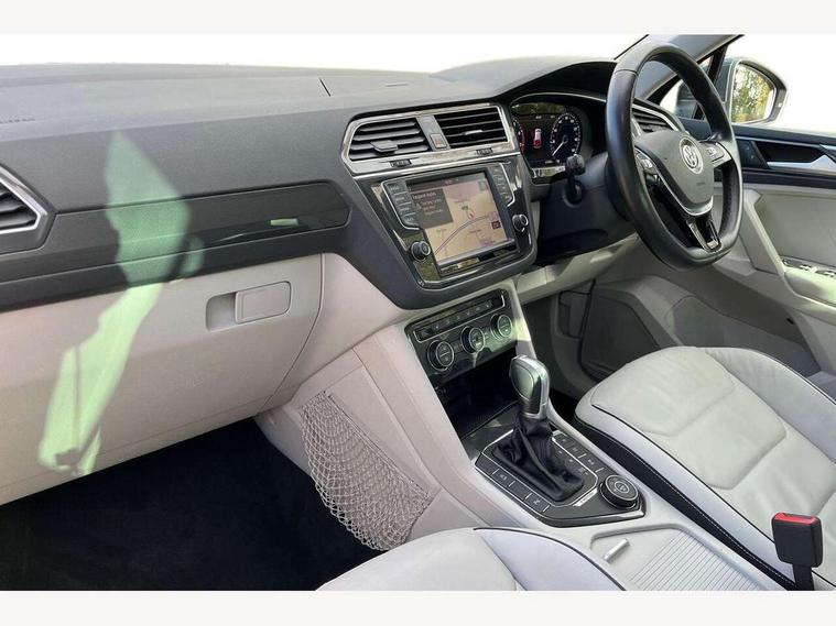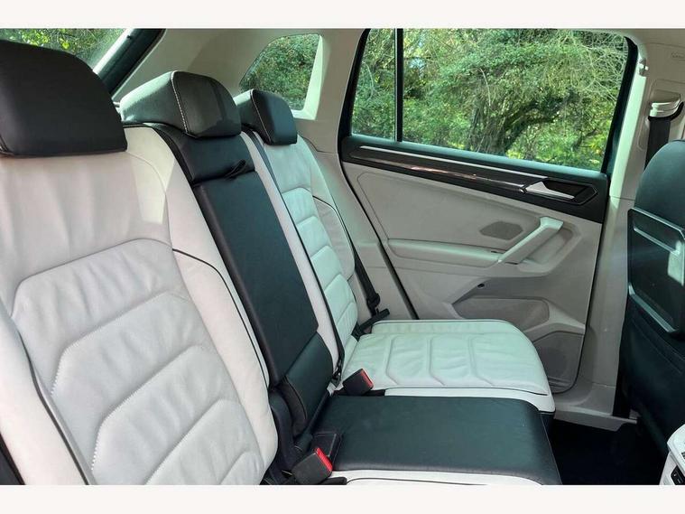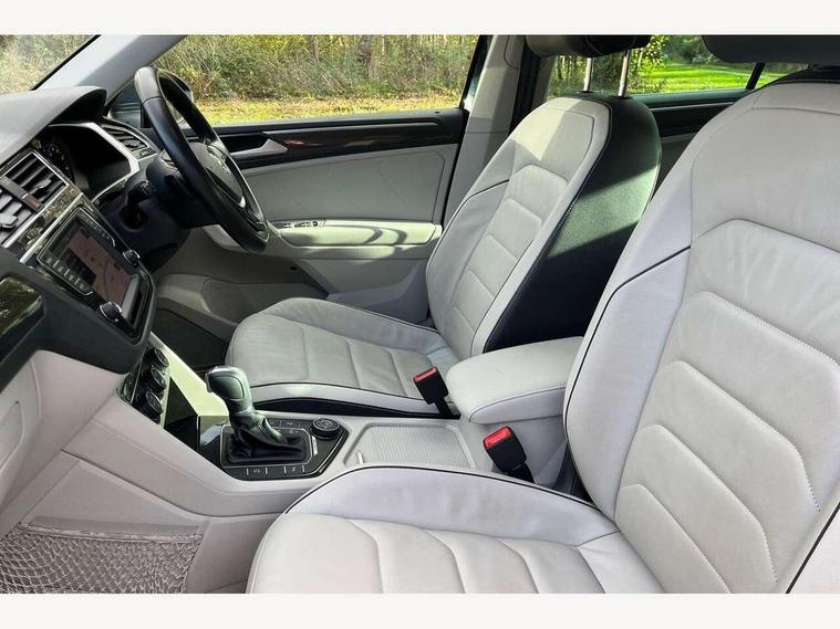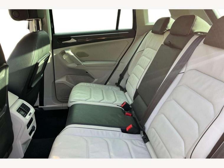 Active information display, Adaptive cruise control, App-Connect, Bluetooth phone integration system, Drive mode selector, Instrument cluster, Lane assist, Low washer fluid warning light, Outside temperature display, Service interval indicator, Warning lights, Aux-in socket, DAB Digital radio, SD card slot, USB connection, Auto dimming interior mirror, Body colour door handles, Body colour door mirrors, Body coloured bumpers, Chrome side body trim, Chrome side window surrounds, Chrome trimmed radiator grille, Coming/leaving home lighting function, Dusk sensor + auto driving lights, Electric folding door mirrors, Electric heated + adjustable door mirrors, Electric panoramic sunroof with sunblind, Front and rear electric windows, LED headlights with dynamic light assist daytime running lights and cornering front fog lights, Rain sensor windscreen wipers, Silver rear diffuser trim, Silver roof rails, Silver under body guard, Tinted windows (B pillar backwards), Twin trapezoid chrome exhaust pipes, 14 way electric adjustable front seats with drivers memory and massage function, 3 rear headrests, 3 zone climate control, 4 load lashing points, 40:20:40 split folding rear seats, Bag hook in luggage compartment, Front + rear carpet mats, Front centre armrest with 12v socket, Front centre armrest with storage + rear 2 air vents + cupholders, Front seatback folding tables, Height/reach adjust steering wheel, Illuminated driver/passenger vanity mirrors, Illuminated scuff plates, Interior light with delay, Isofix Preparation 2 Rear child seats, Leather gear knob, Lockable cooled glovebox, Luggage compartment lighting, Map pockets on front seats, Rear cupholders, Removable luggage cover, Sliding/reclining rear seats, Storage compartment in driver's door, Storage compartment in passenger's door, Storage drawers under front seats, Storage tray on dashboard, Sunglasses storage, Variable boot floor, Ambient lighting pack - Tiguan, 3 rear 3 point seatbelts, ABS+EBD+Brake assist, Active bonnet, Active pedestrian safety system, Curtain airbags, Driver/Front Passenger airbags, Driver/Passenger whiplash optimised head restraints, Drivers knee airbag, Electronic parking brake with auto hold, ESP with EDL + ASR, First aid kit, Front assist including city emergency braking, Front side airbags, Head airbag system, Height adjustable front 3 point seatbelts + pretensioners, Hill hold control, Passenger airbag deactivate switch, Passenger knee airbag, Pre crash system, Rear side airbags, Seatbelt warning lamp and buzzer, Warning triangle, Alarm with interior protection, Electronic engine immobiliser, Chrome door trim inserts, Piano black interior trim, Steel space saver spare wheel,