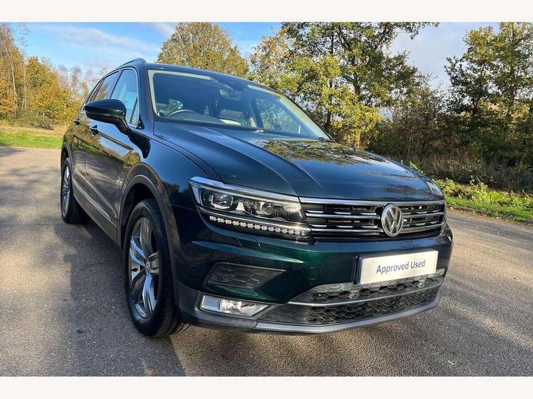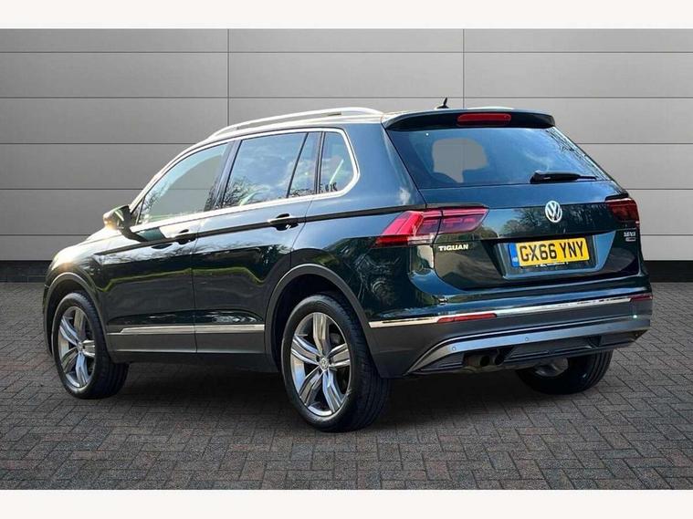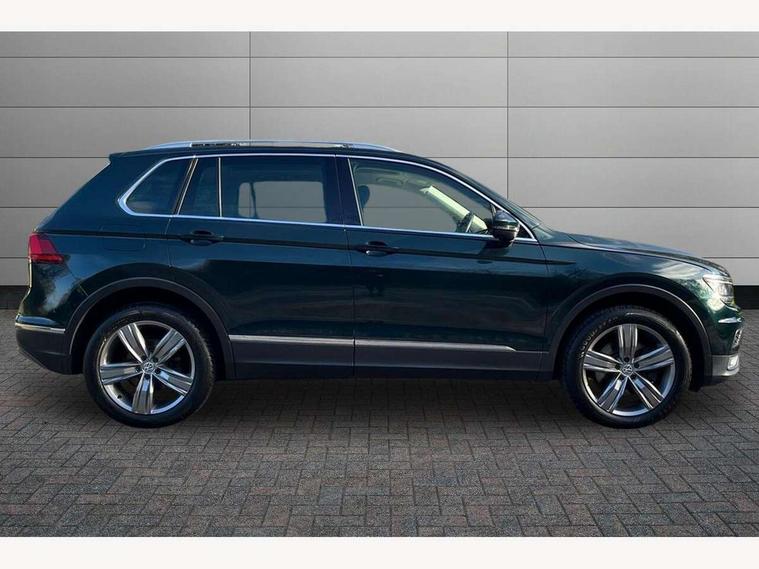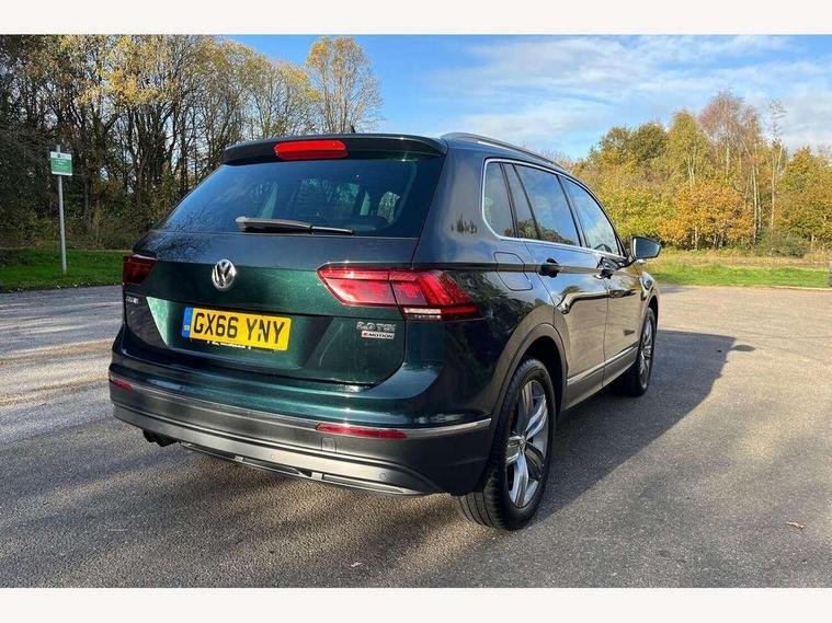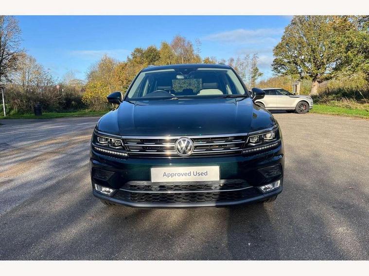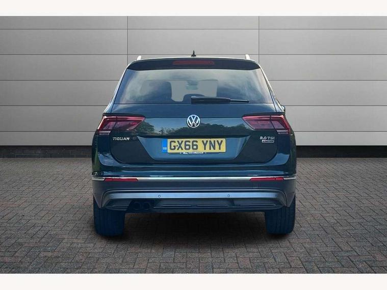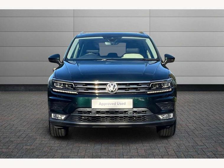 Active information display, Adaptive cruise control, App-Connect, Bluetooth phone integration system, Drive mode selector, Instrument cluster, Lane assist, Low washer fluid warning light, Outside temperature display, Service interval indicator, Warning lights, Aux-in socket, DAB Digital radio, SD card slot, USB connection, Auto dimming interior mirror, Body colour door handles, Body colour door mirrors, Body coloured bumpers, Chrome side body trim, Chrome side window surrounds, Chrome trimmed radiator grille, Coming/leaving home lighting function, Dusk sensor + auto driving lights, Electric folding door mirrors, Electric heated + adjustable door mirrors, Electric panoramic sunroof with sunblind, Front and rear electric windows, LED headlights with dynamic light assist daytime running lights and cornering front fog lights, Rain sensor windscreen wipers, Silver rear diffuser trim, Silver roof rails, Silver under body guard, Tinted windows (B pillar backwards), Twin trapezoid chrome exhaust pipes, 14 way electric adjustable front seats with drivers memory and massage function, 3 rear headrests, 3 zone climate control, 4 load lashing points, 40:20:40 split folding rear seats, Bag hook in luggage compartment, Front + rear carpet mats, Front centre armrest with 12v socket, Front centre armrest with storage + rear 2 air vents + cupholders, Front seatback folding tables, Height/reach adjust steering wheel, Illuminated driver/passenger vanity mirrors, Illuminated scuff plates, Interior light with delay, Isofix Preparation 2 Rear child seats, Leather gear knob, Lockable cooled glovebox, Luggage compartment lighting, Map pockets on front seats, Rear cupholders, Removable luggage cover, Sliding/reclining rear seats, Storage compartment in driver's door, Storage compartment in passenger's door, Storage drawers under front seats, Storage tray on dashboard, Sunglasses storage, Variable boot floor, Ambient lighting pack - Tiguan, 3 rear 3 point seatbelts, ABS+EBD+Brake assist, Active bonnet, Active pedestrian safety system, Curtain airbags, Driver/Front Passenger airbags, Driver/Passenger whiplash optimised head restraints, Drivers knee airbag, Electronic parking brake with auto hold, ESP with EDL + ASR, First aid kit, Front assist including city emergency braking, Front side airbags, Head airbag system, Height adjustable front 3 point seatbelts + pretensioners, Hill hold control, Passenger airbag deactivate switch, Passenger knee airbag, Pre crash system, Rear side airbags, Seatbelt warning lamp and buzzer, Warning triangle, Alarm with interior protection, Electronic engine immobiliser, Chrome door trim inserts, Piano black interior trim, Steel space saver spare wheel,