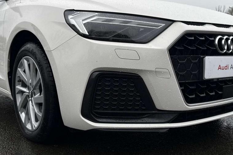 10.25" Digital instrument cluster display screen, Audi connect safety emergency and service including E-call, Audi drive select, Audi smartphone interface, Automatic start/stop system, Bluetooth interface, Driver's information system, Electromechanical power steering, Lane departure warning system, Service interval indicator, Speed limiter, Voice control system, Washer fluid level indicator, Dynamic suspension, 1 x SDXC card reader, 1 x USB type C and 1 USB type A charging points, Audi music interface, Bluetooth audio streaming, DAB Digital radio, MMI radio plus with 8.8" colour MMI display screen and MMI touch, Auto dimming rear view mirror, Body coloured bumpers, Body coloured door mirrors, Electric front and rear windows, Front side air inlets in grained matt black and C frame in titanium black, Heat insulating glass windscreen and side windows, Heated rear windscreen, LED headlights with LED rear lights + dynamic rear indicators, Radiator grille in matt titanium black, Radiator protective grille frame in matt aluminium silver, Rain and light sensors, Rear fog lights, Rear wiper, Side front spoiler lips in grained matt black, Titanium black matt diffuser, 12V socket in centre console with two cup holders, 3 rear seats, Door sills trims with aluminium inlays, Driver and passenger seat with manual height adjust with forward and backwards adjustment, Front head restraints, Front/rear floor mats, Height and reach adjustable steering wheel, Illuminated glovebox, ISOFIX child seat mounting in front passenger and rear outer seats, Leather gear knob with aluminium trim, Leatherette handbrake grip, Luggage compartment light with front and rear reading lights, Lumbar adjustment for front seats, Novum cloth upholstery with front sport seats, Rear head restraints, Split folding rear seats, Titanium grey cloth headlining, 3x3 point rear seatbelts, Audi pre-sense front with pedestrain and cyclist recognition, Brake assist function, Driver and front passenger airbag with front side and head airbags, Electronic Stability Control including ABS, EBD, ASR and EDL, Front and rear seatbelt reminder, Front passenger airbag deactivation switch, Hill hold assist, Seatbelt height adjustment for front seats, Seatbelt monitoring, Tyre pressure warning light, Warning triangle and first aid kit, Anti theft alarm, Anti theft wheel bolts and loose wheel warning, Immobiliser, Remote central locking with 2 remote folding keys, Aluminium trim for control switches, air vents and digital instrument cluster, Silver grey accent areas including air vents, door handle recesses and centre console in diamond paint finish, Slate grey inlays polygon structure in fine paint finish,