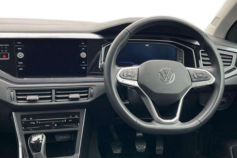 Advanced driver attention and drowsiness monitor, Bluetooth mobile phone interface, Digital Cockpit Pro with 10.25" Display, Dynamic road sign display, Emergency call service, Multifunction camera, Power assisted speed sensitive steering, Predictive adaptive cruise control without follow-to-stop and speed limiter, Preparation for We connect and We connect plus, Speedo and rev counter, electronic odometer, trip, service interval display and fuel gauge, Standard rear axle, Travel Assist - Lane keeping system and traffic jam assist, Travel assist including emergency assist, Trip computer, Warning signal and warning light for front and rear seatbelts not fastened, Washer fluid level indicator, Wireless app connect, Front wheel drive, Rear shock absorpion, Start-stop system with battery regeneration (recuperation - energy recovery during braking), DAB Digital radio, Diversity antenna for FM reception, Front and rear 6 speakers, Automatic dimming interior rear view mirror, Automatic headlights, Body colour door handles, Body coloured bumpers and radiator grille with chrome trims, Electric front windows, Heat insulating glass windscreen, LED separate daytime running lights with coming/leaving home function, Power folding adjustable/heated exterior mirrors and front passenger exterior mirror lowering function, Rain sensor, Rear electric windows, Rear fog light, Rear side wing doors, Rear windscreen washer and wiper with interval delay, Third brake light, 12V power socket in centre console, 2 USB-C ports in the front, 2 USB-C charging sockets on the center console in the rear, 3 rear head restraints, 60/40 split folding rear seat and rear seat bench not split, Air care climatronic air conditoning system with active combination filter and 2-zone temperature control, Ambient lighting, Carpet mats, front and rear, Chrome plated radiator grille inserts, air vent surrounds and light switch surrounds, Door and side trim panel, Driver and front passenger seat height adjustment, Driver/passenger sunvisors with illuminated vanity mirrors, Front centre armrest, Front footwell illumination, Front seat backrest storage pockets, Front sports comfort seats, Handbrake lever handle in leather, Headliner in recycled material, Isofix child seat preparation easy-fit (for two outer rear seats, and front passenger seat) compatible with I-size, Leather trimmed gear knob, LED interior light with switch off delay and dimmer, 2 reading lights front and rear, Luggage compartment cover, Luggage compartment floor, Luggage compartment lighting, Lumbar adjustment for front seats, Multifunction steering wheel, Single front passenger seat, Standard pedal cluster, IQ LED matrix headlights pack - Polo, Light and vision pack - Polo, 3 point height adj front seatbelts + pretensioners, 3x3 point rear seatbelts, ABS, Driver and front passenger airbag with front passenger airbag deactivation, Drivers and front passengers safety optimised head restraints, ESC (Electronic stability control) + EDL (Electronic Differntial lock) and ASR (Traction control), Extended and predictive pedestrian/ cyclist protection, Front curtain and side airbags with center airbag, Front disc brakes, Hill hold control, Manual child lock in rear doors, Rear drum brakes, Single tone horn, Tyre pressure loss indicator, Alarm with interior protection, Anti-theft alarm system with interior monitoring, backup horn, and towing protection, Anti-theft wheel bolts, Electronic engine immobiliser, Chrome applications on rotary light, mirror adjustment, window regulator switches, outlet with frame in black, Low rolling resistance tyres,