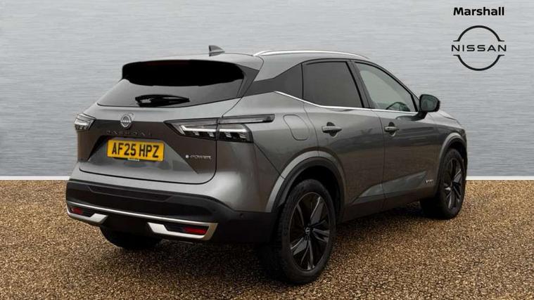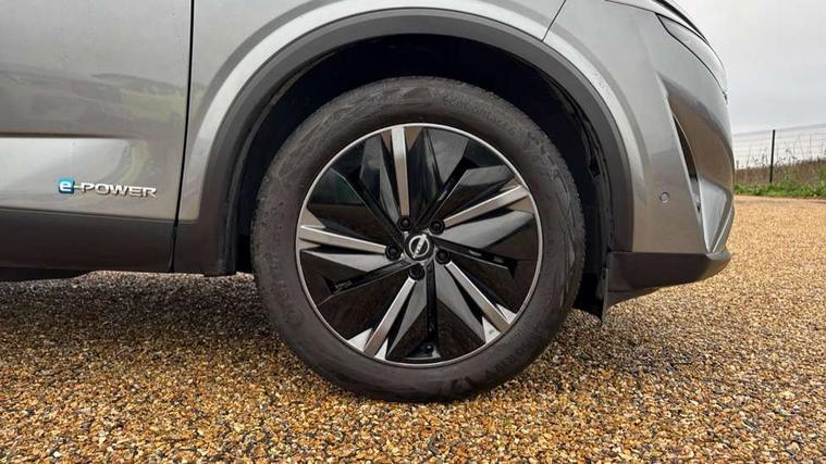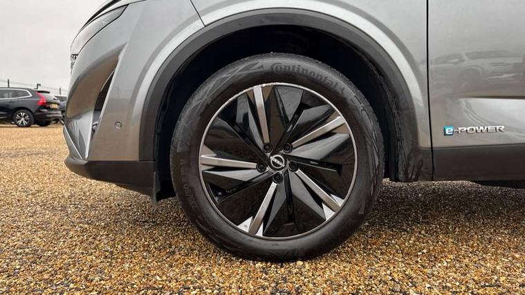 2 front USB-C ports, 2 rear USB-C ports, 360 degree Intelligent around view monitor with moving object detection, Advanced windscreen head up display, Blind spot warning, Drive assist custom mode, Drive modes (sport, normal, eco), Driver drowsiness and attention warning, e-Pedal step, Electric speed sensitive power steering, Emergency and breakdown call, Emergency lane keep assist, Emergency Stop Signal (ESS), Engine start/stop button, EV mode switch, Event data recorder, Front and rear parking sensors, Full Digital 12.3" TFT Digital Combimeter, Google virtual personal assistance, Hands free power tailgate, Idle stop/start system, In-car WIFI hotspot, Intelligent Cruise control (ICC), Intelligent driver alert system, Intelligent forward collision warning, Intelligent lane intervention, Intelligent speed assist, Lane departure warning system, Nissan connect 12.3 inch touchscreen infotainment system, Nissan connect navigation with google maps, Nissan connect services 2.0 (Google Automotive System), Outside temperature sensor, Propilot assist with Navi-Link, ProPilot park, Rear cross traffic alert, Remote control services - door locks, lights, horn and car locator, Reversing detection, Traffic jam pilot, Traffic sign recognition with legal speed adjustment, Trip computer, Wireless Apple CarPlay/Android Auto, Wireless charging pad, Limited slip differential, 6 speakers, AM/FM audio system with DAB, Bluetooth audio streaming, Auto dimming frameless rear view mirror, Auto rear wiper when reversing, Body colour mirror caps, Body coloured door handles, Bodyside mouldings, Chrome side window finisher, e-POWER badging, Electric auto folding door mirrors, Electrically adjustable and heated door mirrors with LED turn indicator, Follow me home headlights, High beam assist, Intelligent auto headlights, LED 3rd brake light, LED daytime running lights, LED headlights with adaptive driving beam, LED rear lights, LED sequential turn lights, One touch front and rear electric windows with remote opening and closing, One touch passenger window, Partially body coloured bumpers, Rain sensing wipers, Rear privacy glass, Rear roof spoiler, Rear side wing doors, Rear styling plate, Reverse tilting door mirrors, Shark fin antenna, Silver roof rails, Splash free rain sensing wipers, Super RED rear LED lights, Super UV and infrared cut glass, Thermaclear heated windscreen, 12v power socket in dashboard and luggage, 3 bench rear seats in 2nd row, 3 rear headrests, 60/40 split folding rear seat bench, Chrome interior door handles, Dark headlining, Driver and passenger sunvisors with illuminated vanity mirrors, Driver seat back pocket, Dual zone automatic climate control with pollen filter, e-POWER shifter, Electrically adjustable driver seat, Electrically adjustable lumbar support for driver, Fixed Glass roof with electric sunshade, Front centre console and armrest, Front cupholders, Front door with bottle holders, Heated front seats, Heated steering wheel, Height adjustable front headrests, Height adjustable passenger seat, Luggage board system, Luggage space lighting, Manual adjustable lumbar support for passenger, Multifunction steering wheel, Passenger seat back pocket, Quilted/PVC upholstery, Rear door bottle holders, Rear seat armrest with 2 cupholders, RGB ambient light (Full area coverage), Single front passenger seat, Smooth leather steering wheel, Tilt/telescopic adjustable steering wheel, Two rear isofix child seat anchorage points with top tether, 3x3 point rear seatbelt pretensioners + load limiters, ABS with EBD and brake assist, Autonomous emergency braking, Child locks on rear doors, Curtain and front side, far side airbags, Driver and passenger airbags, Driver, passenger and 2nd row rear seat belt reminder, Electric handbrake with auto hold function, Front seatbelt pretensioners + load limiters, Height adjustable front seatbelts, Hill start assist, Intelligent blind spot intervention, intelligent front emergency braking, Intelligent rear automatic braking, Tyre pressure monitoring system, Vehicle dynamic control, Engine immobiliser, Intelligent key with walk away lock and approach unlock functions, Remote central door locking with deadlocking, Thatcham alarm, 19" Diamond cut alloy wheels, Tyre puncture repair kit,