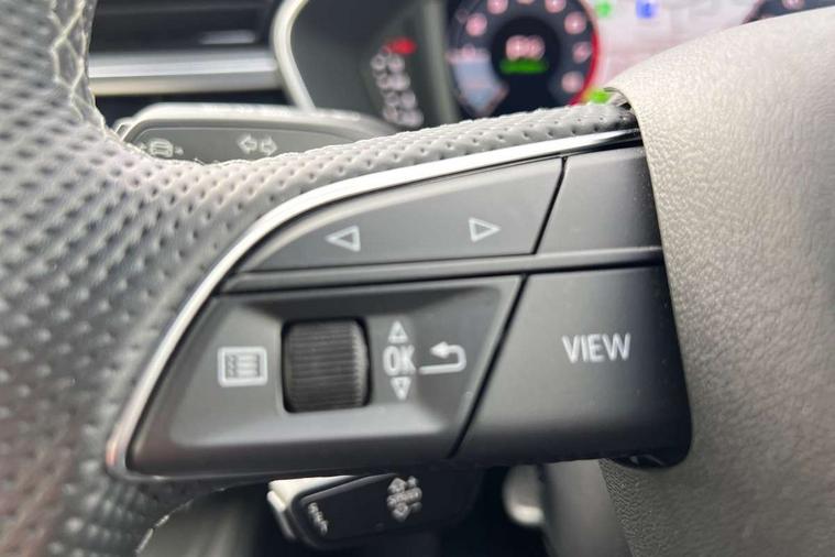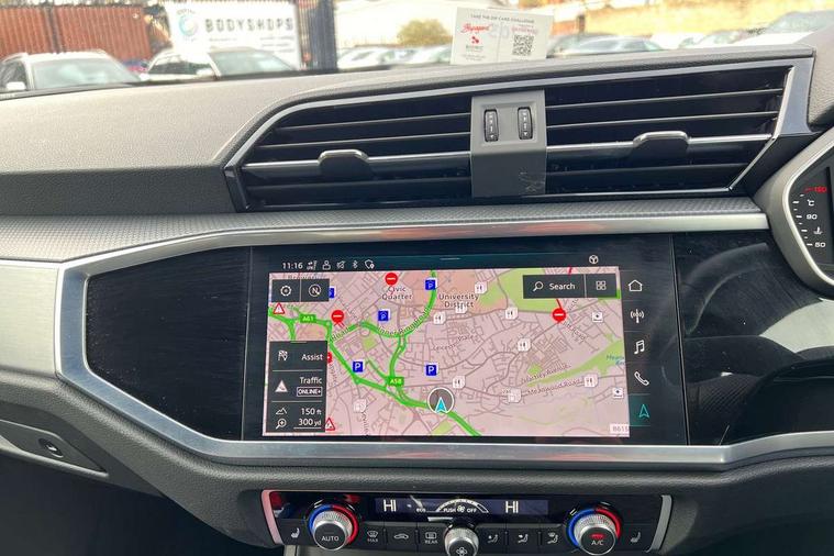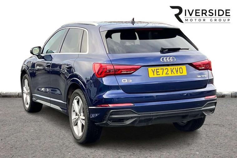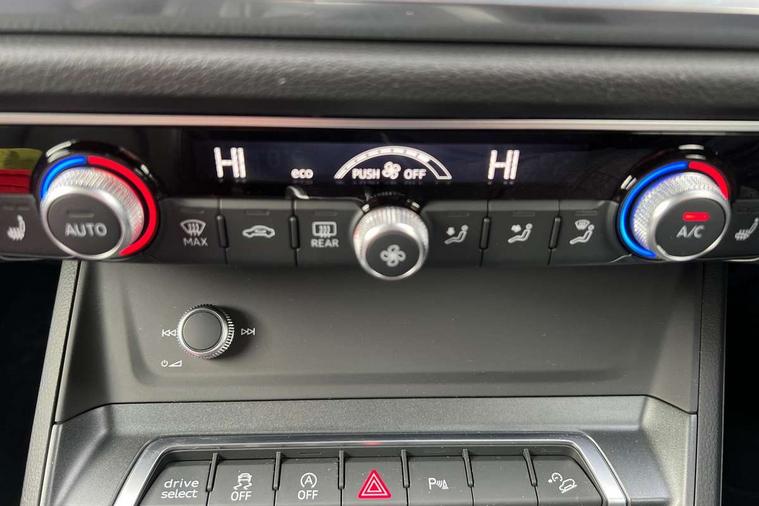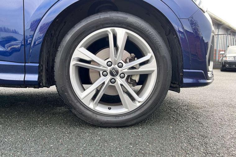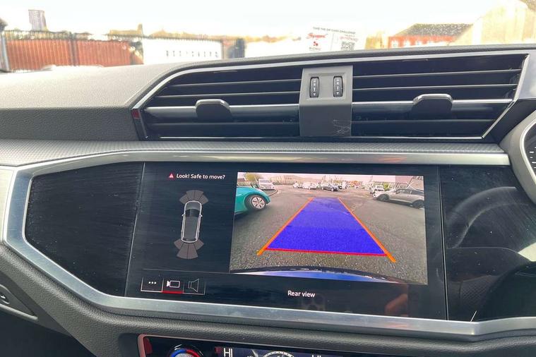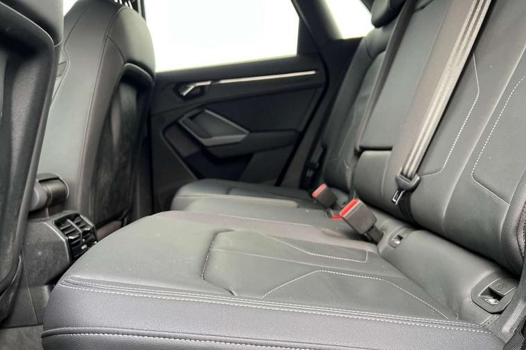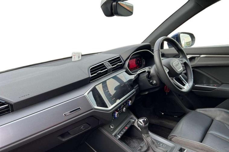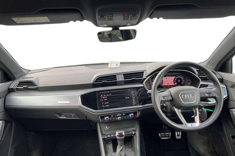 Amazon alexa Integration, Audi drive select, Audi lane departure warning, Audi Virtual Cockpit - 10.25" display, Bluetooth interface, Camera based traffic sign recognition, Legal emergency call, MMI Navigation Plus with high resolution 10.1 inch touchscreen colour display, Power operated tailgate, Progressive steering, Service interval indicator, Smartphone interface includes wireless Apple carplay/Android Auto, Start stop system with recuperation, Voice control system with natural language interaction, Sports suspension, 2 USB-C ports with charge and data functions, 6 passive loudspeakers, DAB digital radio module, Acoustic windscreen, Aluminium roof rails, Aluminium window trim, Auto dimming frameless rear view mirror, Body colour front spoiler blade, Body coloured bumpers, Electrically folding, adjustable and heated door mirrors with integrated LED side indicators and kerb view function for passenger side, Front and rear electric windows, Front fog lights, Front side air inlets in matt platinum grey, Grille vertical bars in aluminium silver/Matt, High gloss black finish B and C pillars, LED Dynamic rear indicators, LED headlights with LED daytime running lights, LED rear lights, LED third brake light, Privacy glass dark tinted rear and rear-side windows (from B-pillar backwards), Rain and light sensors, Rear diffuser grille in grained matt black, Rear diffuser strip in matt titanium black, Rear side wing doors, Rear wiper, S line badges on front wings, S Line front and rear bumpers, Side skirt insert in matt Platinium grey, Titanium black radiator grille, Variable front intermittent wipers, 12V socket in rear centre console, 3 seat bench in 2nd row, 40:20:40 folding with manual adjustment for 60:40 forwards/backwards position and backrest angle, Adjustable rear seat bench/backrest with centre armrest and cupholder, Black cloth headlining, Dual zone electronic climate control, Front and rear black floor mats with contrast stitching in rock grey, Front and rear headrests, Front and rear roof module including reading lights, Front centre armrest, Glove compartment lighting, Height and reach adjustable steering wheel, Illuminated door sill trims with S logo, ISOFIX child seat mounting for front passenger with airbag deactivation and outer rear seat including top tether attachment point for outer rear seats, Luggage compartment light, Manual front seats with height adjustment, Perforated leather gearknob, Single front passenger seat, Stainless steel luggage compartment sill finisher, Stainless steel pedals, Ambient lighting pack - Q3, Non smoking pack - Q3, 3x3 point rear seatbelts, 6 airbags - Driver, front passenger, curtain and side windows, Audi pre-sense front with pedestrain and cyclist recognition, Electrically operated child locks on rear doors, Electromechanical parking brake, Electronic stabilisation control including ABS, ASR and EDL, Front seatbelt reminder, Hill descent control, Hill hold assist, Pre sense basic, Seatbelt monitoring, Tyre pressure warning, Warning triangle and first aid kit, Anti theft alarm, Anti theft wheel bolts, Immobiliser, Remote central locking, Dark matt brushed aluminium inlay, Detail dashboard around MMI touch colour display in glass look, black with surround in aluminium look, Leatherette door armrest,