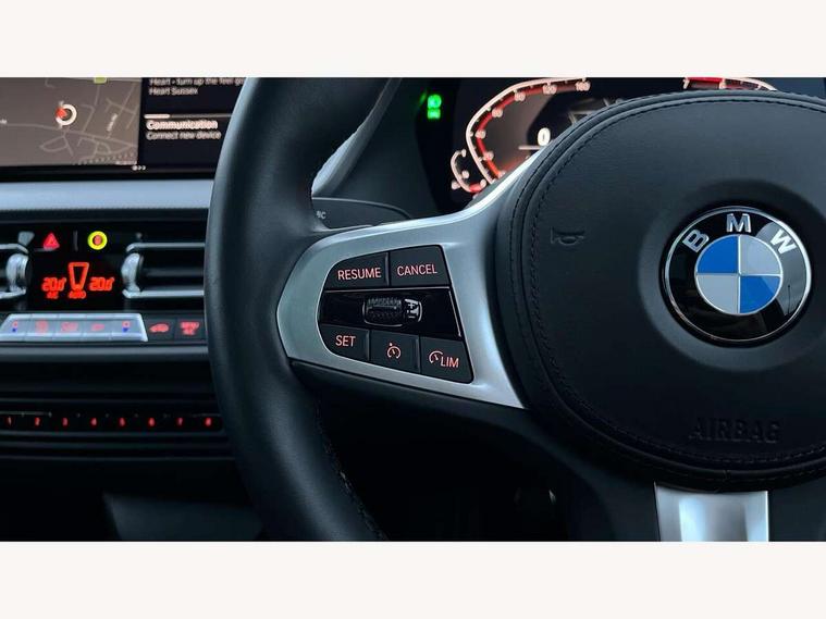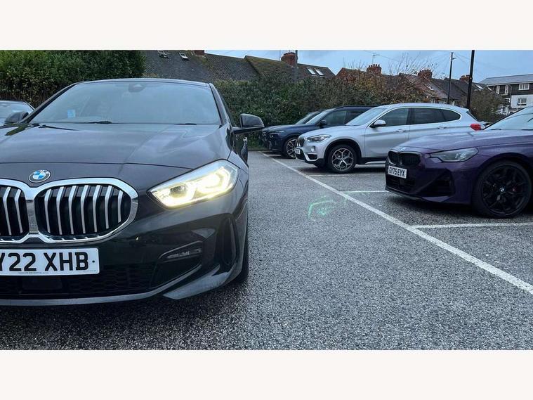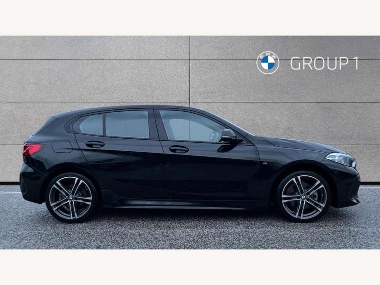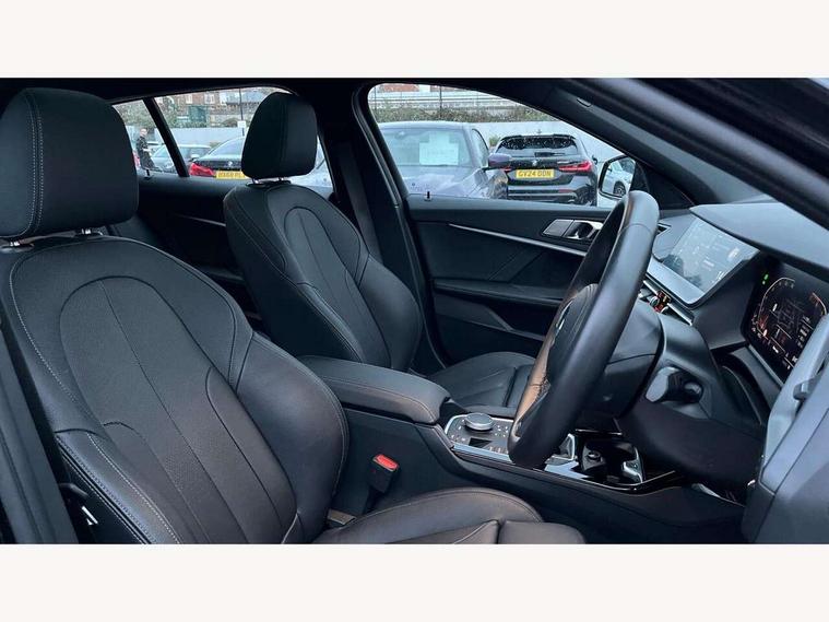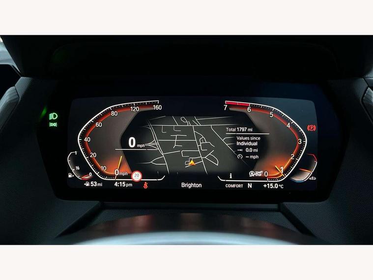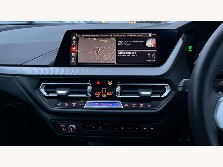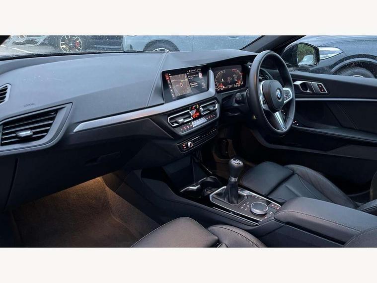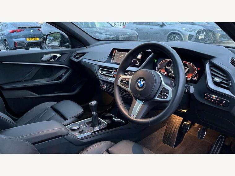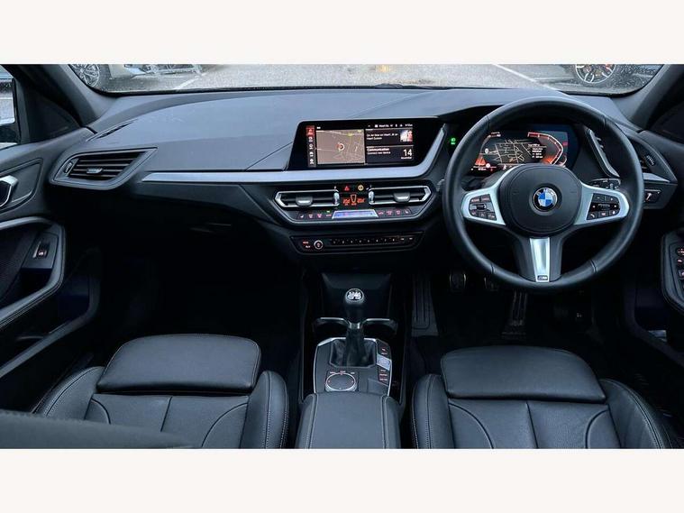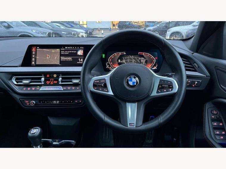 Active guard plus, Attentiveness assist, BMW ConnectedDrive online services, BMW Teleservices, Check Control warning system for monitoring of lights and door/luggage compartment open warning, Cruise control with brake assist, Eco pro mode, Front axle single joint with specific axle kinematics to minimise drive influences on steering + provide increased rigidity agile driving behaviour, Integrated owners handbook, Lane departure warning system, Oil sensor for level and grade, On board computer, Optimum shift indicator, Personal Profile, Pull away assistant, Rigidly mounted rear subframe - Multi link construction with separate spring / damper configuration and excellent driving characteristics, Speed limit Info including no-overtaking indicator, Speed limiter, Aluminium lightweight construction, Anti roll bar front and rear, Balancer shaft, Double VANOS twin scroll turbocharging system, Drive Performance Control, Electronic differential lock, High precision injection, M sport suspension, Petrol Particulate Filter, Twin tube gas filled shock absorbers with degressive characteristic curve, VALVETRONIC engine management, DAB Digital radio, Auto dimming rear view mirror, Automatic headlight beam throw control, Automatic windscreen wipers and automatic headlight, Body colour door handles, Body colour mirror caps, Body colour roof trims, Chrome 'M' logo side designation, Chrome exhaust twin tailpipes round 90mm in left, Chrome kidney grille frame with Satin Aluminium struts, Direction indicator side lights in exterior mirrors, Fading support, Folding side mirrors with auto dimming/folding wing mirrors with auto dimming, Follow me home headlights, Front and rear bumper system with replaceable deformation elements, Front and rear electric windows with open and close fingertip control, anti trap facility and comfort closing, Front door sill finishers in black plastic with M designation in metallic look, Green tinted heat protection glazing, Heated, electrically adjustable exterior mirror aspheric on driver side, convex on passenger side, High gloss shadowline window frame, Recess cover mirror frames and B/C pillar embelisher trim, High level third brake light, Integrated front windscreen with washer jets, LED daytime running lights, LED eyebrow turn indicators, LED front fog lights, Lightweight engineering, Matt black air guide grilles, Matt black wheel arch trim, Model designation on electric bootlid, Nearside reverse light in rear light cluster, Preparation for high beam assistant, Rear fog lights, Rear side wing doors, Rear window wiper, Shark fin antenna, Trailer stabilisation logic, Visible VIN plate, Welcome lighting, 12V power socket in front centre console with blanking plug, 3 rear seat head restraints, 3 seat bench in 2nd row, 3 spoke sports leather steering wheel in black leather with black stitching and decorative finisher in pearl chrome, specific M badge + leather knob, Ambient interior lighting, Anthracite headlining, Black boot net with lashing eyes, Cargo function on 2nd seat row, Child seat ISOFIX attachment for two outer rear seats and front passenger seat with anchorage points, Conditioned based service, Driver and front passenger seat heating, Folding rear clothes hook, Four grab handles integrated in roof lining, Front and rear door pockets with bottle holders, Front and rear side armrest integrated into door trim, Front armrest, Front sports seats, Gearshift lever with M designation, Glove compartment, Height adjustable front head restraints, Luggage compartment for bag hooks on left and right, foldable luggage compartment liner and four lashing eyelets, Manual adjust steering wheel, Multi-function controls for steering wheel, Single front passenger seat, Storage compartment in centre console, Sun visors with vanity mirrors and insert tab, Two front centre console cupholders, Two zone automatic air conditioning, Velour floor mats, Additional interior lighting pack - 1 Series, BMW live cockpit professional pack- 1 Series, Connected pack professional - 1 Series, Interior lights pack - 1 Series, M Sport exterior styling aerodynamics pack - 1 Series, 2 tone horn, 3 point seatbelts on all seats, front pyrotechnic belt tensioners, stopper and belt force limiters, rear coded belt buckles, Airbags - Front driver/passenger, front and rear curtain head protection, front side, manual deactivation of front passenger airbag, Anti lock braking system (ABS) with brake assist, BMW emergency call, Brake drying, Braking readiness, Child proof locking system in rear door, City braking function, Comfort modes, Cornering brake control, Crash sensor activating central locking release, hazard warning lights, fuel cut off, interior lighting + activation of safety battery terminal clamp, Driver and front passenger seat belt security check, Dynamic stability control + (DSC+), Dynamic Traction Control - DTC, Electrically operated hand brake, Front and rear disc brakes, Seatbelt warning, Side impact protection, Tyre pressure monitoring system, Warning triangle and first aid kit, Central locking switch for all doors, fuel filler cap and luggage compartment, Deadlocking function system to all doors, Drive away locking system on all doors and luggage compartment with de-activated in iDrive settings, Locking wheel bolts, Remote control with integrated key with High-gloss Black inlay and M designation and 1 button for open/ close lock, window, open luggage compartment, Start/stop button illuminated in centre console with keyless engine start and auto start stop deactivation button, Thatcham Cat.1 alarm and immobiliser, Wheel slip limitation close to the actuator (ARB), Contrast stitching on instrument panel, Electrically powered 12V compressor, Reduced rolling resistance tyres,