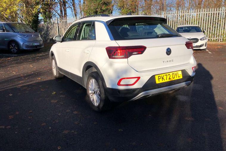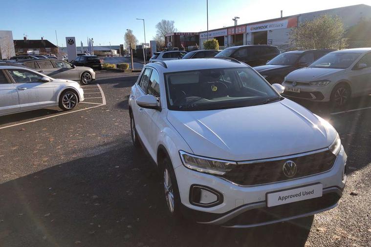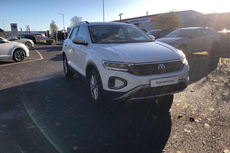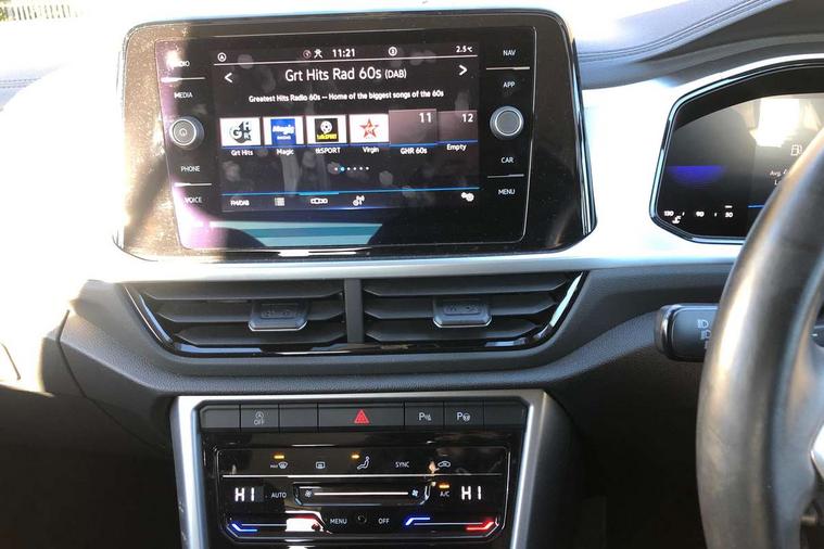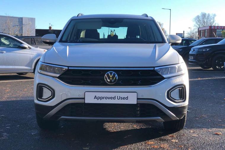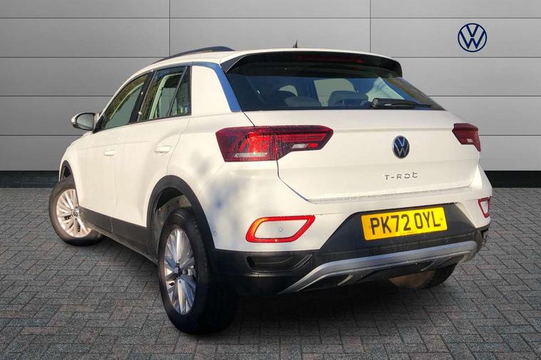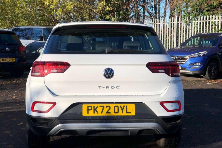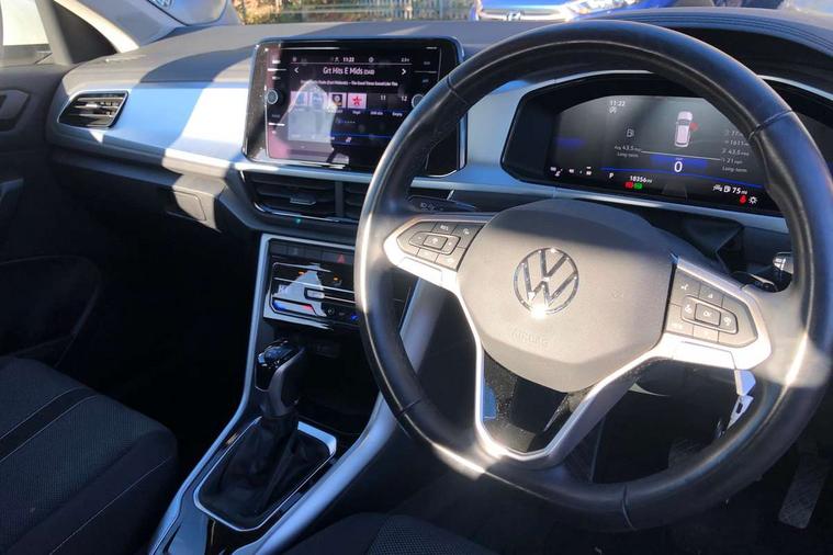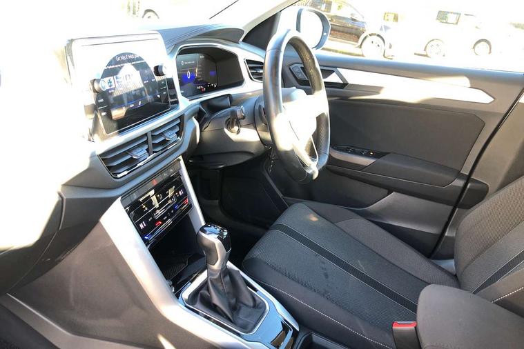 Bluetooth mobile phone interface, Driver alert system with fatigue detection, Driver tips and journey analysis, Emergency call service, Lane keeping system Lane Assist, Modified key software - reduce switch off time for key status change to Long no motion, Online services, Park assist including front and rear parking sensors, Power assisted speed sensitive steering, Service interval indicator, Tailgate/trunk lid release from outside, Think blue trainer driver tips and journey analysis, Warning sound and light for front seatbelts unfastened, Wireless app connect, Battery regeneration during braking, Front shock absorption, Rear shock absorption chassis with increased ride height, Start/stop function with battery regeneration, DAB Digital radio, Diversity antenna for FM reception, Front and rear 6 speakers, Music playback - MP3, WMA and AAC files, Premium USB cable in choice of either Apple or Android smartphone compatibility, SD card slot, Simultaneous pairing of 2 compatible mobile devices, Title and cover art display, We Connect and We Connect Plus functionality, 3rd brake light, Auto dimming interior rear view mirror, Automatic hazard lights activation under emergency braking, Automatic headlight control with LED separate daytime running lights with coming/leaving home function, Black roof rails, Body coloured bumpers and radiator grille with chrome trim and front fog lamps with chrome bezel, Body coloured exterior mirror housings and door handles, Extended roof spoiler, Exterior mirrors aspherical on driver side, convex on front passenger side, External USB type C socket and charging sockets, Front windscreen wiper with intermittent wipe and 4 position delay, Heated rear window, LED Headlights, LED rear combination lamps, LED rear number plate lights, LED tail lamp rear comination lamps, Power windows with comfort operation and circuit breaker, Rain sensor, Rear exhaust tailpipe, Rear fog light on one side and reversing lights on both sides, Rear side wing doors, Rear wash/wipe with intermittent wipe setting, Remote electrically foldable door mirrors, puddle lights and reverse activated passenger's door mirror, 12V power socket in centre console, 3 rear head restraints, 3 seat bench in 2nd row, 4 load lashing points in luggage compartment, Air care climatronic air conditoning system with active combination filter and 2-zone temperature control, Ambient lighting with mirror logo projection, Cloth upholstery, Door and side trim panel in cloth, Drawer under drivers seat, Driver/front passenger seat height adjustment, Front centre armrest, Front comfort sports seats, Front cupholders x 2, Front reading light, Instrument lighting, white adjustable panel illumination, Interior light delay, Isofix child seat preparation, Leather gearshift handle, Load-through provision with cup holder when folded down ('Unsplit rear seat bench, split folding backrest, with centre armrest), Luggage compartment lighting, Lumbar support for driver's and front passengers seat, Non-folding front passenger seat backrest, Single front passenger seat, Storage compartment in left and right luggage area, Storage compartment in rear doors, Storage compartments in driver and front passenger doors, Sunvisors with illuminated vanity mirrors, Variable boot floor, height adjustable and removable, Driver assistance pack without proactive passenger protection - T-Roc, 3 point height adj front seatbelts + pretensioners, 3 point seatbelts in outer rear with ECE label, ABS, Child locks on rear doors, Driver and front passenger airbag with front passenger airbag deactivation, Driver and front passenger safety-optimised head restraints, Drivers seatbelt reminder, Electronic parking brake, Electronic Stability Control (ESC) inc EDL (Electronic Differential Lock) and ASR (Traction Control), Front and rear passengers curtain airbag system including front side airbags, Front assist with city emergency braking and pedestrian monitoring, Front disc brakes, Front seat side impact airbags, Hill start assist, Predictive pedestrian protection, Rear disc brakes, Single tone horn, Tyre pressure loss indicator, Volkswagen roadside assistance, Alarm with interior protection, Anti-theft alarm system with interior monitoring, backup horn, and towing protection, Remote central locking with SAFELOCK, radio remote control with 2 remote control folding keys, Pewter matt decorative inserts for intrument panel, centre console and door panels at the front, Trims for alloy wheels,