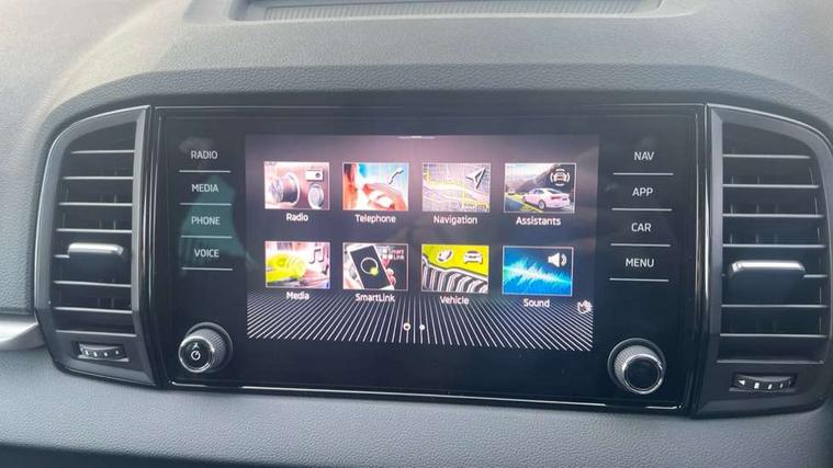 Advanced driver attention and drowsiness monitor, Amundsen navigation system with 8" touchscreen display and integrated WLAN and web radio, Electro-mechanical PAS, Emergency services call system, Lane assist, Outside temperature gauge, Sensor for driver assistance systems, Service interval indicator, SmartLink wireless for Apple and wired for Android, Start/stop system with regenerative braking, Traffic sign recognition, USB C Port x 2 in front centre console, Virtual Cockpit - 10.25" digital display, Wireless smartphone charging, 8 Speakers, DAB radio with Bluetooth, USB connection, Acoustic glass, Aero front windscreen wipers with intermittent function, Auto dimming rear view mirror with light and rain sensors, Black electric window control buttons, Body colour door mirrors and handles, Electric front and rear windows with child proof lock, Electrically adjustable heated folding and auto dimming door mirrors, Front fog lights, Headlight range control, Heated rear windscreen, LED daytime running lights, LED Headlights, LED rear lights with high functionality welcome effect and dynamic indicators, Light assistant (coming/leaving home/tunnel light), Plastic scuff plates in door apertures, Privacy glass, Rear side wing doors, Rear window wiper with washer system and intermittent control, Safety reflectors on front doors, Third brake light, Unique dark chrome design logo on alloy wheels, 1.5 litre bottle holders in driver and front passenger door panels, 12V socket in boot, 12v socket in front centre armrest with storage compartment and rear air vents, 2 spoke leather heated multifunction steering wheel with DSG paddles, 2 x Tablet holder, 3 rear height adjustable headrests, 3 seat bench in 2nd row, 4 foldable roof handles with rear coat hooks, Black floor carpet, Cargo elements in boot, Chrome inner door handles, Driver/front passenger reading lights, Foldable hooks in the boot, Folding tables on the front seat backrests, Front head restraints, Height adjustable driver and passenger seat, Height adjustable front three point seats belts with tensioners, Height/reach adjust steering wheel, Ice scraper, Illuminated glovebox, Illuminated luggage compartment, Interior noise suppression, Isofix child seat preparation for front passenger seat, Isofix child seat preparation outer rear, Loft fabric upholstery, Manual lumbar support for front seats, Pearl grey interior ceiling, Pen holder, Pollen filter, Rear boot cover, Rear package tray, Rear reading lights, Rubbish bin door, Safety vest holder, Single front passenger seat, Skoda lettering on steering wheel, Storage box in upper central dashboard closed, Sunvisors with illuminated vanity mirrors, Textile floor mats, Ticket holder, Umbrella under passenger seat, Under passenger seat storage compartment, Non Smokers pack, Parking pack - Karoq, Winter pack with heated front seats - Karoq, Automatic door unlocking in case of crash, Automatic fuel cut off in case of crash, Driver airbag, Electronic parking brake with auto hold function, Emergency rear braking signal, ESC (incl. ABS+MSR+ASR+EDS+HBA+DSR+RBS+MKB), Front assist, Front side airbags, Head airbags, Hill hold control, Knee airbags, Passenger airbag with switch-off function, Pedestrian monitor, Power operated child safety locks, Seatbelt reminder signalisation and pretensioner for all seats, Three point seatbelts rear, Two tone horn, Tyre pressure monitor, Alarm with interior monitoring, back up horn and tilt sensor with safe function, Electronic engine immobiliser, Keyless entry and start/stop, Remote central locking with 2 remote folding keys, Anodized cross door decor, Black centre console, Chrome framed air vents, Satin black dashboard, Satin black door trim, Anti-theft wheel bolts protection, Breakdown and tool kit,