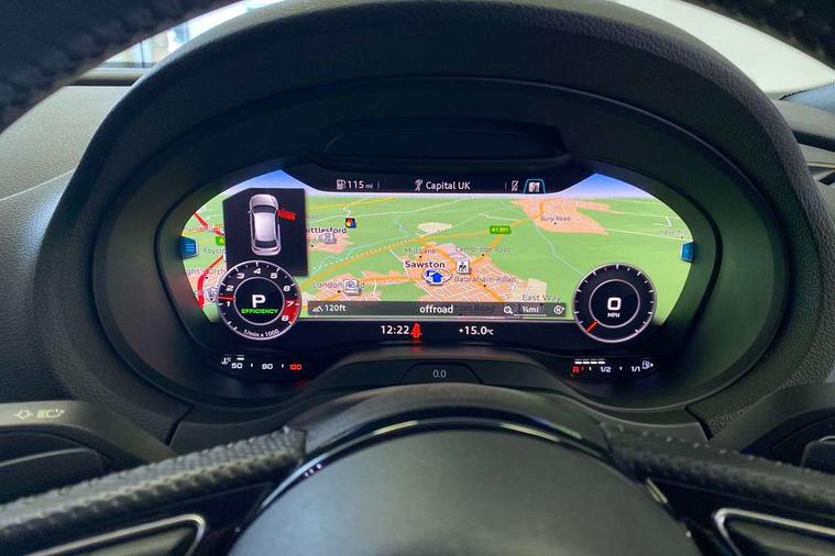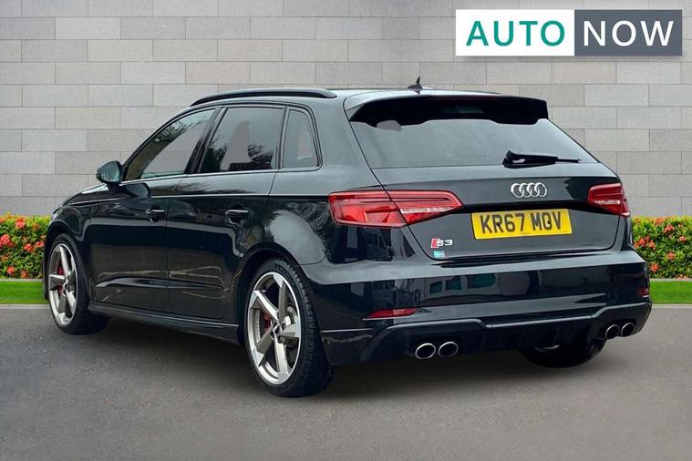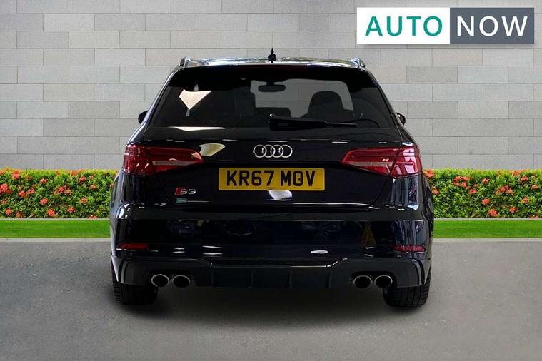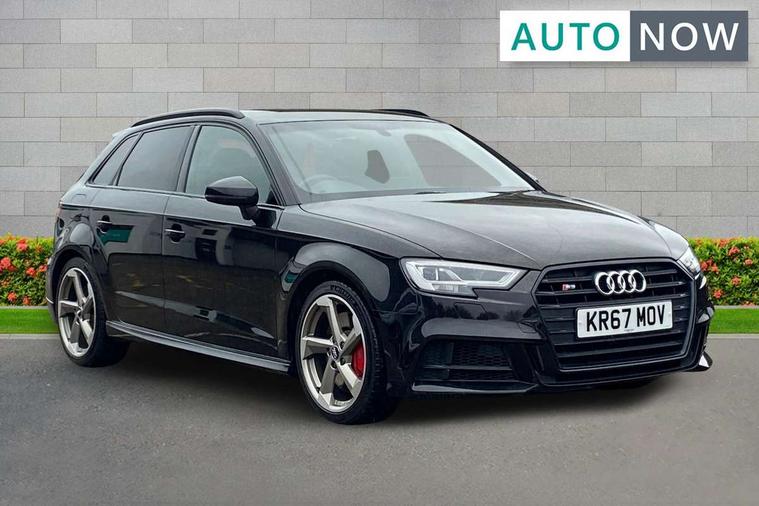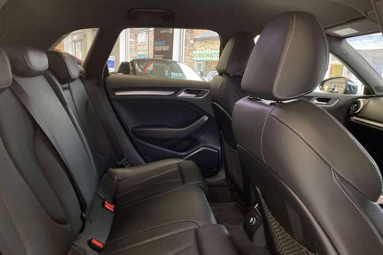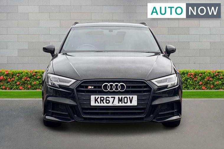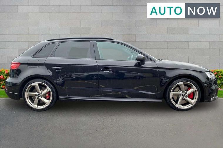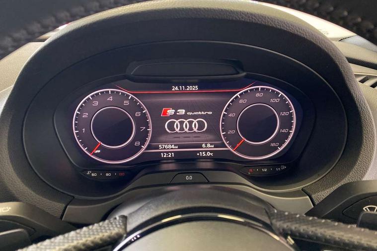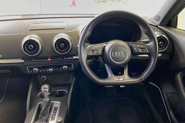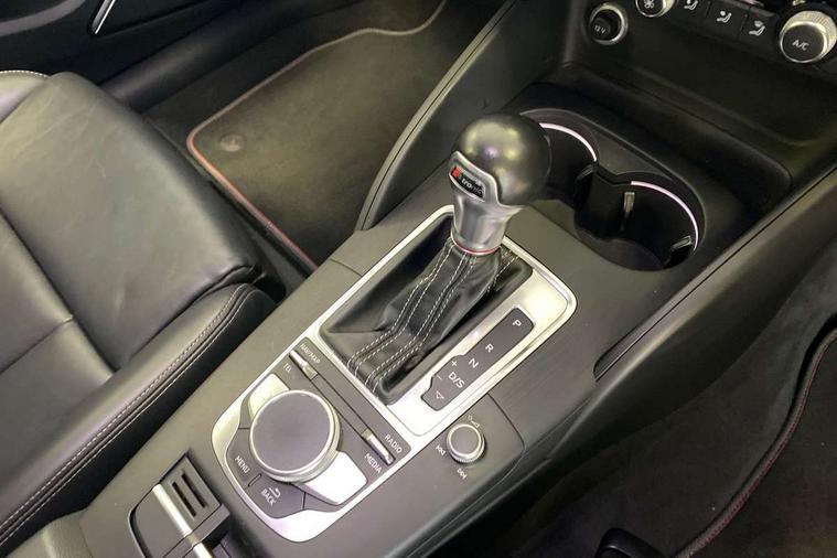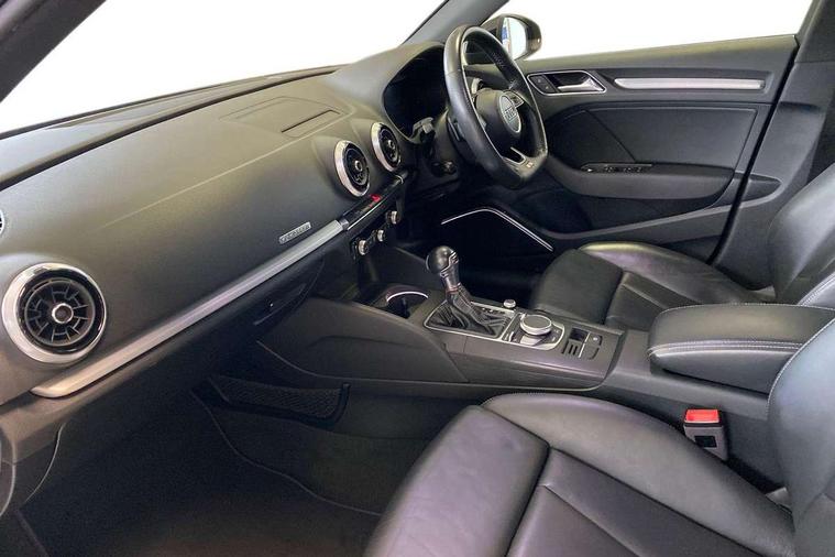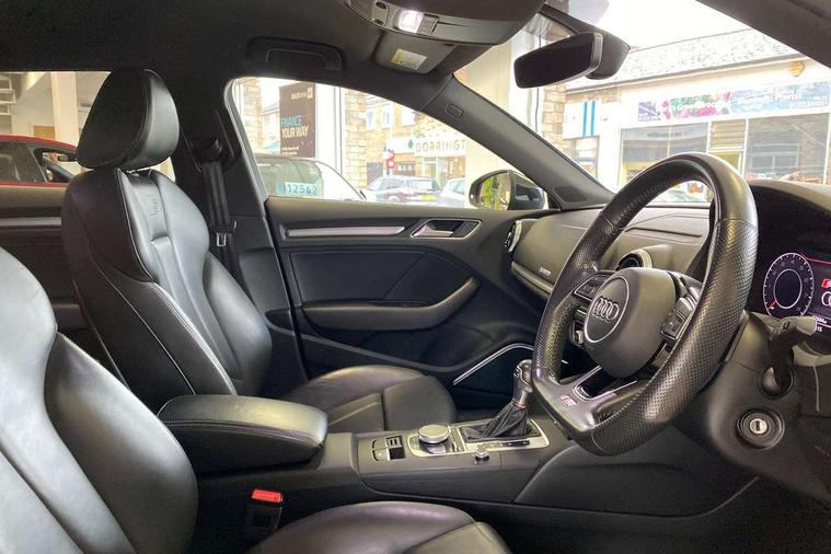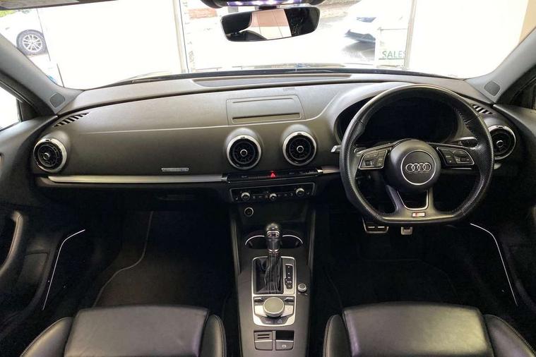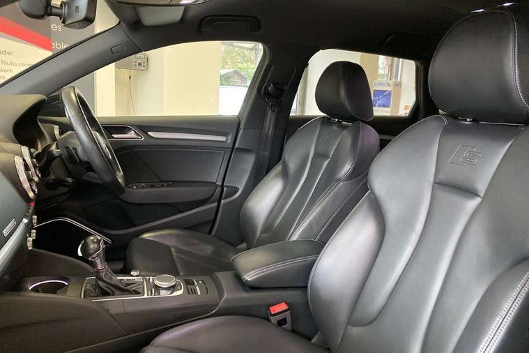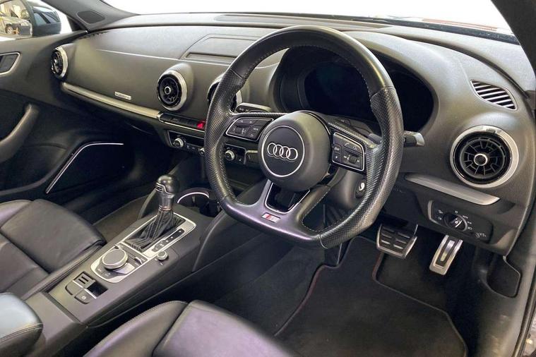 Audi connect, Audi drive select, Audi smartphone interface, Colour driver's information system display, HDD satellite navigation system radio single CD/DVD player MMI control system, Mobile telephone preparation - bluetooth interface, Progressive power assisted steering, Service interval indicator, Speed limit display, Voice control system, S sports suspension, 2 USB ports, Audi music interface, Auxiliary input socket, Bang + Olufsen advanced sound system, CD player, DAB Digital radio, MMI radio plus with 7" colour MMI screen and MMI controller, Auto dimming rear view mirror with light and rain sensors, Black door mirrors, Black window surrounds, Body colour bumpers with black insert, Body colour roof spoiler, Electric front windows, Electric operated/heated door mirrors, Electric rear windows, Headlight washers, Heated windscreen washer jets, LED daytime running lights, Matt black radiator grille, Platinum grey radiator grille with double chrome bars, Privacy glass, Rear wiper, S body styling, Twin oval chrome trimmed exhaust tailpipes, 3 adjustable rear headrests, 3 spoke flat bottomed multi-function leather steering wheel, 4 lashing points to secure luggage, Adjustable front armrest, Dual zone electronic climate control, Front and rear interior lights with delay, Front passenger seat isofix location point, Front/rear floor mats, Heated front seats, Height/depth adjustable steering column, Illuminated door sills, Illuminated glovebox, ISOFIX child seat preparation+airbag deactivation, Jack and tool kit, Rock grey headlining, Stainless steel pedals, Steering wheel gearshift paddles, Storage compartment in centre console, Storage compartment under front seats, Storage compartments in doors, Black styling pack - A3/S3, LED interior light pack - A3/RS3, Non smoking pack - A3, Storage and luggage pack - A3/RS3, 3 point seatbelts on all seats, ABS/EBD, Active bonnet, Active front headrests, ASR, Curtain airbags, Driver and passenger side airbags, Driver/Front Passenger airbags, Drivers knee airbag, EDL, Electromechanical parking brake, ESC - Electronic Stability Control + traction control, Front passenger airbag deactivation, Manual rear child locks, Multi-Collision braking, Seatbelt warning, Tyre pressure warning, Warning triangle and first aid kit, Anti theft alarm, Anti-theft wheel bolts, Remote control central locking, Thatcham category 1 alarm + immobiliser, Aluminium air vent surrounds, Aluminium trim elements, Matt brushed aluminium inlays, Space saver spare wheel,