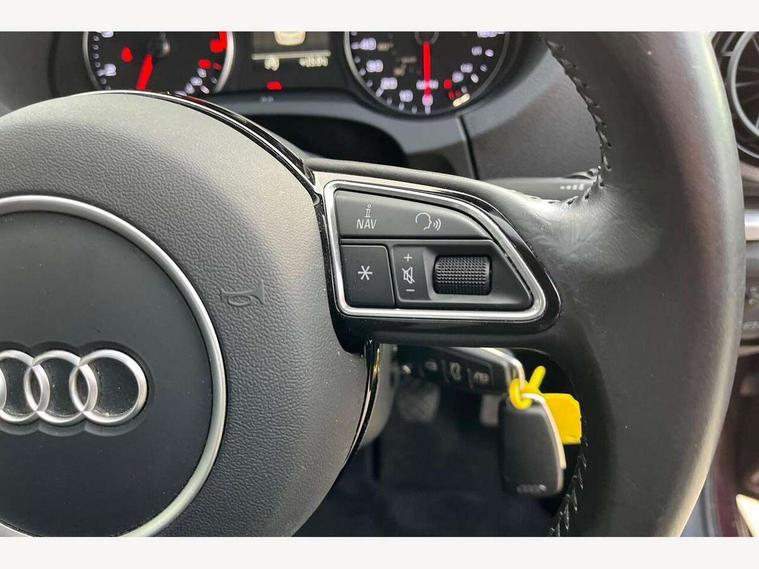 Audi drive select, Colour driver's information system display, Low washer fluid indicator, Service interval indicator, Voice control system, Audi music interface, DAB Digital radio, Aluminium side window trim, Body colour bumpers, Body colour door mirrors with integral indicators, Body colour roof spoiler, Chrome exhaust tailpipes, Chrome fog light surround, Front and rear electric windows, Front fog lights, Heated rear window, Heated windscreen washer jets, Twin exhaust tailpipe, 3 adjustable rear headrests, 3 spoke leather multifunction sports steering wheel, 4 lashing points to secure luggage, 60/40 split folding rear seat, Adjustable front armrest, Aluminium door sill trims, Coat hooks on both sides, Cup holders, Driver/passenger sunvisors, Dual zone electronic climate control, Front and rear interior lights with delay, Front sports seats, Front/rear floor mats, Height adjustable front seats, Height/depth adjustable steering column, Illuminated glovebox, Illuminated luggage compartment, ISOFIX child seat preparation+airbag deactivation, Passenger underseat drawer, Removable rear parcel shelf, Storage compartment in centre console, Storage compartments in doors, 3 point seatbelts on all seats, ABS/EBD, Active bonnet, Active front headrests, ASR, Curtain airbags, Driver and passenger side airbags, Driver/Front Passenger airbags, Drivers knee airbag, EDL, Electromechanical parking brake, ESC - Electronic Stability Control + traction control, Front passenger airbag deactivation, Manual rear child locks, Seatbelt warning, Tyre pressure monitor, Warning triangle and first aid kit, Anti-theft wheel bolts, Remote control central locking, Thatcham category 1 alarm + immobiliser, Aluminium air vent surrounds, Aluminium trim elements, Space saver spare wheel,