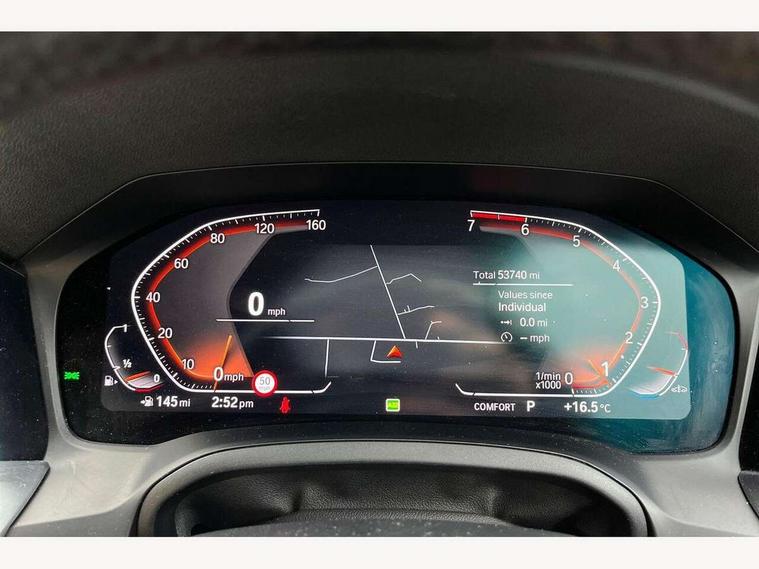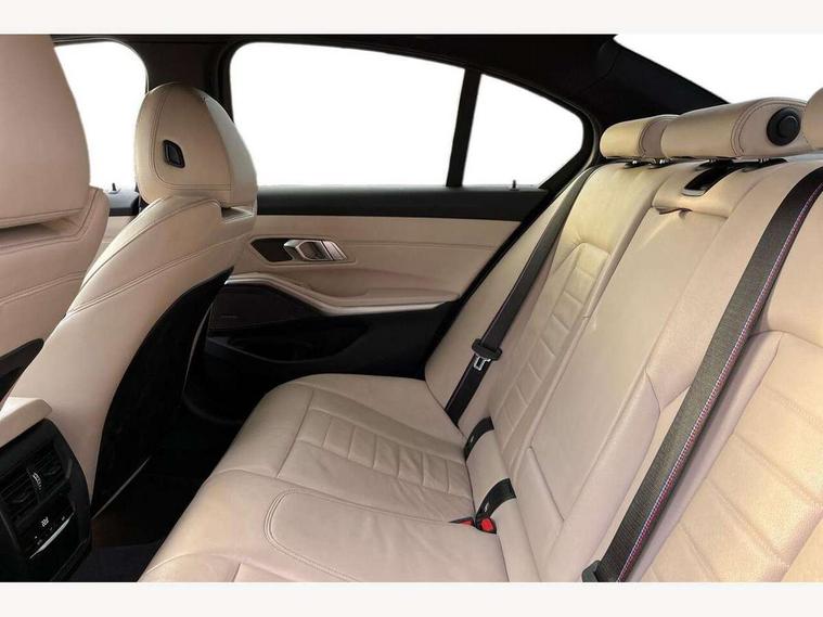 Active guard plus, Attentiveness assist, Auto start-stop, BMW iDrive controller on centre console, BMW Live Cockpit Professional sat nav system including 10.25" high resolution display and Intelligent Voice Assistant, BMW Online services, BMW Teleservices, Brake pad wear indicator in front and rear, Check Control warning system for monitoring of lights and door/luggage compartment open warning, Condition based service, Instrument cluster with speedometer with mph readout, tachometer, fuel gauge and oil temperature gauge, Oil sensor for level and grade, On board computer - average speed+fuel consumption, service interval, clock/date, odometer/trip meter, outside temperature display and ice warning, Optimum shift indicator, Personal Profile, Variable sport steering, Battery cut-out switch, Double VANOS, Drive performance control with ECO PRO comfort and Sport+ mode, Electronic differential lock, High precision injection, Larger capacity fuel tank, M sport suspension, Petrol Particulate Filter, Sport automatic transmission with steering-wheel mounted gearshift paddles and launch control, Stroke dependent dampers, DAB tuner, Acoustic glazing, Active airstream chrome frame kidney grille with 8 high gloss black vertical slats, Automatic headlight beam throw control with load dependent regulating reaction, dynamic compensation of braking dive and acceleration squat, Black roof mouldings, Body colour - fuel filler flap, front and rear bumpers, door handles and mirror caps with integrated turn indicator + bottom segment in matt black, Dynamic brake lights, Extended LED headlights, Exterior mirrors - electrically folding with anti-dazzle, Front and rear bumper system with replaceable deformation elements, Front and rear electric windows with open and close fingertip control, anti trap facility and comfort closing, Front black door sill finishers with BMW designation, Green tinted heat protection glazing, High gloss shadow line exterior trim, Interior rear view electrochromatic mirror with automatic anti dazzle function, LED front fog lights, Left and right split exhaust tailpipes, Lightweight engineering, M aerodynamic body styling, M designation on left and right front side panels, M designation side badges, Matt black exterior B pillar, Model designation on right side of tailgate, Rain sensor with automatic headlight activation, Shark fin antenna, Two part LED tailights in L-shape with components in smoked glass, brake light, LED turn indicator and rear fog light, Visible VIN plate, Welcome lights in interior and door handle area, Windscreen wipers with integrated washing jets, 12V power socket in front storage compartment, 2 front cupholder in centre console with clamping elements and matt black inlay, 3 rear seats with non folding headrests with 3 point seat belts, 3 spoke M leather steering wheel, 4 pieces lashing eyelets in luggage compartment, 40:20:40 split folding rear bench seat, Ambient lighting, Anthracite headlining, Armrest integrated in front and rear door trim + front centre console armrest, Centred top Luggage compartment lights, Four grab handles integrated in roof lining, Front and rear door pockets, Front and rear velour floor mats, Front head restraints, Front sport seats, Heated driver and front passenger seats, Height adjustable mechanically and infinitely variable steering column, Illuminated glove compartment with separate small compartment, Interior lighting - front centre over interior mirror with soft light, rear centre and front and rear footwell lighting, Rear centre armrest with 2 cupholders, Rear centre console with storage compartment and ventilation grille, Steering column length adjustment lever, Sunvisors with vanity mirrors and ticket pocket, Three zone automatic air conditioning, Through loading system with 40/20/40 split folding rear seat, Toolkit located in luggage compartment, Connected pack professional - 3 Series Saloon/Touring, M Aerodynamics pack - 3 Series Saloon/Touring, 2 tone horn, ABS, Automatic Stability Control (ASC), BMW emergency call, Brake assist function, Brake drying, Brake energy regeneration, Braking pre-tensioning, Child proof locking system in rear door, Child seat ISOFIX attachment rear outer seats, Cornering brake control (CBC), Crash sensor activating of airbags, Unlocking doors, hazard warning lights, interior light, safety battery terminal, Driver and front passenger side airbags, integrated in the door side seat backrest bolsters for all seat variants, Driver/Front Passenger airbags, Dynamic brake control, Dynamic Traction Control - DTC, Electromechanical parking brake with automatic drive away release and auto hold function, Front passenger manual airbag deactivation, Head airbags for all 4 outer seats, Hill start assist, M Sport braking system, Seat belt security check for driver and front passenger, Side impact protection, Three 3 point seat belts on all seats including front belt stopper, pyrotechnic belt tensioners and belt force limiters, Tyre pressure monitoring with three level warning strategy, Ventilated front and rear disc brakes, Warning triangle and first aid kit, Alarm system (Thatcham 1) with remote control and electronic engine immobiliser, Central locking switch for all doors, fuel filler cap and luggage compartment, Remote control with integrated key one button open/close vehicle and windows, sole opening of the luggage compartment lid and panic mode, Selectable automatic lock when driving away, Start/stop button with Comfort Go keyless engine start and auto Start/stop deactivation button, Vehicle key with M specific designation, Reduced rolling resistance tyres,