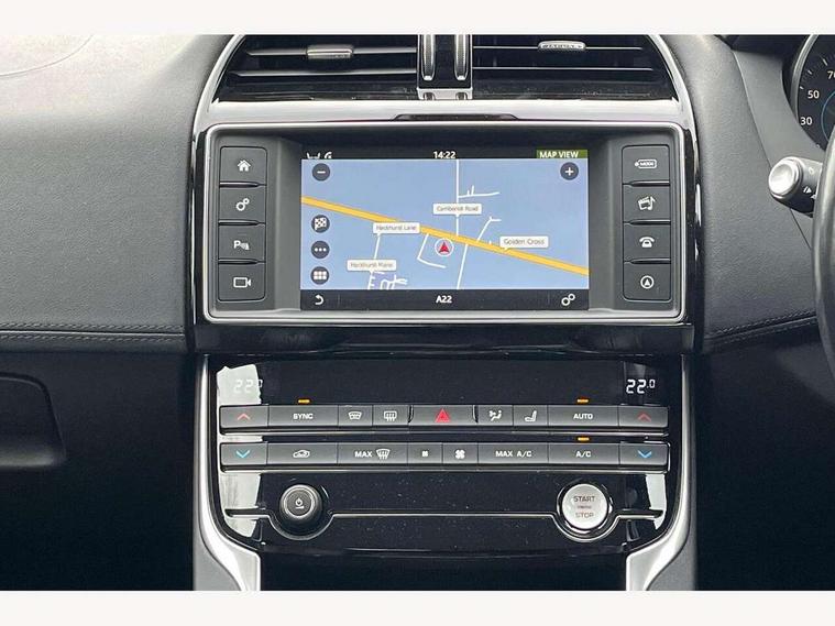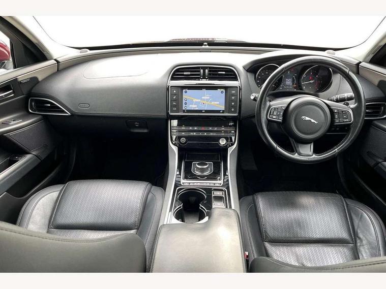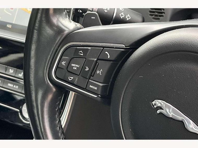 Bluetooth telephone connectivity, InControl remote, Jaguar Voice front, Lane departure warning system, Outside temperature gauge, Rear parking sensor, Service interval indicator, Servotronic PAS, Traffic sign recognition, Trip computer, Auxiliary input socket, Bluetooth audio streaming, DAB digital radio module, Dynamic volume control, InControl app, InControl protect, Radio, USB/iPod connection, Approach lamps, Auto dimming rear view mirror, Automatic headlights, Body colour bumpers, Body colour door mirrors, Chrome side power vents, Chrome window surround, Electric front/rear windows with one touch/auto up/down, Green tinted heat insulating glass, Hazard warning lamps, Headlight washers, Heated rear windscreen, LED rear lights, Rain sensor windscreen wipers, 12V power point front/rear, 3 rear seat head restraints, Auxiliary heater, Door sill tread plates, Dual zone automatic climate control, Front centre armrest with storage compartment, Front storage compartment, Isofix child seat preparation, Jaguar sense, JaguarDrive selector, Lockable glovebox, Luggage tie-down hooks, Multi function steering wheel, Overhead console with sunglasses holder, Perforated Windsor leather upholstery, Rear air vents, Rear armrest with cupholder, Shopping hook in boot, Softgrain leather steering wheel, Storage compartment in front doors, Storage compartment in rear doors, Twin front cupholders, ABS, Anti-whiplash front headrests, Autonomous emergency braking, Brake pad warning light, Driver/Front Passenger airbags, DSC - Dynamic Stability Control, Electronic parking brake, Emergency brake assist, Front and rear seatbelt reminder, Front passenger seat occupancy sensor, Front side airbags, Hill start assist, Power child locks, Side curtain airbags, Three 3 point rear seatbelts, Torque vectoring brake, Traction control, Tyre pressure monitoring system, Driver's central locking switch, Immobiliser, Locking wheel nuts, Perimeter alarm, Remote central locking, Knurled Aluminium IP Finisher, Leather dashboard,