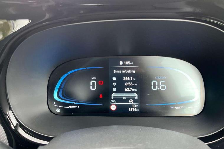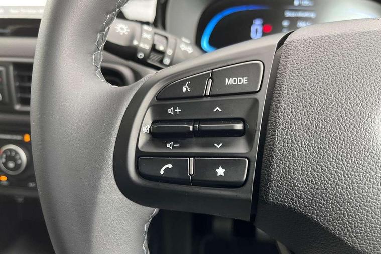 Apple car play/Android Auto, Bluelink mobile remote connectivity, Bluetooth connectivity with voice recognition, Cruise control, Driver attention alert system, eCall emergency call system, Forward Collision-Avoidance Assist (FCA) - Pedestrian/Cyclist, Front USB-C charging and USB-A data, Full-width 4.2" LCD instrument cluster, Intelligent speed limit assist, Lane departure warning system with lane keep assist - LKAS, Lane follow assist, PAS, Rear parking sensors, Rear view camera with guidelines, Roadside assistance, Start/Stop function, Tailgate, Trip computer, 2 front/2 rear speakers, Rear USB-C device charger, Steering wheel audio, phone and cruise controls, 1 speed non intermittent rear windscreen wiper, Black finish on B pillars, Body colour door handles, Body coloured bumpers, Body coloured door mirrors, Electric front windows, Electric rear windows, Electrically adjustable and heated door mirrors, Flat metal emblem, Front grille in matte black, Front intermittent wipers, Halogen daytime running lights, Halogen headlights, Headlights inner with Black Blade design, Heated rear window, High beam assist, Indicator light on door mirrors, Rear roof spoiler with integrated LED brake light, Rear side wing doors, 12v power outlet - front, 3 seat bench in 2nd row, 60/40 split folding flat to floor rear seats, Air conditioning, Auto light control, Bottle holders in front/rear doors + front centre console, Cabin and luggage compartment interior lighting, Cloth upholstery, Driver + passenger vanity mirrors, Driver's seat height adjustment, Driver/passenger sunvisors with ticket holders, Floor mats, Front door pockets, Front Head Restraints - Vertical and Horizontal Adjustment, Glove compartment, Height adjustable steering column, Isofix child seat preparation, Leather multifunction steering wheel, Rear door pockets, Single front passenger seat, Vertical adjustment rear head restraints, 3x3 point rear seatbelts, Airbags - front, front side and curtain airbags, Anti-lock brake system (ABS), Autonomous emergency braking (AEB) with forward collision warning system, Brake assist function, Childproof rear door locks, Electronic stability control, Front and rear seatbelt reminder, Front seatbelt pretensioners, Hill start assist control (HAC), Passenger airbag deactivate switch, Traction control, Tyre pressure monitoring system, Immobiliser, Perimeter alarm, Rear occupant alert, Remote central locking, Second remote key, Speed sensitive auto door locking, 15" Alloy wheels, Tyre repair kit,