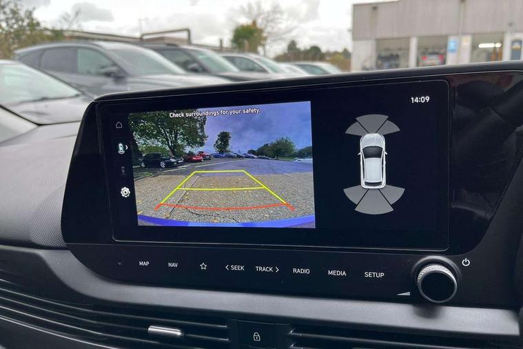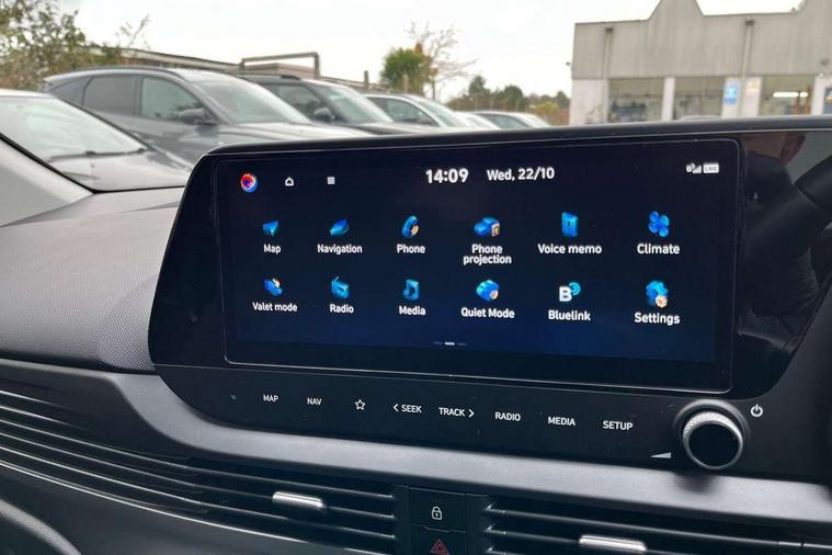 10.25" digital supervision cluster, 10.25" touchscreen + navigation, 2nd Gen eCall, Apple car play/Android Auto, Forward collision assist with car, pedestrian and cycle detection, Front parking sensor, Intelligent speed assist, Intelligent speed limit warning, Lane follow assist, Lane keep assist, MAP OTA updates, PAS, Rear parking sensor, Rear view camera with dynamic guidelines, Wireless charging pad, Bose premium sound system, USB C port front, USB C Port in rear, Black door mirrors, Black roof, Dusk sensor, Electric adjustable heated door mirrors, Electric folding door mirrors, Electric tilt/slide glass front sunroof + interior blind, Front grille mesh pattern design, High beam assist, LED 3rd brake light, LED daytime running lights, LED Headlights, LED taillights, Privacy glass - Rear windows and tailgate, Rain sensor, Rear side wing doors, Rear wiper, Repositioned flat metal hyundai emblem, Trailer wiring, 3 seat bench in 2nd row, Adjustable head restraints, Automatic air conditioning, Cloth upholstery, Floor mats, Heated front seats, Heated steering wheel, Leather steering wheel, Multi colour ambient lighting, Single front passenger seat, 3x3 point rear seatbelts, ABS with front and rear diagonally split, Autonomous emergency braking, Child locks on rear doors, Front ventilated disc brakes, Rear solid disc brakes, Tyre pressure monitoring system, Keyless entry with start/stop button, 17" Alloy wheels, Tyre repair kit,