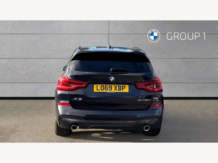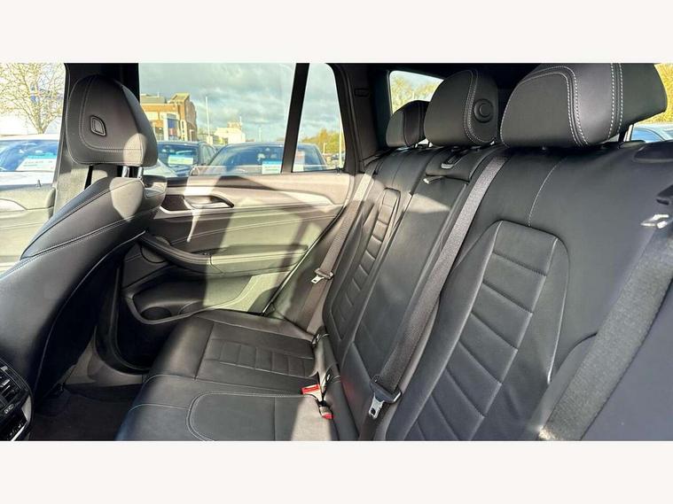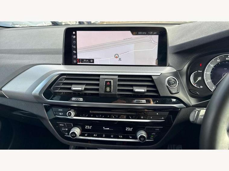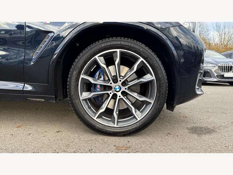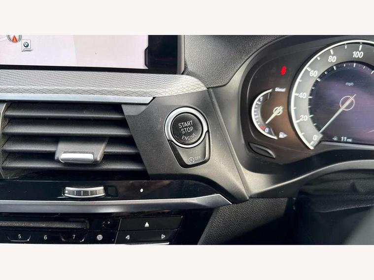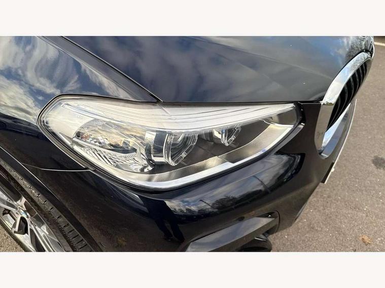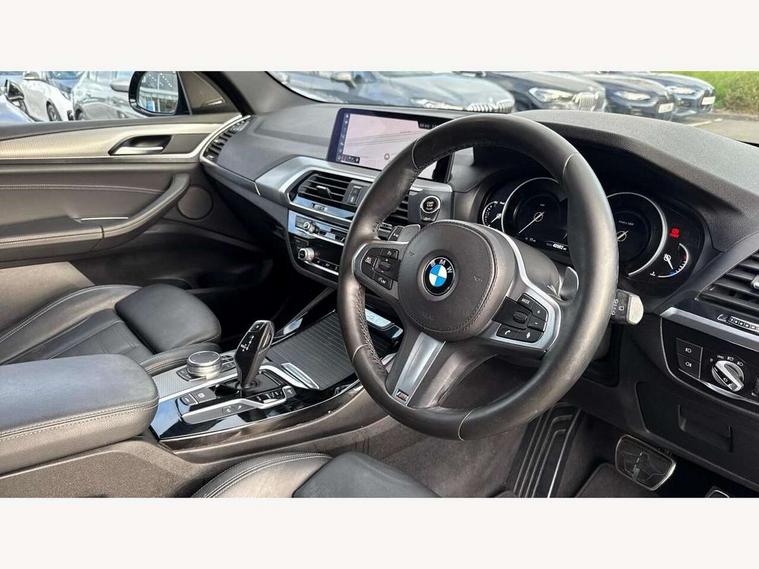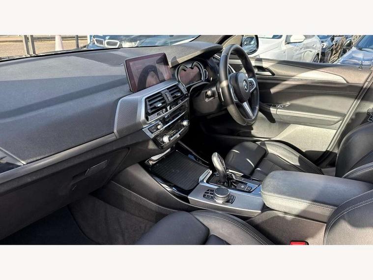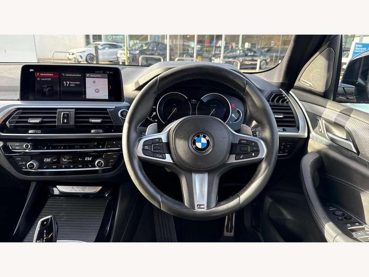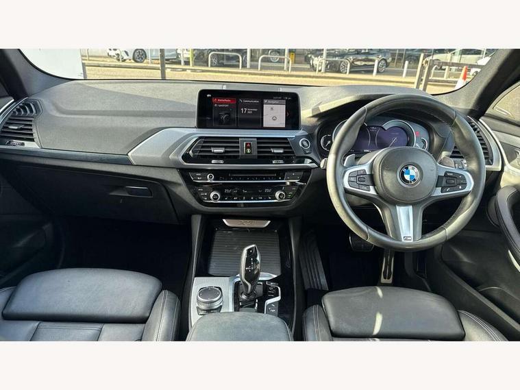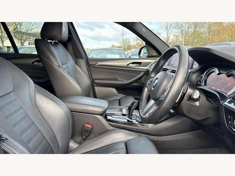 Active Guard incl speed limiting and lane departure functions with auto steering, and front collision warning with brake intervention, Attentiveness assist, Automatic tailgate operation, BMW Live Cockpit Professional sat nav system including 10.25" high resolution display and Intelligent Voice Assistant, BMW Online services, BMW Teleservices, Brake pad wear indicator in front and rear, Check Control warning system for monitoring of lights and door/luggage compartment open warning, Control display - 6.5" colour display screen, Electric Power Steering (EPS) with Servotronic, Front/rear Parking distance control, iDrive Controller with 8 favourite buttons, Lights on warning by audio warning signal when ignition is switched off, Navigation system - BMW Professional multimedia with Hard disc drive (HDD) and 10.25" touch display, Oil sensor for level and grade, warning by check control system, On board computer - average speed+fuel consumption, service interval, clock/date, odometer/trip meter, outside temperature display and ice warning, Optimum shift indicator, Personal Profile - automatic lock when driving away selectable, Real time traffic information, Semi digital instrument cluster, Stop/start system, Automatic transmission with gearshift paddles, Diesel particulate filter, Incorrect fuelling protection, Larger capacity fuel tank, Multi-link rear suspension, Performance Control, Auxiliary socket for external MP3 player, BMW professional radio/CD/MP3, DAB Digital radio, Acoustic glazing, Black finish on B pillars, Body colour door handles, Body colour electric adjust heated aspherical door mirrors, Body colour roof mouldings, Body coloured bumpers, Chrome kidney grille with high gloss black vertical slats, Direction indicator, side repeaters, integrated in exterior mirrors, Dual chrome exhaust, Dynamic brake lights, Exterior mirrors - electrically folding with anti-dazzle, Fingertip control / anti-trap function on electric window, Follow me home headlights, Front and rear bumper system with replaceable deformation elements, Front and rear electric windows, Green tinted heat insulating glass, Heated windscreen washer jets, Height adjustable headlamps, High gloss black door sill finishers, High gloss black shadow line roof rails, High gloss shadowline exterior trim in decorative moulding side frame/recess cover/guide rail/B, C pillars/mirror frame and triangle with mirror base, High level 3rd brake light incorporating LED Technology, Interior rear view electrochromatic mirror with automatic anti dazzle function, LED front fog lights, LED tail lights, Lightweight engineering, M aerodynamic bodystyling, Model designation, Rain sensor including auto headlights activation, Rear wiper, Shark fin antenna, Visible VIN plate, Welcome lighting, Windscreen wipers with adjustable interval, 12V socket in centre console and luggage area, 3 rear headrests, 3 zone automatic air conditioning, 4 lashing points to secure luggage, Ambient lighting, Anthracite headlining, Anthracite Velour floor mats, Driver/passenger sunvisors with ticket holders + illuminated vanity mirrors, Foldable boot floor with storage compartment, Four grab handles integrated in roof lining, Front and rear bottle holders integrated into door trim storage compartments, Front and rear side armrests integrated into door trim, Front centre armrest with storage compartment, Front footwell lights, Front sports seats, Front/rear courtesy lights with soft on/off dimming, Front/rear reading lights, Height adjustable front/rear head restraints, Isofix rear child seat preparation, Leather gear knob, Luggage area underfloor compartment, Luggage compartment lighting, M Sport multifunction leather steering wheel, Parcel shelf removeable and storable under boot floor, Reach and rake adjustable steering column, Rear centre armrest with 2 cupholders, Rear seat centre armrest with two cupholders, Removable / retractable luggage cover, Slope adjustable rear seats, Storage compartment in rear centre console and front/rear door trims, Through loading system with 40/20/40 split folding rear seat, Toolkit located in luggage compartment, Two front cupholders with removable oddments tray/lid, Vernasca leather upholstery, Connected pack professional - X3, ABS/EBD, ADB - Automatic Differential Brake, Automatic Stability Control (ASC), Battery safety cut-off, BMW emergency call, Brake assist, Brake assist function, Brake drying, Brake energy regeneration, Braking pre-tensioning, Child locks on rear doors, Cornering brake control (CBC), Crash Sensor - activation of central locking release, hazard warning light and interior lighting, Deactivation of fuel pump in the event of a crash, Driver and front passenger front and side airbags with passenger deactivation and ITS front and rear head airbags, DSC+, Dynamic brake control, Dynamic Traction Control - DTC, Electromechanical parking brake, Front seat belts warning, Hill descent control, Hill start assist, Seatbelt security check for front seats, Side impact protection, Three point seatbelts to all seats with front and outer rear pyrotechnic belt tensioners and seat belt force limiters, Two tone horn, Tyre pressure monitoring system, Ventilated front and rear disc brakes, Warning triangle and first aid kit, Central locking switch for all doors, fuel filler cap and luggage compartment, Electronic engine immobiliser, Locking wheel nuts, Remote control including two integrated key - one button for open/close all lockable content, windows and separate button for open luggage compartment, Remote control Thatcham category 1 alarm, Start/stop button with Comfort Go keyless engine start and auto Start/stop deactivation button, Low rolling resistance tyres,