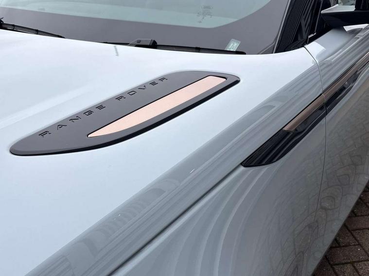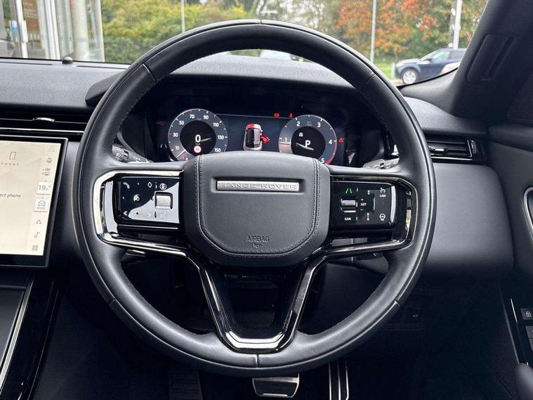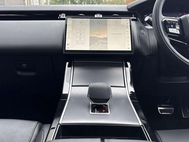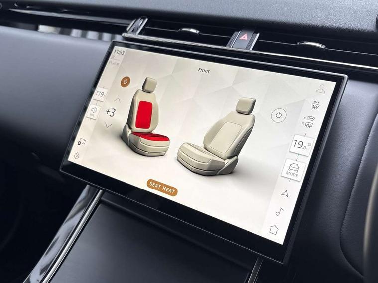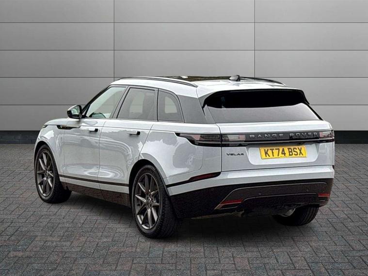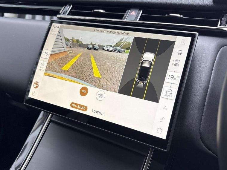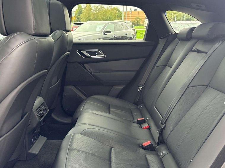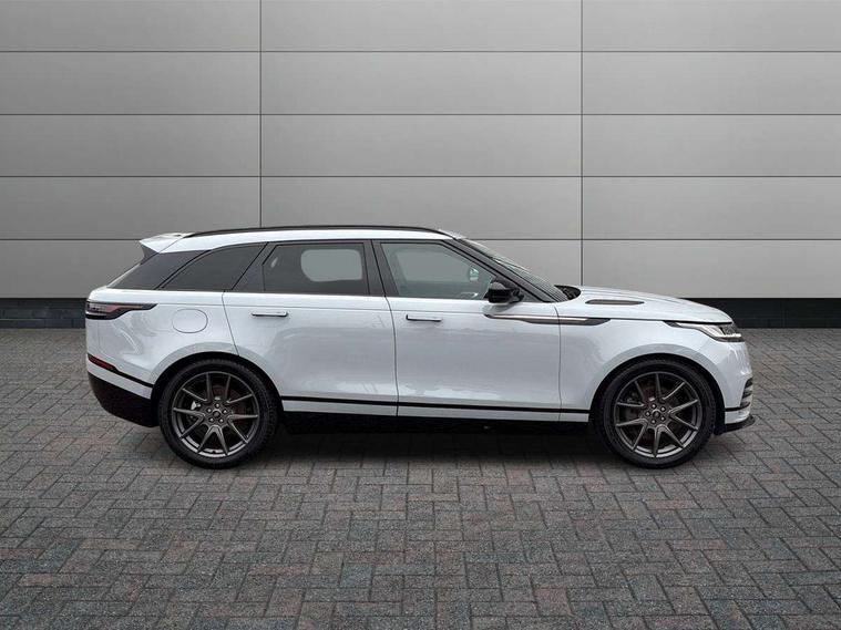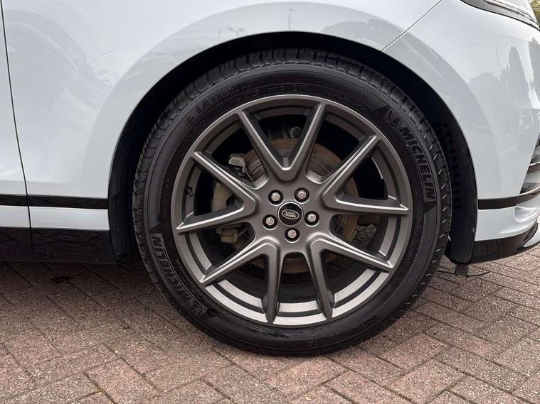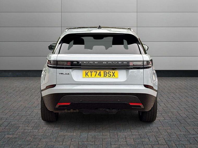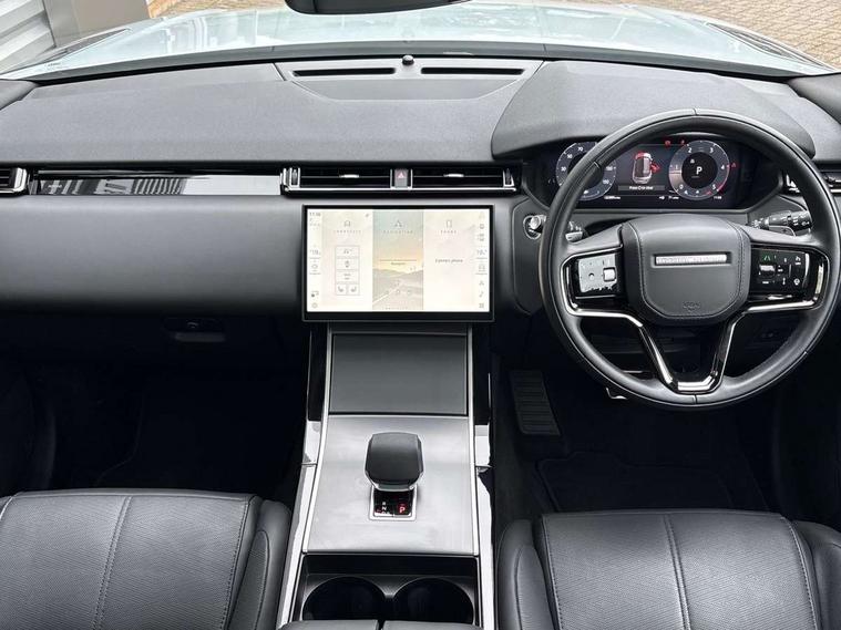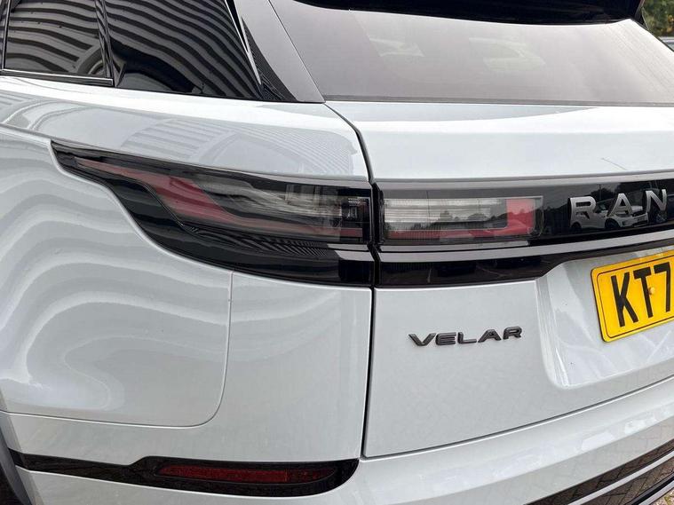 Adaptive cruise control with steering assist, Android Auto, Apple CarPlay, Blind spot assist, Bluetooth connectivity, Brake pad wear indicator warning light, Driver condition monitor, eCall emergency call system, Front and rear parking aid, InControl remote, Land Rover InControl apps, Lane keep assist, Pivi pro with connected navigation, Rear collision monitor, Rear traffic monitor, Service indicator, Speed proportional electronic power assisted steering (EPAS), Traffic sign recognition with adaptive speed limiter, Trip computer, Voice control system, Wireless device charging, 8 speed automatic transmission, Adaptive dynamics, All terrain progress control, Electronic air suspension, Open differential with torque vectoring by braking, Single speed transfer box, DAB radio, Steering wheel mounted controls, 3rd brake light, Acoustic laminated windscreen, Auto dimming interior rear view mirror, Automatic headlamp levelling, Automatic headlights, Body coloured bumpers, Boot protection plate, Electric windows with one touch open/close and anti trap, Flush deployable exterior door handles, Follow me home headlights, Heated rear window with timer, Heated washer jets, Heated windscreen, Metal front tread plates, Metal load space scuff plates, Pixel LED headlights with signature DRL, Power fold, auto-dimming, heated door mirrors with memory and approach lights, Rain sensor windscreen wipers, Rear animated directional indicators, Rear fog lights, Rear side wing doors, Rear wash/wipe, Tailgate/boot lid spoiler, Trailer stability assist, Velar badge, 3 seat bench in 2nd row, Ambient lighting, Bright metal pedals, Carpet mats, Driver/passenger sunvisors with illuminated vanity mirrors, Ebony morzine headlining, Electrically adjustable steering column, Extended leather upgrade, Heated steering wheel, Isofix system on outer rear seats, Loadspace cover, Overhead lighting console, Overhead stowage for sunglasses, Passive front headrests, Rear air vents, Rear centre headrest, Single front passenger seat, Twin front cupholders, Twin sliding front centre armrest, Online pack with data plan - Velar, Power socket pack 2 - Velar, 355mm Front and 325mm Rear brakes, 3x3 point rear seatbelts, Anti-lock braking system (ABS), Cornering brake control, Curtain airbags, Customer configurable autolock, Door side intrusion beams, Driver airbag, DSC - Dynamic Stability Control, Electronic brake force distribution, Electronic parking brake, Electronic traction control, Emergency braking, Front and rear seatbelt reminder, Hill descent control, Hill launch assist, Low traction launch, Passenger airbag, Power operated child locks, Rear airbags, Roll stability control, Side airbags, Tyre pressure monitoring system (TPMS), Global lock and unlock switch on driver door, Immobiliser, Intrusion sensor, Keyless entry, Lock only switch on front passenger door, Locking wheel nuts, Perimetric alarm, Remote central locking, All season tyres,