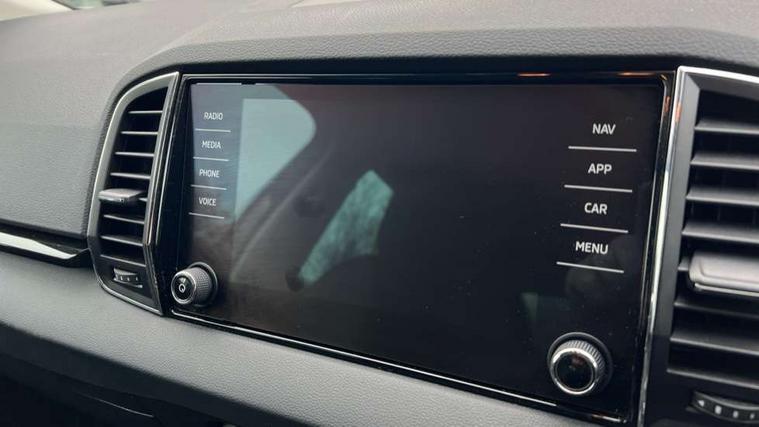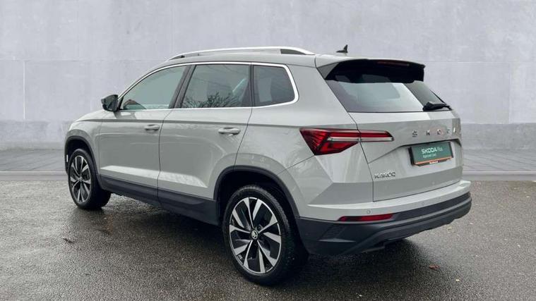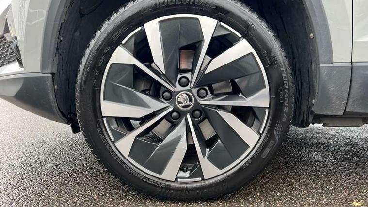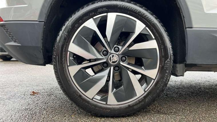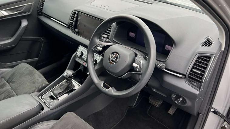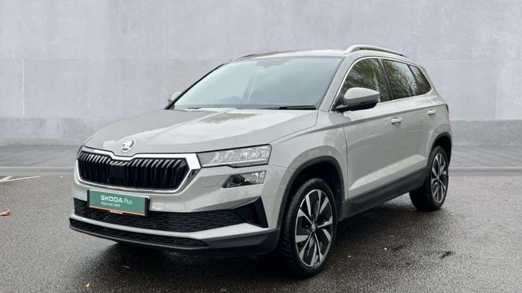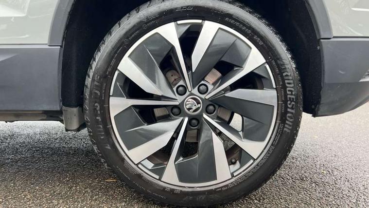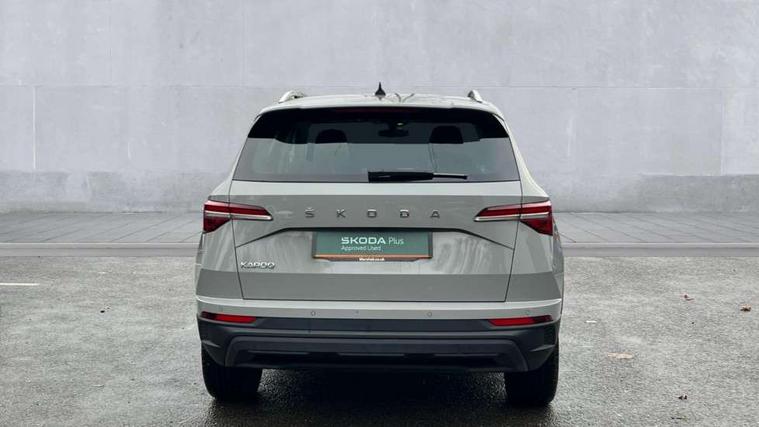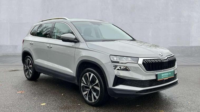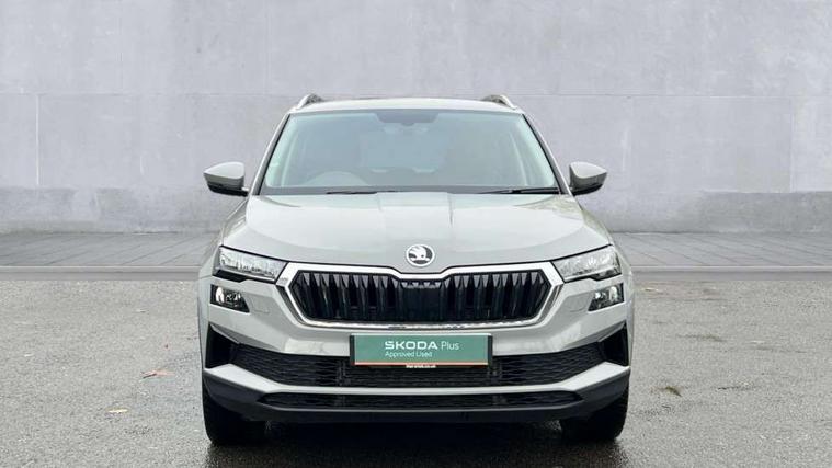 8" Digital display, Care connect, Driver fatigue sensor, Emergency services call system, Outside temperature gauge, Service interval indicator, SmartLink wireless for Apple and wired for Android, Start/stop system with regenerative braking, USB C Port x 2 in front centre console, 8 Speakers, DAB radio with Bluetooth, USB connection, Acoustic glass, Aero front windscreen wipers with intermittent function, Auto dimming rear view mirror with light and rain sensors, Black electric window control buttons, Body colour door mirrors and handles, Dynamic headlight range control with cornering light function, Electric front and rear windows with child proof lock, Heated rear windscreen, LED daytime running lights, LED rear lights with high functionality welcome effect and dynamic indicators, Light assistant (coming/leaving home/tunnel light), Plastic scuff plates, Privacy glass, Rear side wing doors, Rear spoiler, Rear window wiper with washer system and intermittent control, Safety reflectors on front doors, 1.5 litre bottle holders in driver and front passenger door panels, 12V socket in boot, 12v socket in front centre armrest with storage compartment and rear air vents, 2 spoke leather heated multifunction steering wheel with DSG paddles, 2 x Tablet holder, 3 rear height adjustable headrests, 3 seat bench in 2nd row, 4 foldable roof handles with rear coat hooks, Black floor carpet, Chrome inner door handles, Double sided boot floor, Foldable hooks in the boot, Front head restraints, Height adjustable front three point seats belts with tensioners, Height/reach adjust steering wheel, Ice scraper, Illuminated glovebox, Illuminated luggage compartment, Isofix child seat preparation for front passenger seat, Isofix child seat preparation outer rear, Manual lumbar support for front seats, Pen holder, Pollen filter, Rear boot cover, Rear reading lights, Rubbish bin door, Safety vest holder, Single front passenger seat, Storage box in upper central dashboard closed, Sunvisors with illuminated vanity mirrors, Textile floor mats, Ticket holder, VarioFlex seats with standard rear seat release, Boot pack - Karoq, Design Pack - Karoq, Parking pack - Karoq, Automatic door unlocking in case of crash, Automatic fuel cut off in case of crash, Child locks on rear doors, Driver airbag, Electronic parking brake with auto hold function, Emergency rear braking signal, ESC including ABS, MSR, ASR, EDS, HBA, DSR, RBS, MKB and traction control, Front side airbags, Hill hold control, Knee airbags, Passenger airbag with switch-off function, Pedestrian monitor, Seatbelt reminder signalisation and pretensioner for all seats, Three point seatbelts rear, Two tone horn, Tyre pressure display, Tyre pressure monitor, Alarm with interior monitoring, back up horn and tilt sensor with safe function, Electronic engine immobiliser, Keyless entry and start/stop, Remote central locking with 2 remote folding keys, Chrome framed air vents, 18" Miran alloy wheels in black, Anti-theft wheel bolts protection, Tool kit,