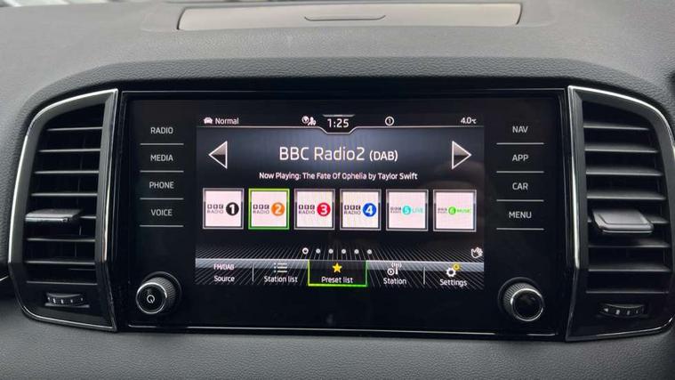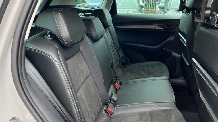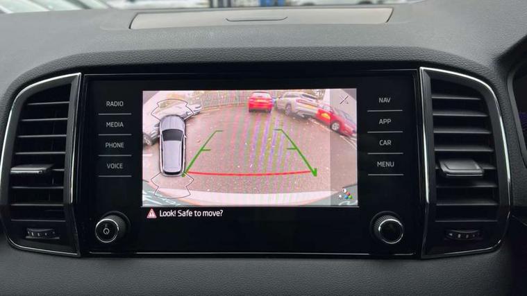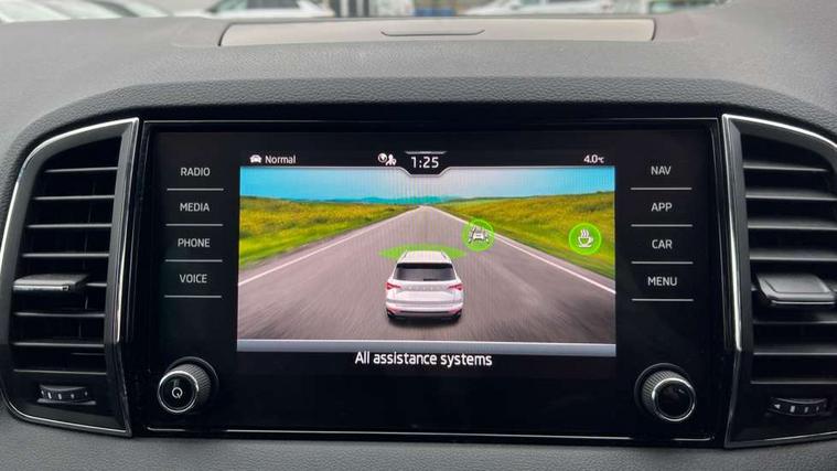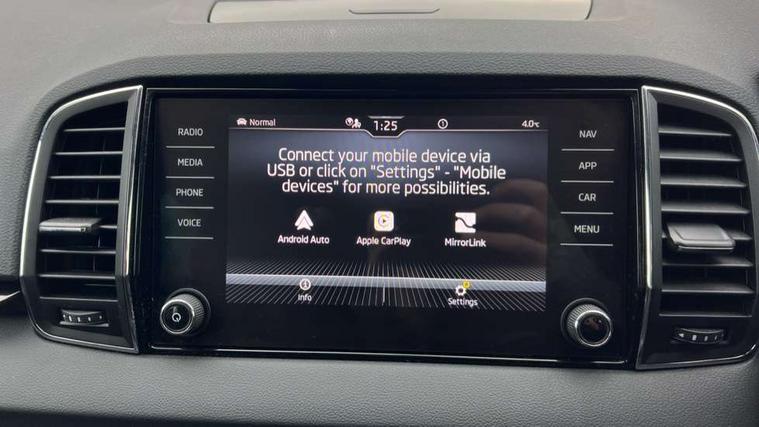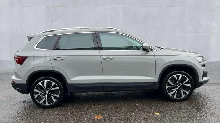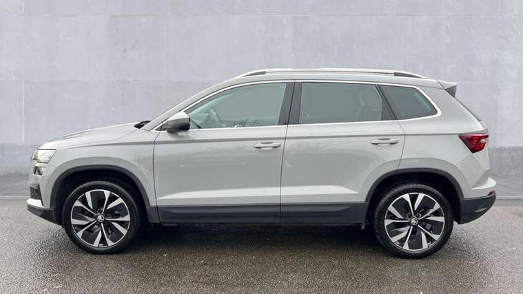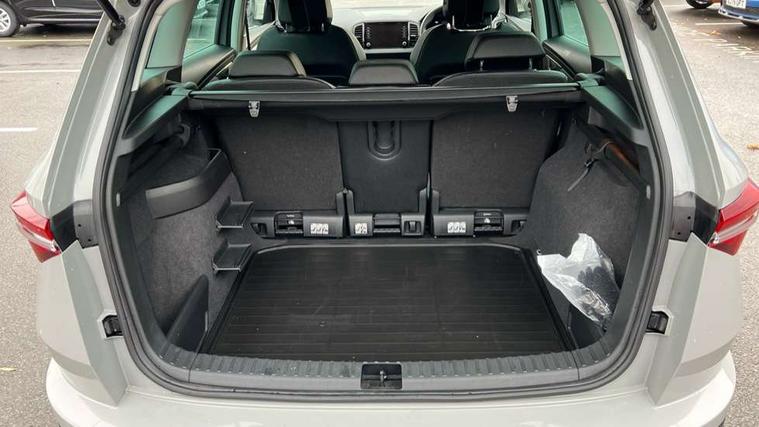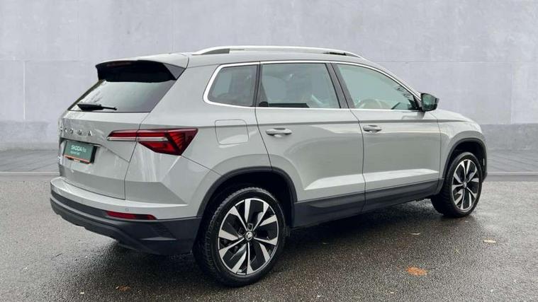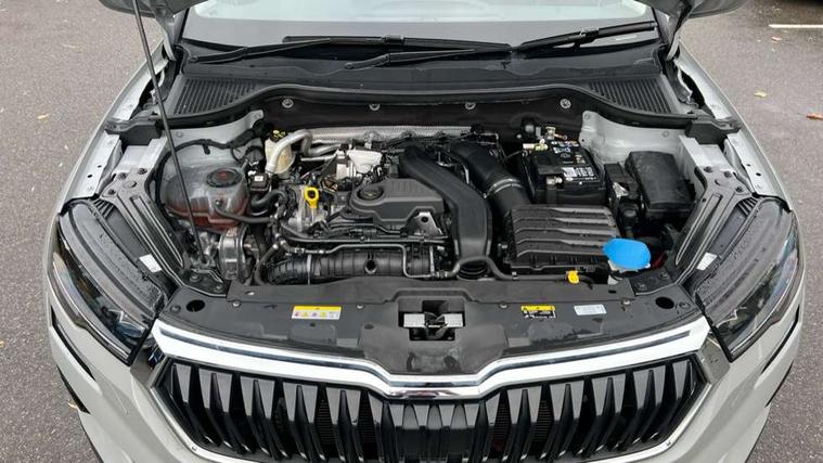 8" Digital display, Care connect, Driver fatigue sensor, Emergency services call system, Outside temperature gauge, Service interval indicator, SmartLink wireless for Apple and wired for Android, Start/stop system with regenerative braking, USB C Port x 2 in front centre console, 8 Speakers, DAB radio with Bluetooth, USB connection, Acoustic glass, Aero front windscreen wipers with intermittent function, Auto dimming rear view mirror with light and rain sensors, Black electric window control buttons, Body colour door mirrors and handles, Dynamic headlight range control with cornering light function, Electric front and rear windows with child proof lock, Heated rear windscreen, LED daytime running lights, LED rear lights with high functionality welcome effect and dynamic indicators, Light assistant (coming/leaving home/tunnel light), Plastic scuff plates, Privacy glass, Rear side wing doors, Rear spoiler, Rear window wiper with washer system and intermittent control, Safety reflectors on front doors, 1.5 litre bottle holders in driver and front passenger door panels, 12V socket in boot, 12v socket in front centre armrest with storage compartment and rear air vents, 2 spoke leather heated multifunction steering wheel with DSG paddles, 2 x Tablet holder, 3 rear height adjustable headrests, 3 seat bench in 2nd row, 4 foldable roof handles with rear coat hooks, Black floor carpet, Chrome inner door handles, Double sided boot floor, Foldable hooks in the boot, Front head restraints, Height adjustable front three point seats belts with tensioners, Height/reach adjust steering wheel, Ice scraper, Illuminated glovebox, Illuminated luggage compartment, Isofix child seat preparation for front passenger seat, Isofix child seat preparation outer rear, Manual lumbar support for front seats, Pen holder, Pollen filter, Rear boot cover, Rear reading lights, Rubbish bin door, Safety vest holder, Single front passenger seat, Storage box in upper central dashboard closed, Sunvisors with illuminated vanity mirrors, Textile floor mats, Ticket holder, VarioFlex seats with standard rear seat release, Boot pack - Karoq, Design Pack - Karoq, Parking pack - Karoq, Automatic door unlocking in case of crash, Automatic fuel cut off in case of crash, Child locks on rear doors, Driver airbag, Electronic parking brake with auto hold function, Emergency rear braking signal, ESC including ABS, MSR, ASR, EDS, HBA, DSR, RBS, MKB and traction control, Front side airbags, Hill hold control, Knee airbags, Passenger airbag with switch-off function, Pedestrian monitor, Seatbelt reminder signalisation and pretensioner for all seats, Three point seatbelts rear, Two tone horn, Tyre pressure display, Tyre pressure monitor, Alarm with interior monitoring, back up horn and tilt sensor with safe function, Electronic engine immobiliser, Keyless entry and start/stop, Remote central locking with 2 remote folding keys, Chrome framed air vents, 18" Miran alloy wheels in black, Anti-theft wheel bolts protection, Tool kit,