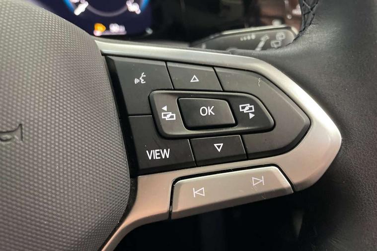 Activated carbon canister, Adaptive cruise control (ACC), Advanced driver attention and drowsiness monitor, Dynamic road sign display, E-Sim card for online connectivity, eCall emergency call system, Multi-color Digital cockpit pro, selection of different info profile possible, Multifunction front facing camera for distance control, Navigation system, Oncoming vehicle braking when turning including swerve support, Preparation for light assist system, Speed limiter, Speedo, rev counter, electronic odometer, trip, service interval display, exterior temperature and fuel gauge, Voice enhancer and voice control, Warning signal and warning light for front and rear seatbelts not fastened, We connect plus preparation, We connect preparation, Wireless app connect, Petrol Particulate Filter, Start-stop system with battery regeneration (recuperation - energy recovery during braking), XDS electronic differential lock for improved traction and handling, 2 USB C ports in front, 2 USB charging sockets on the centre console in the rear charging capacity upto 45W, Comfort telephony + wireless charging, without wireless aerial connection, Digital radio reception (DAB), Diversity antenna for FM reception, Gaming platform via car app, Infotainment system with 12.9" display, Mobile phone interface with inductive charging feature, 3rd brake light, Auto headlights, Automatic headlamp activation with Coming home and Leaving home feature, Body colour door handles, Body colour door mirrors, Exterior ambient lighting with illuminated door handles, Exterior mirrors convex on the left and aspherical on the right, Front and rear electric windows, Heat insulating windshield made of laminated glass, LED daytime running lights, Rear exhaust tailpipe, Rear fog light on one side and reversing lights on both sides, Rear side wing doors, Rear windscreen washer and wiper with interval delay, Remote electrically foldable door mirrors, puddle lights and reverse activated passenger's door mirror, Standard bumpers, Welcome light with surround lighting, 12V socket in front centre console, 12V socket in luggage compartment, 3 rear head restraints, 3 seat bench in 2nd row, Chrome plated radiator grille inserts, air vent surrounds and light switch surrounds, Front centre armrest, Front head restraints, ISOFIX anchors for child seats on outer rear bench seats and on front passanger seat compatible for i-Size, Luggage compartment lighting, Rear cupholder and loadthough, Single front passenger seat, Soul black instrument panel, Split folding backrest with centre armrest and unsplit rear seat bench, Standard pedal cluster, Storm grey roof lining, Sun visors with illuminated vanity mirrors, 3 point height adj front seatbelts + pretensioners, 3 rear three point seatbelts, ABS, Autonomous emergency braking front assist with pedestrian and cyclist monitoring, Child locks on rear doors, Driver and front passenger airbag with front passenger airbag deactivation, Electronic parking brake with auto hold, ESC (Electronic Stability Control), Extended pedestrian protection measures, Rear disc brakes, Two tone horn, Tyre pressure loss indicator, Volkswagen roadside assistance, Anti theft wheel bolts, Preparation for alcohol interlock, Nature cross brushed decorative inserts for dashboard and front door panels,