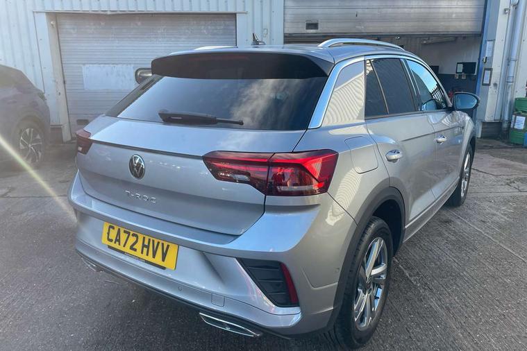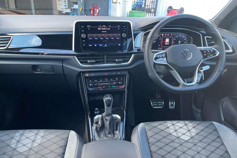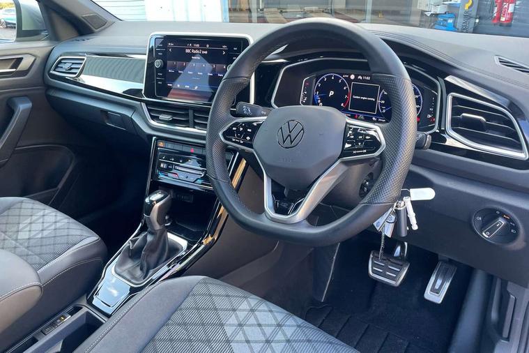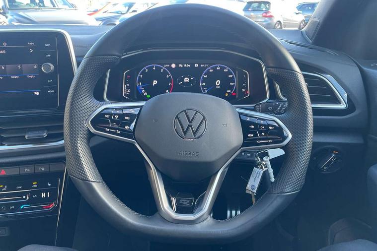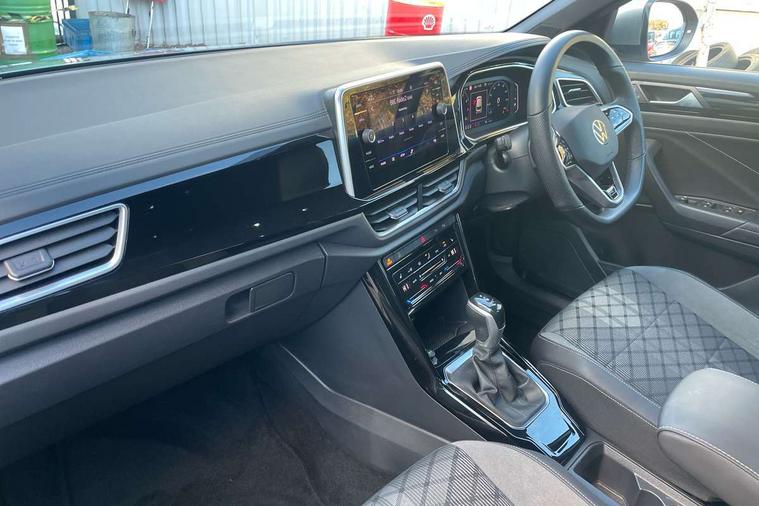 10.25" Digital cockpit pro, Bluetooth mobile phone interface, Driver alert system with fatigue detection, Driver tips and journey analysis, Emergency call service, Lane keeping system Lane Assist, Modified key software - reduce switch off time for key status change to Long no motion, Online services, Park assist including front and rear parking sensors, Service interval indicator, Tailgate/trunk lid release from outside, Think blue trainer driver tips and journey analysis, Warning sound and light for front seatbelts unfastened, Wireless app connect, Battery regeneration during braking, Start/stop function with battery regeneration, Diversity antenna for FM reception, Front and rear 6 speakers, Music playback - MP3, WMA and AAC files, Premium USB cable in choice of either Apple or Android smartphone compatibility, SD card slot, Simultaneous pairing of 2 compatible mobile devices, Title and cover art display, We Connect and We Connect Plus functionality, 3rd brake light, Auto dimming interior rear view mirror, Automatic hazard lights activation under emergency braking, Automatic headlight control with LED separate daytime running lights with coming/leaving home function, Extended roof spoiler, Exterior mirrors aspherical on driver side, convex on front passenger side, External USB type C socket and charging sockets, Front windscreen wiper with intermittent wipe and 4 position delay, Heated rear window, LED Plus headlamps, LED rear combination lamps, LED rear number plate lights, LED tail lamp rear comination lamps, Power windows with comfort operation and circuit breaker, R-Line design body coloured bumpers, Rain sensor, Rear exhaust tailpipe, Rear fog light on one side and reversing lights on both sides, Rear side wing doors, Rear wash/wipe with intermittent wipe setting, Remote electrically foldable door mirrors, puddle lights and reverse activated passenger's door mirror, 12V power socket in centre console, 3 rear head restraints, 3 seat bench in 2nd row, 4 load lashing points in luggage compartment, Air care climatronic air conditoning system with active combination filter and 2-zone temperature control, Black roof lining, Chrome plated radiator grille inserts, air vent surrounds and light switch surrounds, Door and side trim panel with leatherette insert, Drawer under drivers seat, Front + rear carpet mats, Front centre armrest, Front cupholders x 2, Front footwell illumination, Front reading light, Front scuff plates with R logo, Instrument lighting, white adjustable panel illumination, Interior ambient lighting and surround lighting, Interior light delay, Isofix child seat preparation, Leather gearshift handle, Load-through provision with cup holder when folded down ('Unsplit rear seat bench, split folding backrest, with centre armrest), Luggage compartment lighting, Single front passenger seat, Stainless steel pedals, Storage compartment in left and right luggage area, Storage compartment in rear doors, Storage compartments in driver and front passenger doors, Sunvisors with illuminated vanity mirrors, Variable boot floor, height adjustable and removable, Driver assistance pack without proactive passenger protection - T-Roc, 3 point height adj front seatbelts + pretensioners, 3 point seatbelts in outer rear with ECE label, ABS, Child locks on rear doors, Driver and front passenger airbag with front passenger airbag deactivation, Driver and front passenger safety-optimised head restraints, Drivers seatbelt reminder, Electronic parking brake, Electronic Stability Control (ESC) inc EDL (Electronic Differential Lock) and ASR (Traction Control), Front and rear passengers curtain airbag system including front side airbags, Front assist with city emergency braking and pedestrian monitoring, Front seat side impact airbags, Hill start assist, Predictive pedestrian protection, Rear disc brakes, Single tone horn, Tyre pressure loss indicator, Volkswagen roadside assistance, Alarm with interior protection, Anti-theft alarm system with interior monitoring, backup horn, and towing protection, Remote central locking with SAFELOCK, radio remote control with 2 remote control folding keys, Trims for alloy wheels,