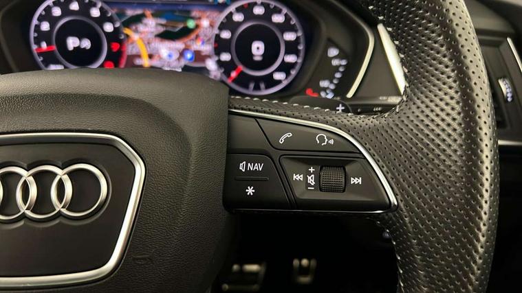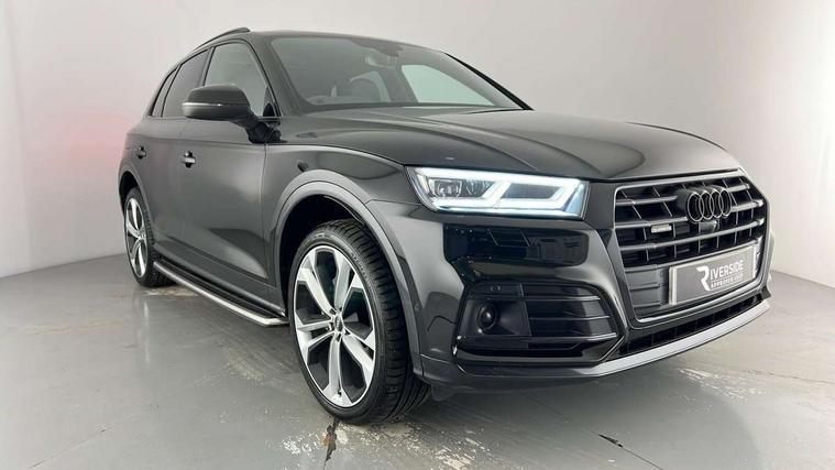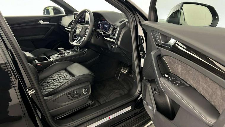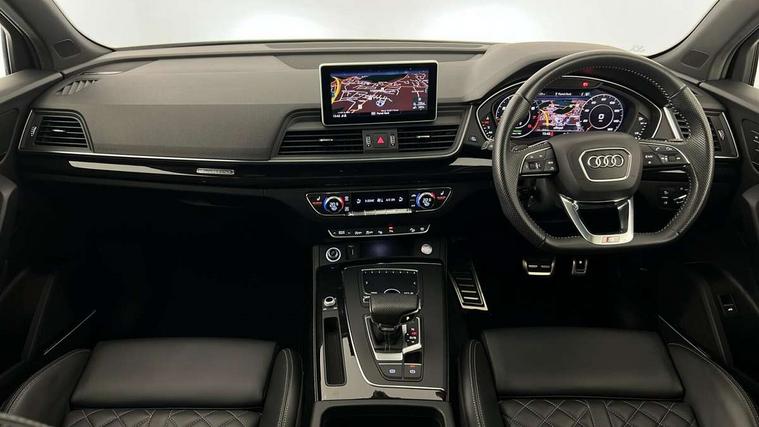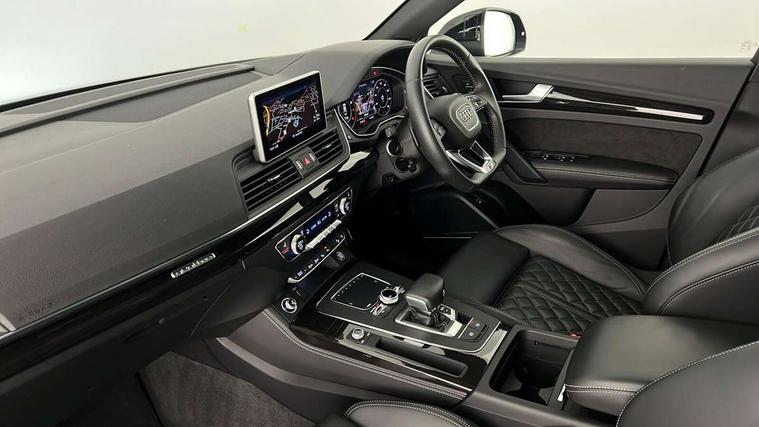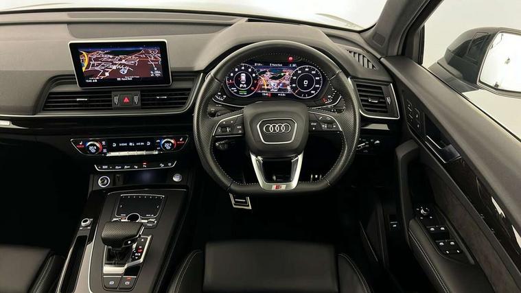 Advanced key with electric hands free boot opening system, Audi connect safety and service (e-call), Audi drive select, Audi phone box with wireless charging, Audi smartphone interface, Audi virtual cockpit - 12.3" high resolution LCD digital instrument cluster display, Automatic start-stop system with coasting functionality and efficiency programme, Electro - mechanical power assisted steering, Head up Display, MMI navigation plus with 8.3" colour MMI screen and MMI touch, Mobile telephone preparation - bluetooth interface, Power tailgate, Service interval indicator, Voice control system, Adaptive air suspension, Quattro on demand, 2x SD card slot, Bang + Olufsen sound system, CD player, DAB Digital radio, MMI radio plus with 7" colour MMI screen and MMI controller, Acoustic windscreen, Air inlets in matt titanium black with blades in matt aluminium silver, Audi Beam uses LEDs to project the Audi Sport logo, Audi matrix LED headlights with LED rear lights + dynamic front and rear indicators, Auto dimming rear view mirror, Automatic headlight levelling, Black roof rails, Body colour rear diffuser with matt aluminium silver surrounds, Body colour underbody protection, Chrome exhaust tailpipe, Contrast bumpers in Manhattan grey, Electric panoramic glass sunroof, Electrically folding/heated/auto dimming door mirrors with memory function, Front and rear electric windows, High beam assistant, Light and rain sensor for auto activation of lights and windscreen wipers, Loading sill protector in stainless steel, Privacy glass with front acoustic glazing, Rear wiper, Running boards, Titanium black door mirror housings, 2 x USB charging port with aux input socket, 3 rear headrests, 3 spoke flat bottom high multi-function leather steering wheel, 40:20:40 split folding rear seat with rear centre armrest, Black cloth headlining, Contrast stitching on seats, steering wheel and gear lever gaiter, Deluxe 3 zone electronic climate control, Electric steering wheel adjustment, Electrically adjustable front seats with driver memory, Fine nappa leather upholstery + front sport seats, Front centre armrest, Front/rear floor mats, Heated front and outer rear seats, Height adjustable front head restraints, ISOFIX child seat mounting and top tether, Luggage compartment carpet, Massage function for front seats, Perforated leather gearknob, Rear seat bench plus, Removable luggage compartment floor, Stainless steel pedals, Sunvisors with vanity mirrors, Tool kit, Trunk roller cover, Extended interior upholstery pack - Q5, Extended LED Interior Lighting Pack - Q5, Non Smokers pack, Parking Assistance Pack - Q5, Titanium black styling pack - Q5, Tour pack - Q5, 3 point seatbelts on all seats, 6 airbags - Driver, front passenger, curtain and side airbags, Electromechanical parking brake, Electronic stabilisation control including ABS, ASR and EDL, Front passenger airbag deactivation, Hill descent control, Hill hold assist, Multi collision brake assist, Pop-up bonnet for pedestrian protection, Pre sense city, Seat belt force limiter, Seatbelt monitoring, Tyre pressure warning, Warning triangle and first aid kit, Anti theft alarm, Anti-theft wheel bolts, Keyless Go access/ignition system, Remote central locking, 21" 5 twin-spoke module design Audi sport alloy wheels with matt grey inlays, Tyre repair kit,