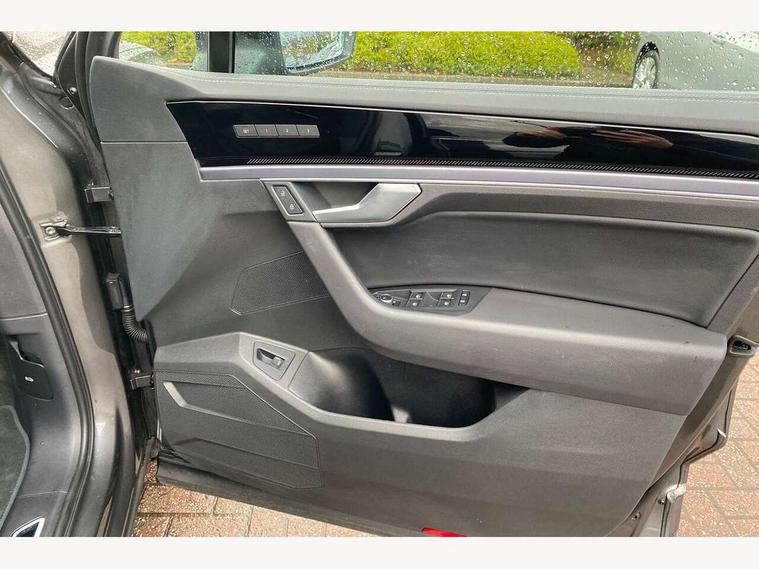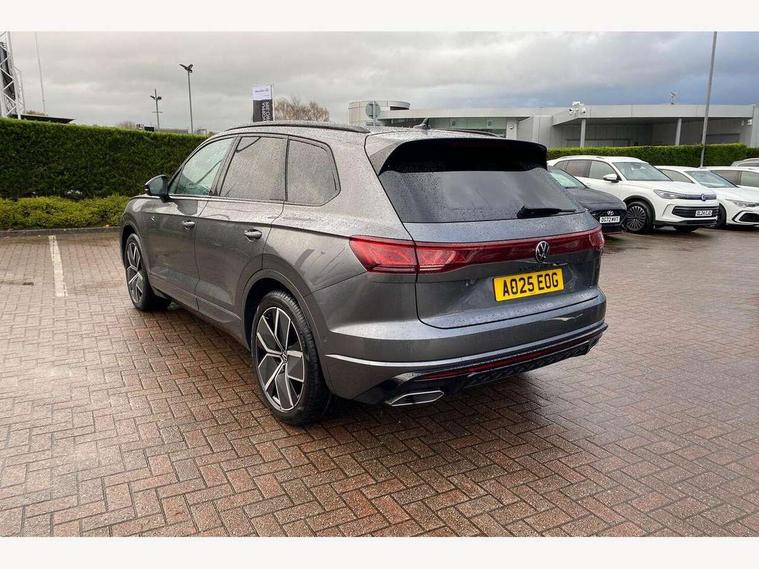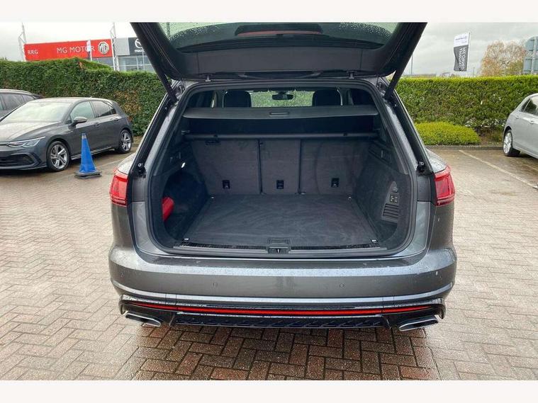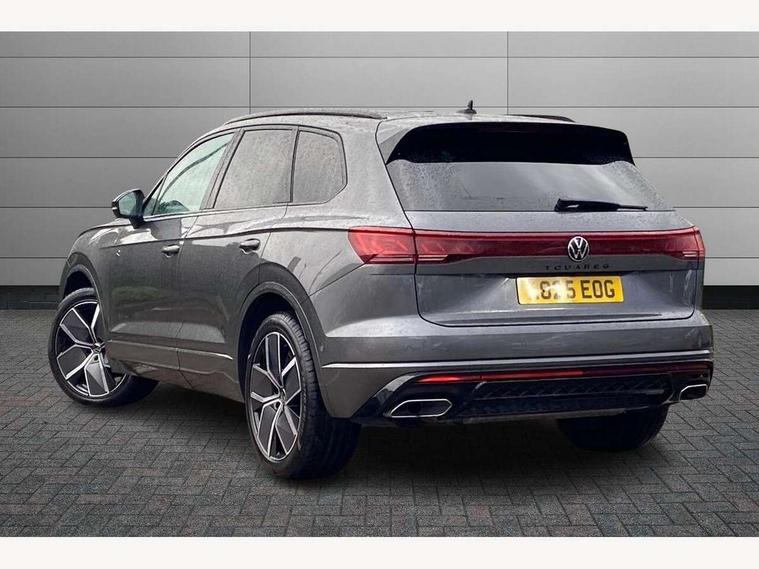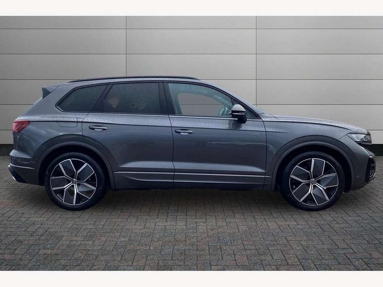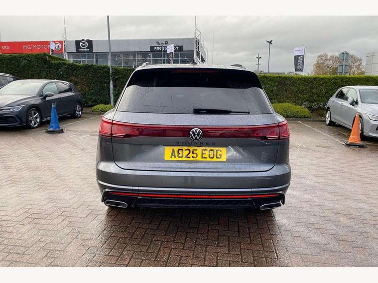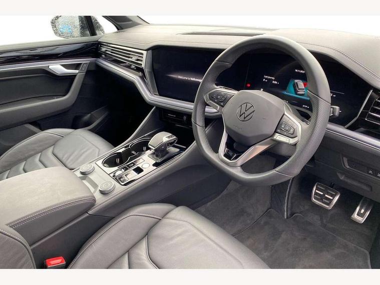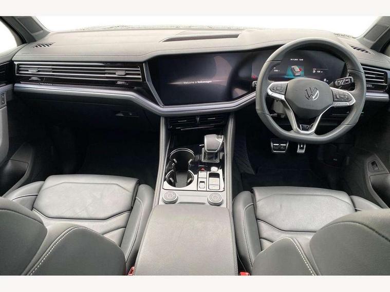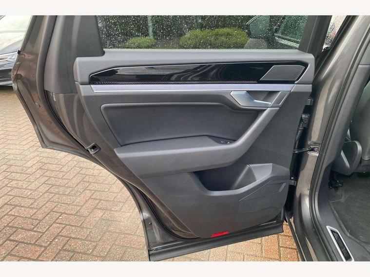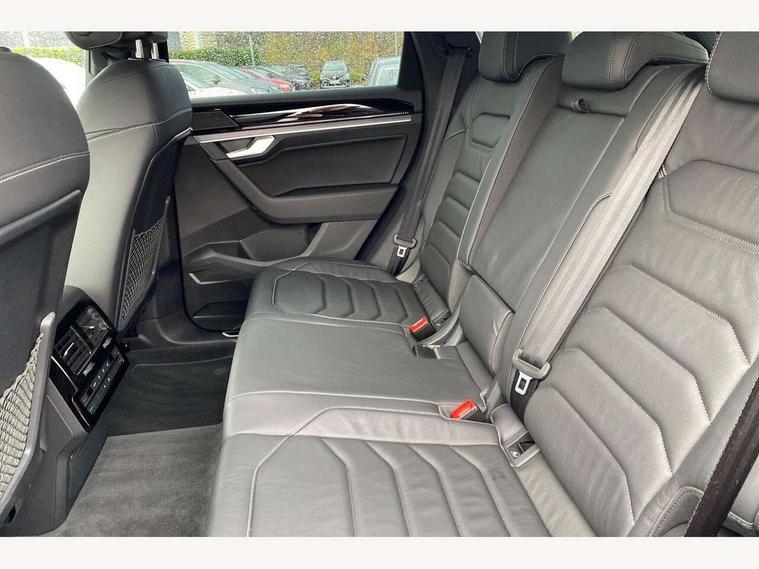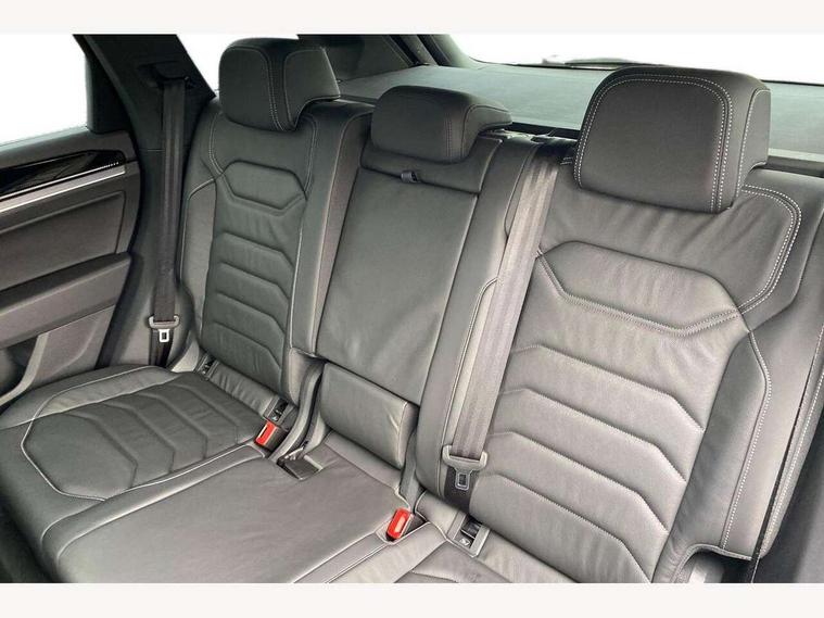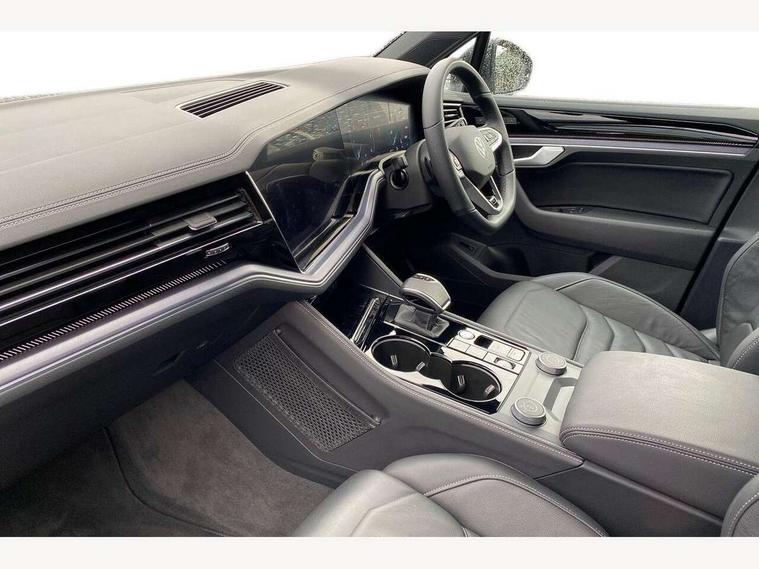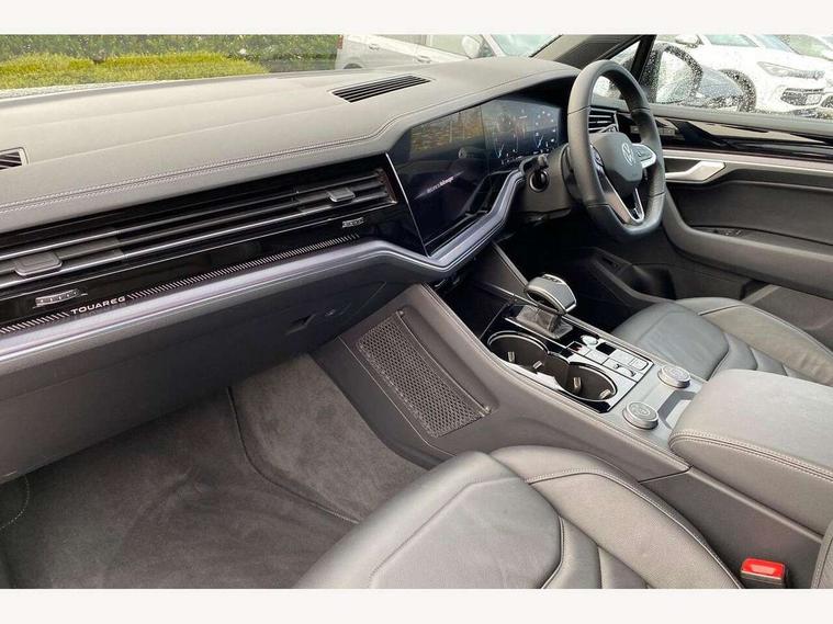 15" Screen Top infotainment system Premium (MIB3), Adaptive cruise control, Advanced driver attention and drowsiness monitor, Driver profile selection, Dynamic road sign display, E-Sim card for online connectivity, eCall emergency system, Innovision cockpit, Intelligent park assist, Mobile phone interface with inductive charging, Multi-colour Active Info display, Park Assist - Sensor controlled steering aid to assist parallel or bay parking, PAS, Warning signal and warning light for front and rear seatbelts not fastened, Wireless app connect, Adaptive chassis control, DAB Digital radio, Diversity antenna for AM/ FM reception, We Connect and We Connect Plus functionality, Automatic coming/leaving home lighting function, Automatic headlights, Black door mirrors, Black style comfort bumpers, Dynamic headlight range control with dynamic cornering light, Electric front tilt/slide panoramic sunroof and fixed rear sunroof, Electrically power adjustable, heated, folding, auto dimming, front passenger exterior door mirror lowering function, External USB type C socket and charging sockets, Gloss black roof rails, HD LED Matrix beam plus digital headlight projection with variable light distribution, Headlight washers, Highway light, LED 3rd brake light, LED daytime running lights, LED rear combination lamp with variable lighting functions and special styling, Poor weather light, Rain sensor, Rear exhaust tailpipe, Rear fog light with back up light on both sides, Rear light bar and illuminated logo, Rear side wing doors, Rear wiper, Stainless steel door sill protection, 12V socket in centre console, 3 rear headrests, 3 seat bench in 2nd row, 4 zone climate control, Airbag label on sun visor and B-pillar, Brushed stainless steel pedals, Double sun visors with illuminated vanity mirrors, Front + rear carpet mats, Front centre armrest, Leather wrapped multifunction sports steering wheel, heated, with touch control and shift paddles, Mechanical rear seat release, Power adjustable lumbar support in front, Power seats in front, right side with memory features and seat cushion depth adjustment, Rear seat backrest and split folding with center armrest, Single front passenger seat, Memory pack plus - Touareg, 3 point seatbelts, outer rear with ECE lable, ABS, Child locks on rear doors, Curtain airbags, Driver and front passenger safety-optimised head restraints, Driver/Front Passenger airbags, Extended pedestrian protection measures, Front assist, Front seat side impact airbags, Generative braking with start and stop system, Height adjustable 3 point front seatbelts with pre tensioners, Passenger airbag deactivate switch, Three 3 point rear seatbelts, Two tone horn, Tyre pressure loss indicator, Warning triangle and first aid kit, Alarm system with interior protection, Easy open and close sensor controlled luggage compartment opening and closing with remote unlocking, Keyless Access Keyless locking and starting system with SAFELOCK, Aluminium decorative inserts, Black decorative trims, Gloss black decorative inserts in centre console, Tool kit,