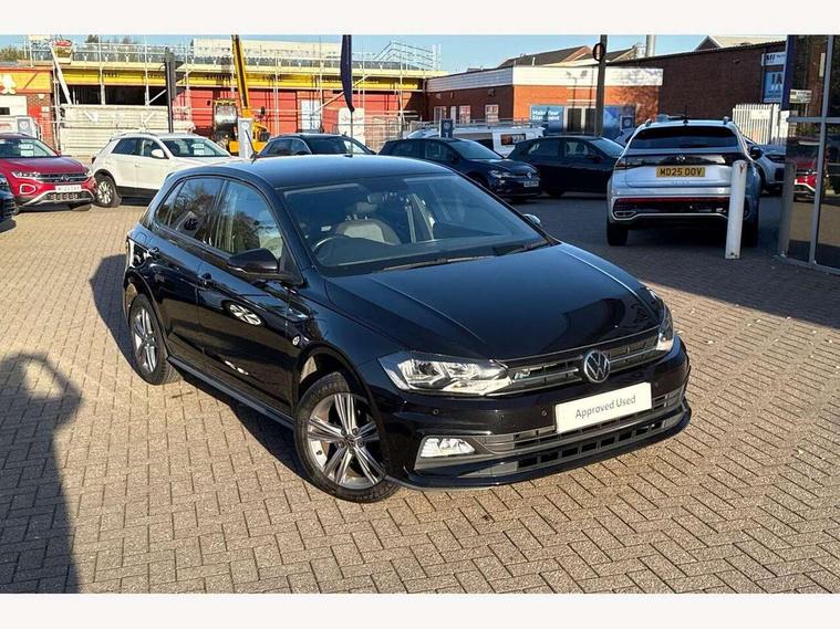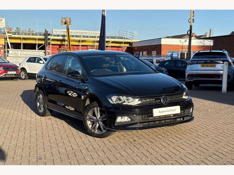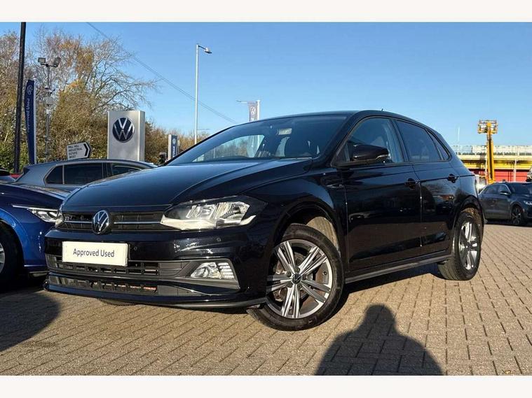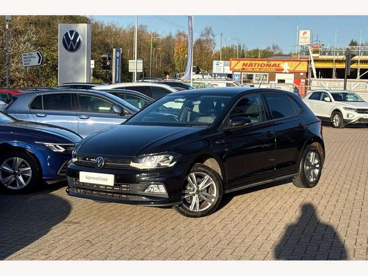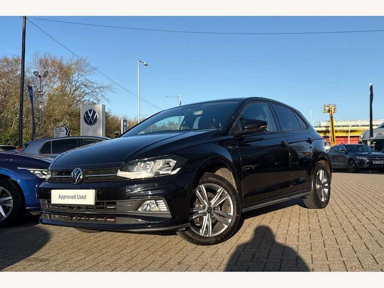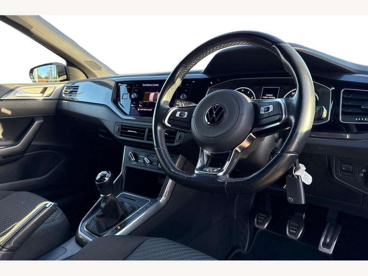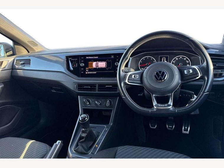 Digital clock, Driver alert system, Emergency call service, Lights on warning, Multifunction computer plus, Power assisted speed sensitive steering, Speedo and rev counter, electronic odometer, trip, service interval display and fuel gauge, Start/stop system, Volkswagen connect, Warning buzzer and light for front seatbelts unfastened, Wireless app connect, Battery regeneration during braking, Galvanished body, Diversity antenna for FM reception, Front and rear 6 speakers, Black grille with chrome surround, Body colour door handles, Body coloured side sills, Chrome trimmed strip on lower bumper, Electric front windows, Electrically adjustable and heated door mirrors with reverse activated kerb view adjustment on passenger's side, Front windscreen washers and wipers with 4 speed intermittent delay, Heated rear window with auto timer, High level 3rd brake light, LED darkened rear light clusters, LED daytime running lights, LED rear number plate lights, Left and right chrome effect trapezoid fascia exhaust tailpipe surrounds, Rear diffuser, Rear electric windows, Rear windscreen washer and wiper with interval delay, reverse activated, Unique R Line badging, 2 bag hooks in luggage compartment, 2 front cupholders and 12 V socket with cover, 3 rear head restraints, 60/40 split folding rear seat, Ambient lighting in front foorwell, front/rear door and dashboard light strips, Carbon flag cloth upholstery, Centre console storage with open storage compartment, Chrome-plated electric mirror adjustment switch surround, Chrome-plated electric window button surround, Driver and front passenger seat height adjustment, Driver and front passenger sunvisors with illuminated vanity mirrors, Dust/pollen filter, Folding rear seat backrest, Front + rear carpet mats, Front head restraints, Front seat backrest storage pockets, Front sport seats with lumbar adjustment and R line logo on seat backrest, Gear lever gaiter in black trim surround, Glovebox, Handbrake grip button in chrome effect, Height/reach adjustable steering column, Instrument lighting, adjustable panel illumination, Interior light with delay, Isofix Preparation 2 Rear child seats, Leather gear knob and handbrake grip, LED interior lighting - 2 reading lights front and rear with interior delay and dimming function, Luggage compartment cover, removable, Luggage compartment lighting, Luggage compartment with variable load floor, Stainless steel pedals, Storage compartment in front doors, Storage compartment in rear doors, Storage compartment under front seats, Three spoke leather trimmed multifunction steering wheel with aluminium inserts and R Line Logo, Titanium black roof lining and sun visors, Unique R Line door sill protectors, Light and sight pack - Polo, R Line styling pack - Polo, 3 point height adj front seatbelts + pretensioners, 3x3 point rear seatbelts, ABS, Automatic post collision braking, Driver/front passenger airbag, Drivers and front passengers safety optimised head restraints, ESP with EDL + ASR, Front and rear passenger curtain airbags, Front passenger airbag deactivation, Front seat side impact airbags, Front/rear disc brakes, HBA (Hydraulic Brake Assist), Hill hold control, Single tone horn, Tyre pressure monitoring system, Alarm with interior protection and deactivation via infotainment system, Electronic engine immobiliser, Remote central locking with 2 remote folding keys, Chrome plated air vent surround, Chrome plated instrument surrounds, Shadow steel decorative inserts,