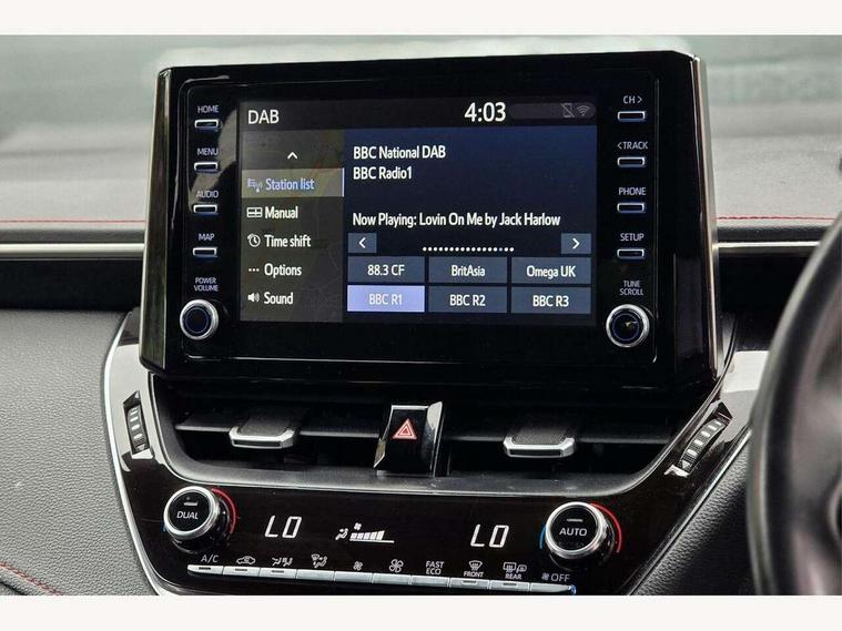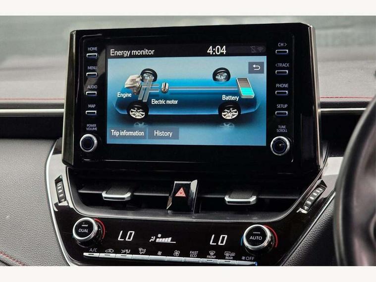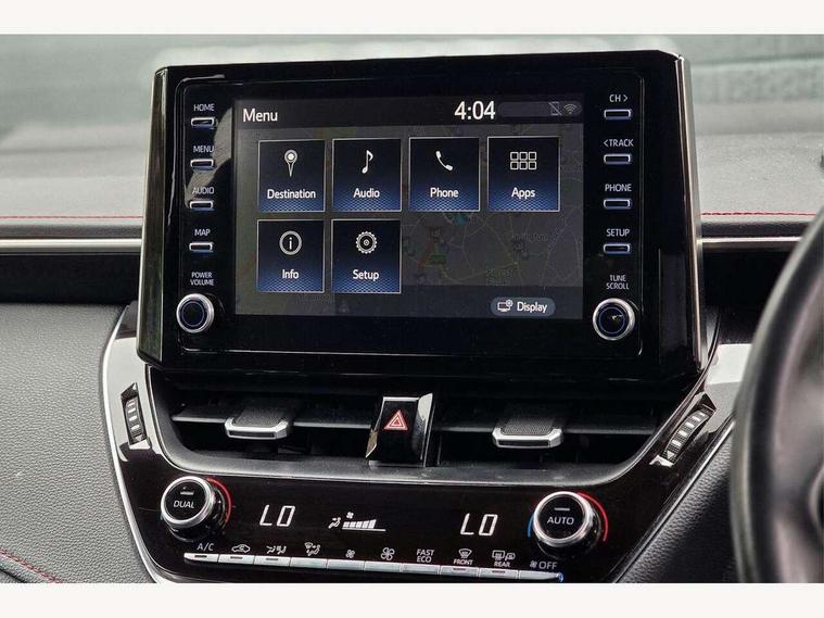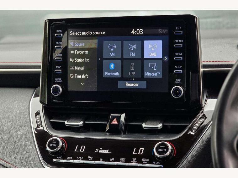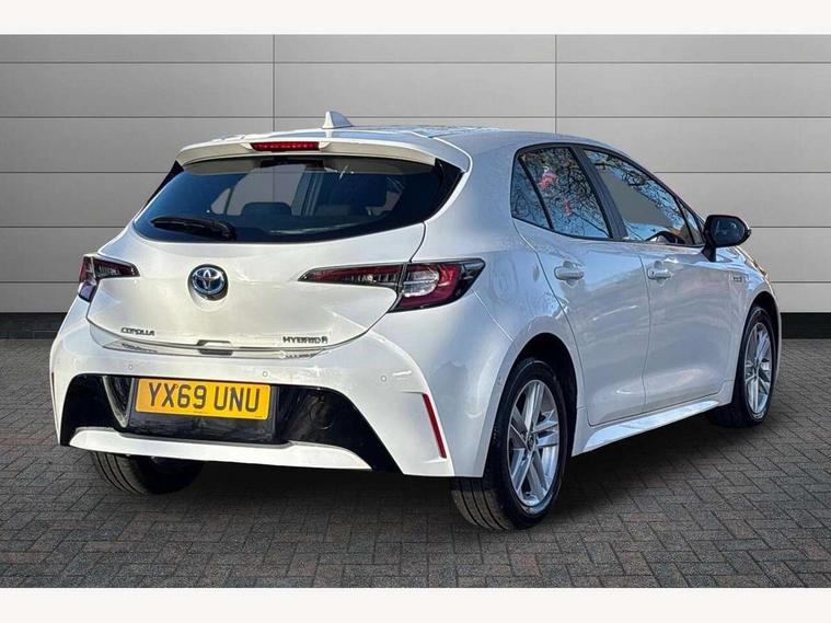 Adaptive cruise control, Bluetooth telephone connectivity, E-call, Electrically assisted power steering, Front parking sensor, Intelligent park assist, Push button start, Rear parking sensor, Reversing camera, Voice activation, Vehicle Stability Control (VSC), 2 ring combimeters with 7" colour TFT screen, 6 speakers, 8" multimedia and back monitor, AM/FM radio, DAB Digital radio, Toyota touch 2 with go navigation system, USB/AUX connectivity, Anti-jam protection on power windows, Auto high beam, Auto up and down function on all power windows, Automatic headlights, Body coloured bumpers, LED daytime running lights, LED Headlights, Power front windows, Power heated mirrors, Power rear windows, Rear window wiper, Shark fin antenna, 3 rear headrests, Clean air filter, Dual zone automatic air conditioning, Fabric upholstery, Front head restraints, Heated seats, ISOFIX seat fixing (2 fixings on rear outer seats), Leather steering wheel and gear knob, Pollen filter, Power lumbar support, Tilt/telescopic steering column, Whiplash Injury Lessening (WIL) feature (active headrest) for seats, Parking pack - Corolla, Toyota safety sense 2 - Corolla, 3x3 point rear seatbelts, Anti lock braking system + Electronic brake force distribution, Brake assist function, Electronic parking brake, Front passenger airbag on/off switch, Front seatbelt reminder, HAC-Hill-start Assist Control, Rear seat belt reminder, Seatbelt pretensioners and force limiters, Supplemental restraint system (SRS) airbags - 7 airbags including driver, front passenger, curtain, side and knee airbags, Traction control, Tyre pressure warning system, Alarm/immobiliser,