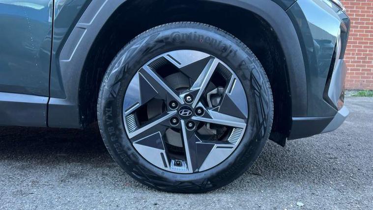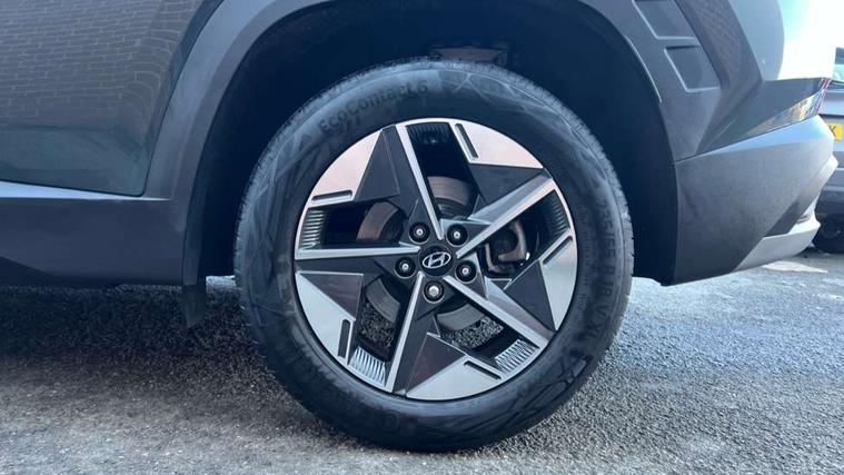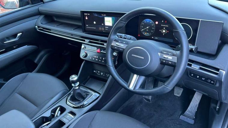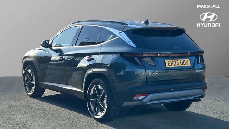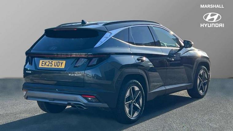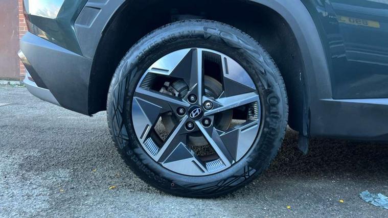 12.3" LCD display with driver's supervision instrument cluster, 12.3" widescreen navigation with bluelink and mapcare, Bluetooth system, Cruise control, Digital clock, Drive mode selector, Driver attention warning, E-call, Emergency stop signalling system, Forward Collision Avoidance Assist (FCA) - Car, Pedestrian and Cycle, Forward Collision Avoidance Assist Junction Turning (FCAJX), Front and rear parking sensors, Hyundai road side assistance, Intelligent speed limit assist, Lane follow assist, Lane keep assist, Over the air updates(OTA), PAS, Rear camera and guidance parking system, Rev counter, Smart power tailgate, Tailgate open warning light, Trip computer, Trip odometer, Voice recognition, Water temperature gauge, Windscreen washer fluid sensor and warning indicator, Wireless Apple CarPlay/Android Auto, Wireless phone charging pad, 2 front and 2 rear USB-C ports, DAB Digital radio, Krell premium audio system with 8 speakers and subwoofer, Steering wheel mounted audio/phone controls, Adjustable intermittent front windscreen wipers with aero wiper blade, Auto dimming rear view mirror, Automatic defog system, Automatic headlights with dusk sensor, Automatic windscreen wipers with rain sensor, Black wheel arches, Body colour bumpers, Body colour door mirrors with integrated indicators, Body colour exterior door handles, Electrically adjustable, heated and power folding door mirrors, Follow me home headlights, Front and rear electric windows with anti-trap mechanism and one touch control, Front fog lights, LED 3rd brake light, LED daytime running lights, LED Headlights, LED rear lights, Positioning Lights - LED, Privacy glass - Rear windows and tailgate, Rear side wing doors, Rear wash/wipe with intermittent wipe setting, Roof rails, Soft touch rear door paneling, Tinted glass with windscreen shade band, Trailer stability assist, 12V power outlets in front console and luggage compartment, 3 seat bench in 2nd row, 40/20/40 split folding rear seat, 64 colours interior ambient lighting, Adjustable head restraints (Up and down), Cupholders in rear armrest, Door courtesy lights, Driver and passenger sunvisors with illuminated LED vanity mirrors, Driver's seat electric adjustments, Dual zone climate control, Front and rear door pockets, Front armrest with storage box, Front centre console and door bottle holders, Front passenger's seat electric adjustments, Heated front seats, Heated rear seats, Heated steering wheel, Height/reach adjustable steering column, Illuminated/air conditioned glove compartment, ISOFIX child seat anchorage points attached on outer rear seats, Leather wrapped steering wheel and gear knob, LED interior lighting, Luggage compartment lighting, Luggage cover, Luggage hooks, Luggage net, Map and reading lights, Premium cloth/leather upholstery, Rear seat remote folding function, Rear side window sunblind, Reclining rear seats, Retractable load cover, Single front passenger seat, Sunglasses holder, Touch sensitive climate controls with temperature dials, TUCSON branded metal door scuff plate, Underfloor boot compartment, Trailer wiring package - Tucson, 3x3 point rear seatbelts, Active bonnet, Airbag - Front, front side, curtain and centre front airbags, Anti-lock brake system (ABS), Brake assist function, Childproof rear door locks, Curtain airbag roll over sensor, Downhill brake control, Electric parking brake, Electronic stability control, Front and rear seatbelt reminder, Front passenger airbag deactivation switch, Front seatbelt pretensioners, Hill start assist control (HAC), Multi-Collision braking, Outer rear seatbelt height adjustment, Seatbelt height adjustment for front seats, Traction control, Tyre pressure monitoring system with individual tyre pressure display - TPMS, Vehicle stability management, Deadlocks, Immobiliser, Locking wheel nuts, Remote control central locking, Smart key with keyless entry and engine start/stop button, Speed sensitive auto door locking, Thatcham category 1 alarm, 18" Alloy wheels, Tyre repair kit,