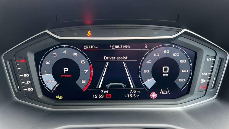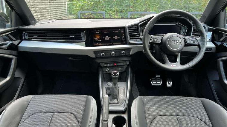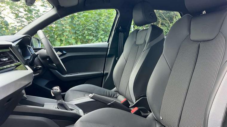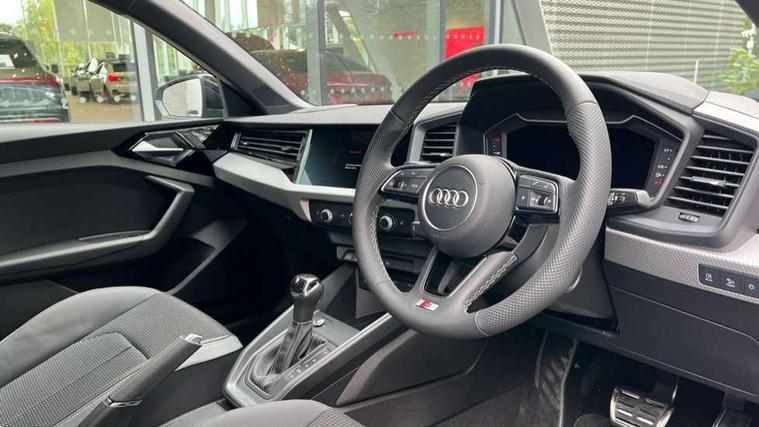 10.25" Digital instrument cluster display classis style instrument dials + speed, odometer, time, outside temperature, telephone menu + fuel level warning, Advanced driver attention and drowsiness monitor, Audi connect emergency call and service, Audi drive select, Audi remote connect and control, Audi smartphone interface, Bluetooth interface, Camera based traffic sign recognition, Cruise control, Driver's information system, Electromechanical power steering, Lane departure warning system, Rear parking sensor, Service interval indicator, Speed limiter, Start stop system with recuperation, Voice control system, Washer fluid level indicator, Sports suspension, 2 x USB type C connection points, 6 loudspeakers, DAB Digital radio, MMI radio plus with 10.1" colour MMI display screen and MMI touch, Auto dimming rear view mirror, Body coloured door mirrors, Door sill trims with aluminium inlays and S line logo in front, Electric front and rear windows, Electrically adjustable, heated, folding door mirrors with integrated LED side indicator, Front side air inlets in grained matt black and C frame in anthracite black, Headlight cleaning system, Heat insulating glass windscreen and side windows, Heated rear windscreen, High level LED brake light, LED daytime running lights, LED headlights with range control LED rear lights + dynamic rear indicators, Light and rain sensors, Privacy glass, Radiator grille and rear diffuser in matt anthracite black, Radiator protective grille frame in matt aluminium silver, Rear fog lights, Rear side wing doors, Rear wiper, S line badges on front wings, Side front spoiler lips in grained matt black, 12V socket in centre console with two cup holders, 3 rear seats with headrests, 3 seat bench in 2nd row, 3 spoke leather multi-function plus steering wheel features S badging and grips in perforated leather with contrast stitching, 40:60 Split folding rear seat or fully collapsed, Black cloth headlining, Front and rear velour black floor mats with contrast stitching in fine silver, Front head restraints, Front passenger seat, Height and reach adjustable steering wheel, Interior lighting includes roof module, front and rear reading lights and right luggage compartment lighting, ISOFIX child seat mounting for front passenger and outer rear seats including top tether attachment point of outer rear seats, Leather gear knob with aluminium trim, Leather handbrake grip, Manual air conditioning, Manual height adjustable for driver and front passenger seat, Manually adjustable lumbar support in front seats, Stainless steel pedals, Ambient lighting package - A1, Luggage compartment pack - A1, S line exterior styling pack - A1 Sportback, 3x3 point rear seatbelts, Audi pre-sense front with pedestrain and cyclist recognition, Brake assist function, Driver and front passenger airbag with front side and head airbags, Electronic Stability Control including ABS, EBD, ASR and EDL, Front passenger airbag deactivation switch, Hill hold assist, Manual rear child locks, Seatbelt height adjustment for front seats, Seatbelt monitoring, Tyre pressure loss indicator, Warning triangle and first aid kit, Anti theft alarm, Anti theft wheel bolts, Immobiliser, Remote control key with safelock, Aluminium trim for control switches, air vents and digital instrument cluster, Black dashboard, Silver grey inlays polygon structure in diamond paint finish, Structured grey accent surfaces insert of air vents, interior door handle recesses and centre console in quartz paint finish,