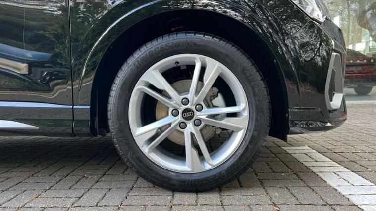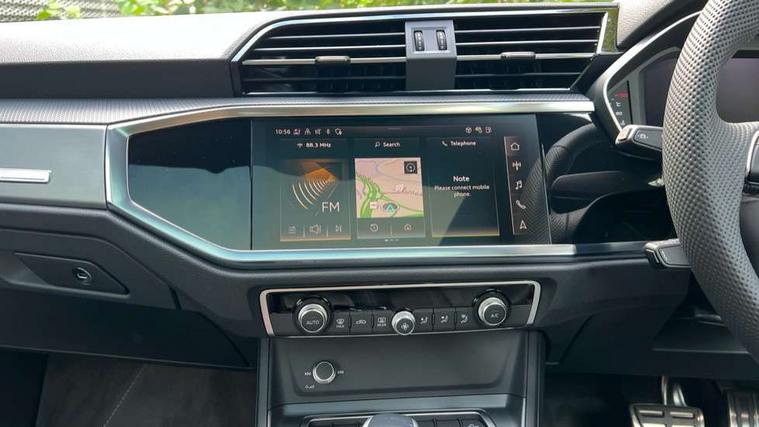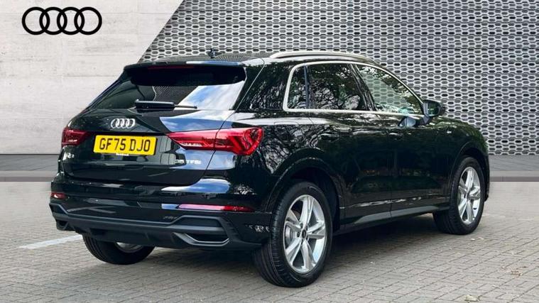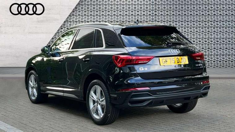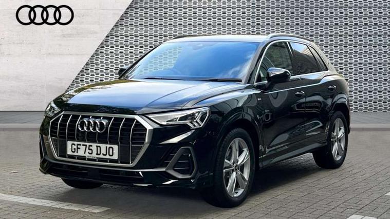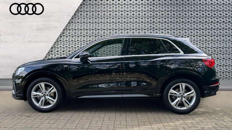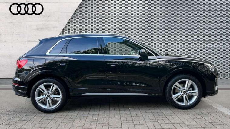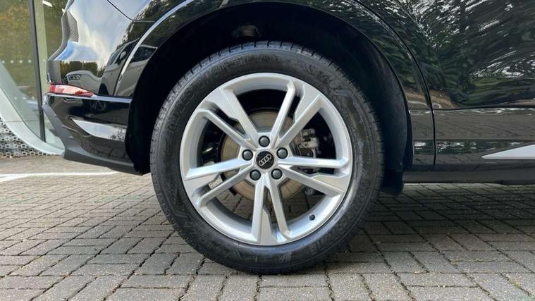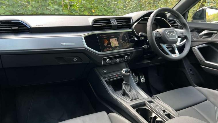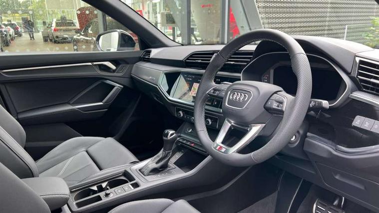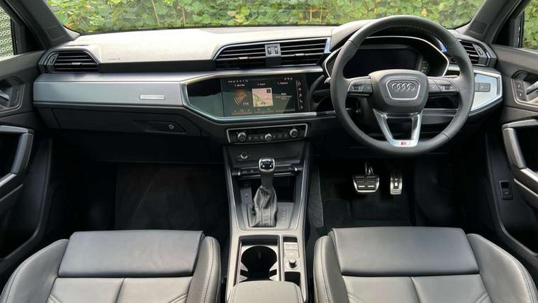 Amazon alexa Integration, Audi connect safety and service, Audi drive select, Audi lane departure warning, Audi Virtual Cockpit - 10.25" display, Bluetooth interface, Camera based traffic sign recognition, Distraction and Fatigue warning, Legal emergency call, MMI Navigation Plus with high resolution 10.1 inch touchscreen colour display, Power operated tailgate, Progressive steering, Service interval indicator, Smartphone interface includes wireless Apple carplay/Android Auto, Start stop system with recuperation, Voice control system with natural language interaction, Sports suspension, 2 USB-C ports with charge and data functions, 6 passive loudspeakers, DAB digital radio module, Acoustic windscreen, Aluminium roof rails, Aluminium window trim, Anthracite black radiator grille, Auto dimming door mirrors, Auto dimming frameless rear view mirror, Body colour front spoiler blade, Electrically folding, adjustable and heated door mirrors with integrated LED side indicators and kerb view function for passenger side, Front and rear electric windows, Front fog lights, Front side air inlets in matt platinum grey, Grille vertical bars in aluminium silver/Matt, High gloss black finish B and C pillars, LED Dynamic rear indicators, LED headlights with LED daytime running lights, LED rear lights, LED third brake light, Privacy glass dark tinted rear and rear-side windows (from B-pillar backwards), Rain and light sensors, Rear diffuser grille in grained matt black, Rear diffuser strip in matt anthracite black, Rear side wing doors, Rear wiper, S line badges on front wings, S Line front and rear bumpers and side skirts, Side skirt insert in matt Platinium grey, Variable front intermittent wipers, 12V socket in rear centre console, 3 seat bench in 2nd row, 3 spoke leather multifunction steering wheel features S badging and grips in perforated leather with contrast stitching, 40:20:40 folding with manual adjustment for 60:40 forwards/backwards position and backrest angle, Adjustable rear seat bench/backrest with centre armrest and cupholder, Black carpet mats, Black cloth headlining, Dual zone electronic climate control, Electric lumbar support, Front and rear black floor mats with contrast stitching in rock grey, Front and rear headrests, Front centre armrest, Height and reach adjustable steering wheel, Horizontal trim strip in matt platinum grey, Illuminated door sill trims with S logo, ISOFIX child seat mounting for front passenger with airbag deactivation and outer rear seat including top tether attachment point for outer rear seats, Luggage compartment sill protection in stainless steel, Manual front seats with height adjustment, Perforated leather gearknob, Single front passenger seat, Stainless steel pedals, Twin leather upholstery with front sport seats + S embossing, Non smoking pack - Q3, 3x3 point rear seatbelts, 6 airbags - Driver, front passenger, curtain and side windows, Audi pre-sense front with pedestrain and cyclist recognition, Electrically operated child locks on rear doors, Electromechanical parking brake, Electronic stabilisation control including ABS, ASR and EDL, Front seatbelt reminder, Hill descent control, Hill hold assist, Pre sense basic, Seatbelt monitoring, Tyre pressure warning, Warning triangle and first aid kit, Anti theft wheel bolts, Immobiliser, Remote central locking, Thatcham approved category 1 anti theft alarm, Aluminium look interior elements, Dark matt brushed aluminium inlay, Detail dashboard around MMI touch colour display in glass look, black with surround in aluminium look, Leatherette door armrest,