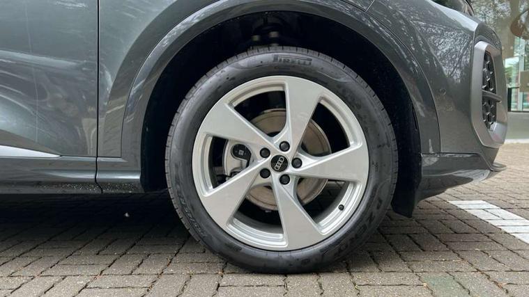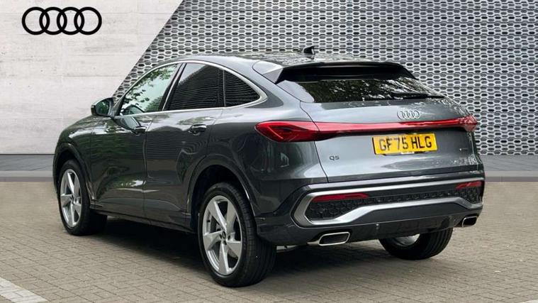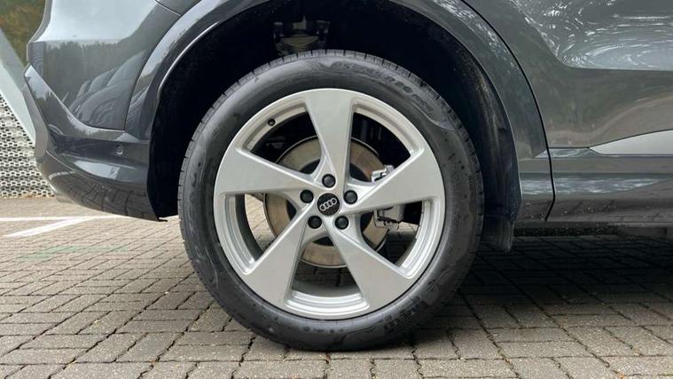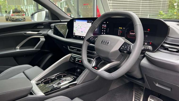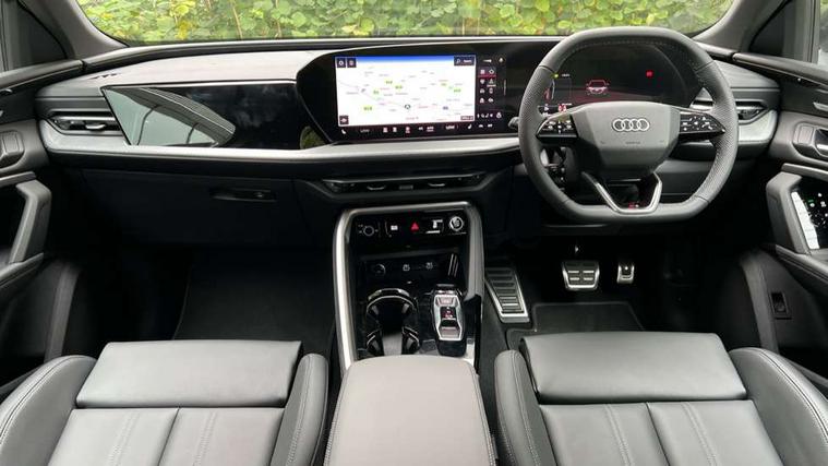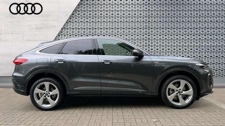 Adaptive cruise control, Advanced driver attention alert, Audi application store, Audi connect emergency call and service, Audi drive select, Audi smartphone interface, Audi virtual cockpit plus with 11.9" OLED colour display, Camera based traffic sign recognition, Fatigue monitor, Front cross traffic intersection assist, Lane departure warning system, MMI navigation plus with high resolution 14.5" OLED touchscreen colour display, Park assist plus, Parking system plus with 360 display, PAS, Reversing camera, Swerve assist and turn assist, Traffic sign based speed limiter, 2 USB-C ports in both the front and rear, Audi sound system impressive sound with 8 loudspeakers including centre speaker and subwoofer, 6-channel amplifier with a total output of 180 watts, DAB Digital radio, Smartphone compartment with wireless charging, Auto dimming rear view mirror, Body coloured door mirrors, Coming/leaving home lighting function, Electrically adjustable heated and folding + automatically dimming exterior mirrors, Front and rear electric windows, Front door sill trims with aluminium inlays, illuminated with 'S' logo, Headlight cleaning system, Heated rear window, High beam assist, High gloss window surrounds, Inlay and front air inlets in matt anthracite chrome, LED headlights plus incl. digital DRL, dynamic coming and leaving home function with turning/all weather/motorway/manouevring and intersection lights, LED rear lights pro incl. dynamic rear indicators and illuminated light strip with animated coming and leaving home function, Logo projection light in exterior mirrors, Privacy glass, Projection light for rear window, Radiator grille in phantom black, Rear and side windows with heat insulating glass, Rear honeycombe grille in matt black with inlay in matt anthracite chrome, Rear side wing doors, Rear wash/wipe, S Line badge on the front wings, S line bumpers in contrasting Volcano grey metallic paint finish, Towbar preparation, Windscreen with acoustic glazing, 3 rear head restraints, 3 seat bench in 2nd row, 3 spoke leather steering wheel with multi-function buttons with touch control, flattened on top and bottom, with S badging and contrast stitching, 40:20:40 split folding rear seat bench with centre armrest and cup holders, Comfort centre armrest, Deluxe 3 zone electronic climate control, Front and rear floor mats, Front seats with manual adjustment for position and 4-way electric lumbar support, Front sport seats with integrated head reastrains, Headlining in black cloth, Heated front seats, i-Size child seat mounting on the front passenger side and outer rear seats, i-Size and top tether on the outer rear seats, Interior trim in aluminium look, Luggage compartment lid, electrically opening and closing, Manual steering column adjustment, S embossed logo on front sport seats, Single front passenger seat, Softwrap in leatherette, Stainless steel pedals and footrest, Steering wheel grips in perforated leather and shift paddles, Ambient lighting package plus - Q5, Storage and luggage compartment pack - Q5, 3x3 point rear seatbelts, ABS, Acoustic vehicle alerting system, Driver and front passenger airbag with passenger airbag deactivation, Electric child safety locks, First aid kit with warning triangle and high visibility vests, Front emergency brake assist, Front side airbags with head airbag system and front interaction airbag, Hill hold assist, Rear seat occupant reminder, Tyre pressure loss indicator, Anti theft alarm, Anti-theft wheel bolts, Remote control key with SAFELOCK and keyless go, Accent surfaces and control buttons in gloss black, Anthracite matt brushed aluminium inlays with linear embossing, Black dashboard with contrast stitching, Upper and lower interior elements in artificial leather, Tyre repair kit,
