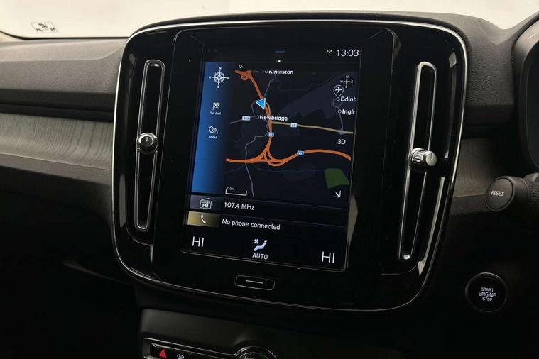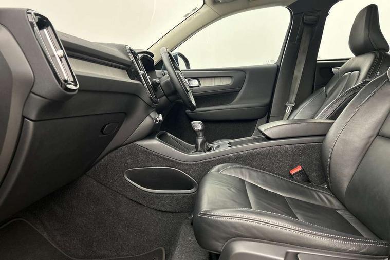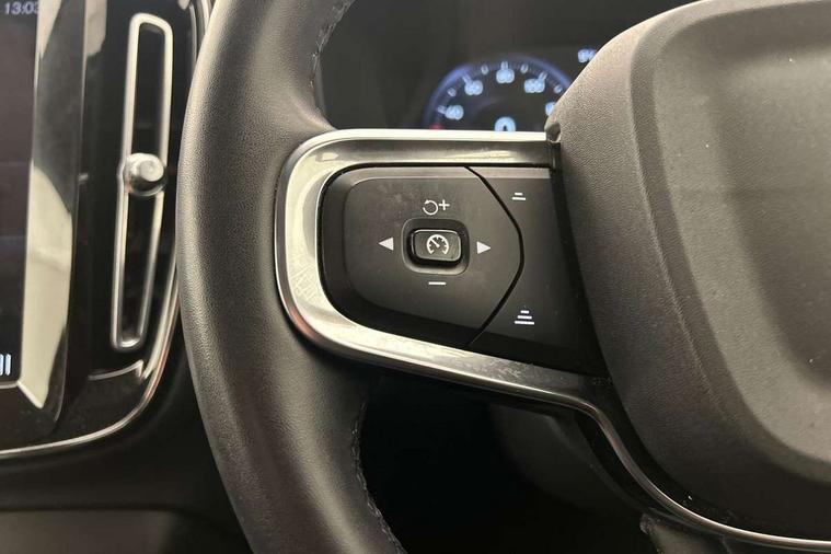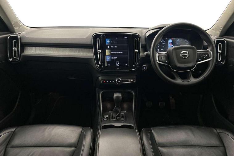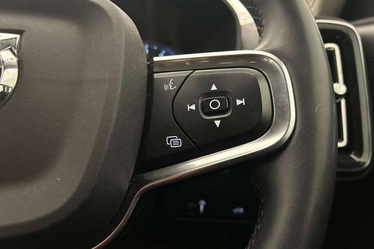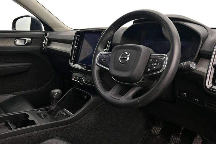 12.3" Active TFT crystal driver's instrument display, 9" centre console portrait touch screen, Adjustable steering wheel force, Bluetooth hands free telephone kit, Drive mode selector, E-call, Lane keep assist with driver alert control, Oncoming Lane Mitigation, Power operated tailgate, Sensus navigation with European mapping and traffic information, Speed limiter, Speed sensitive steering, Voice activated control for key functions, Volvo on call, Dynamic chassis, DAB Digital radio, Steering wheel mounted remote controls, Adaptive brake lights with high level LED brake lights, Auto dimming interior mirror, Automatic headlamp levelling, Chrome window surround, Colour coordinated auto folding and heated power door mirrors, Front aluminium tread plates, Front and rear electric windows, High gloss black front grille with chrome inserts, High gloss black sensus surround deco, High Gloss silver front and rear skid plate, Home safe and approach lighting, Integrated roof rails in silver, LED Headlights + Active high beam incorporating daytime running lights, Rain sensor with automatic windscreen wiper activation, Rear side wing doors, Rear wiper, Roof antenna, Roof spoiler, Visible VIN plate, 12V socket in front tunnel console and luggage compartment, 2 zone electronic climate control and rear air vent, 3 seat bench in 2nd row, 3 Spoke tailored steering wheel with chrome trim, 60/40 versatile split folding rear seat, A-pillar parking ticket holder, Bright metal luggage threshold, Centre console cupholders and storage, Floor mats, Front footwell illumination, Front headrests, Front reading light and theatre lighting, Glovebox bag hook, Height/reach adjustable steering column, Height/tilt adjustable driver's seat, Illuminated glovebox, Illuminated luggage compartment, Illuminated vanity mirrors, Isofix attachments on outer rear seats, Leather faced upholstery, Leather gearknob, Load protection net, Multi directional lumbar support, Power driver seat with memory + exterior mirrors memory, Rear armrest / integral cup holders / storage tray, Rear coat hook, Single front passenger seat, Underfloor cargo storage, Vanity mirror with ticket holder, Park assist pack - XC40, 3x3 point rear seatbelts, City safety includes pedestrian, cyclist and large animal detection and front collision warning with full auto brake, Drivers knee airbag, Dual stage driver/passenger airbags, Electronic parking brake with auto hold, First aid kit, Front and outer rear seatbelt reminder and pretensioners, Front seats SIPS airbags, Hill descent control, Hill start assist, Inflatable curtain, Passenger airbag cut-off device, Road sign information display, Run off Road Mitigation, Run off Road Protection, SIPS (Side Impact Protection System), Slippery road and hazard light alert, Stability and Traction Control with Spin control, Engine Drag Control and Corner Traction Control, Tyre pressure monitoring system, Vehicle deceleration control with Anti-lock Brake System, Electronic Brake Distribution and Emergency Brake Assist, Warning triangle, WHIPS whiplash protection system - front, Anti-theft alarm including immobiliser/volume sensor + level sensor, Care key with user defined top speed, Key integrated remote control central locking + fuel flap with deadlocking system and auto open/close power windows, Locking wheel nuts, Private locking for tailgate, Driftwood inlays,