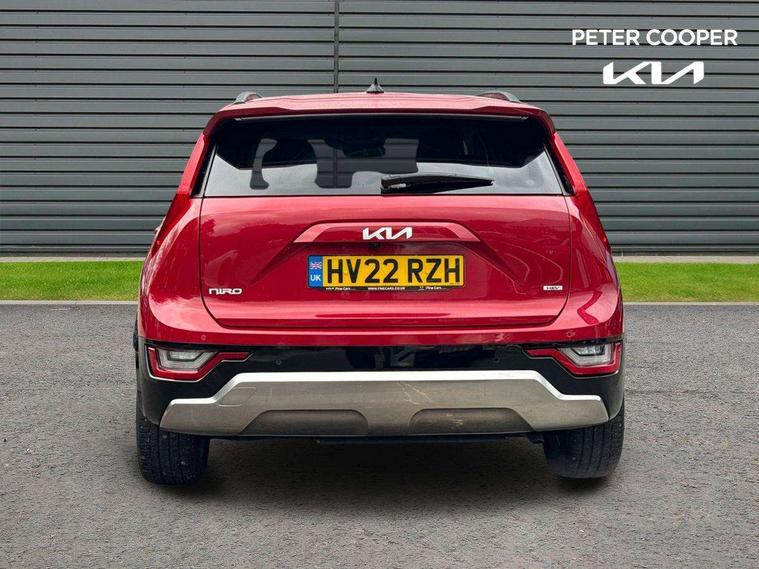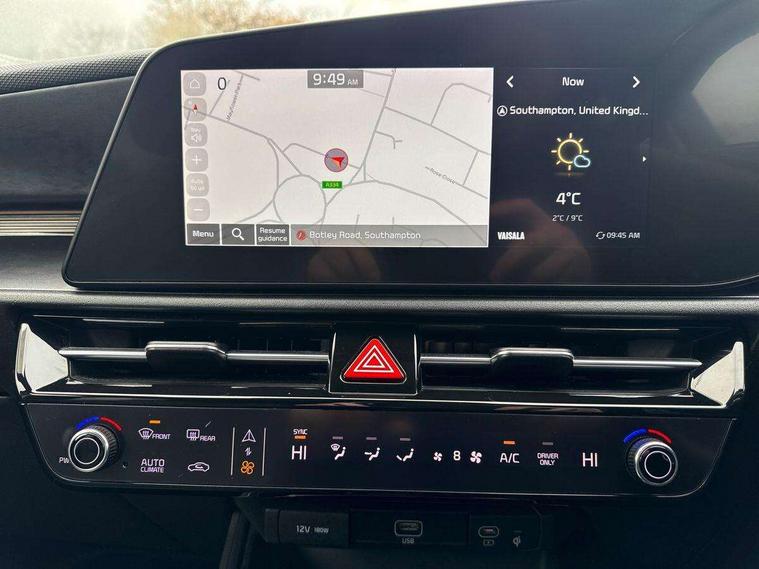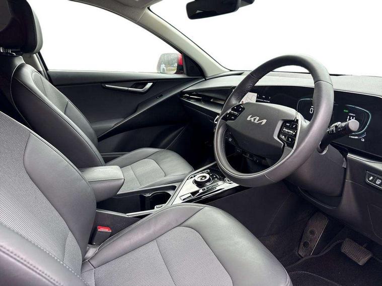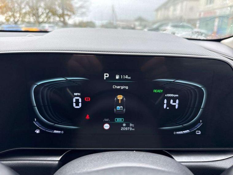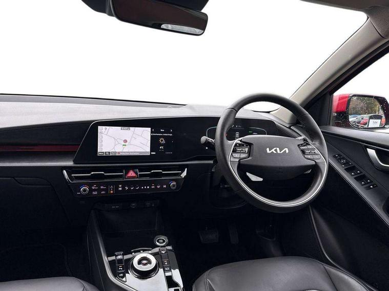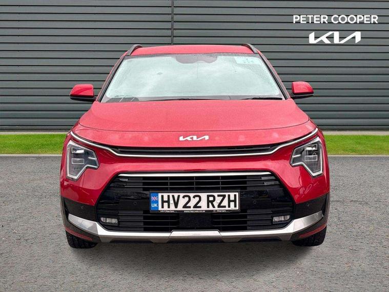 10.25" TFT LCD cluster, 10.25" touchscreen satellite navigation, Adaptive smart cruise control function (SCC) with stop and go, Apple car play/Android Auto with voice control, Blind spot collision avoidance assist, Digital clock, Drive mode selector, E-call, Emergency stop signalling system, Forward Collision-Avoidance Assist (FCA) 1.5 - City/Pedestrian/Cyclist/Junction turning, Front parking sensors, Highway Driving Assist (HDA), Intelligent speed limit assist, Kia Connect (UVO), Lane Following Assist (LFA), Lane keep assist, Motor driven power steering, Rear parking sensors, Reversing camera, Tailgate, Trip computer with distance/fuel consumption/average speed, Wireless Smartphone charger, 220v AC Inverter, 'Shark fin' mobile antenna, 2 type C USB ports on front seats, 2 USB ports in centre console including 1 type C, 6 speakers, Bluetooth with music streaming, DAB Digital radio, Steering wheel mounted controls, Acoustic windshield, All round electric windows with drivers and front passenger auto up/down function, Auto dimming rear view mirror, Automatic defog system, Automatic headlight control system, Black beltline mouldings, Black grille with chrome surround, Body colour bumpers, Body colour exterior door handles, Dual LED headlights (low and high projection), Electric heated door mirrors, Electrically folding door mirrors, Front and rear chrome skid plates, Front fog lights, Heated rear window with timer, High gloss black cladding, High gloss black door mirrors, LED daytime running lights, LED rear combination lights, LED third brake light, Privacy glass - Rear windows and tailgate, Rain sensing front wipers, Rear fog lights, Rear side wing doors, Rear spoiler, Rear wiper, Roof rails, Standard door scuff plates, Welcome and follow-me home light functionality, Windscreen Washer Level Warning, 12V socket in front, 12V socket in luggage compartment, 3 seat bench in 2nd row, 60/40 split/folding 2nd row of seats, Air filter, All-round height adjustable headrests, Artificial leather centre console storage box, Artificial leather steering wheel, Bulb type overhead console lamp with sunglasses case, Centre console cupholder, Chrome coating interior door handles, Cloth / Artificial leather upholstery, Driver's power adjustable seat, Driver/passenger sunvisors with illuminated vanity mirrors, Drivers seat power lumbar support, Dual zone automatic air conditioning, Front and rear door storage, Heated front seats, Heated steering wheel, Illuminated glovebox, Interior door lock/unlock function, ISOFIX Child seat top tethers and anchor fixings, Luggage area lamp, Luggage area load cover, Luggage board, Paddle shifts, Passenger seat height adjuster, Seatback pocket - driver, Seatback pocket - front passenger, Shift by wire SBW, Single front passenger seat, Tilt/telescopic adjustable steering wheel, Ventiliation ducts to rear compartment, Towing pack - Niro, 3 point seatbelts on all seats, ABS, Automatic unlocking of doors in case of impact, Drivers knee airbag, Dual shell horn, Electric parking brake with auto hold function, Electronic stability control, Front passenger airbag cut-off switch, Height adjustable front seatbelts, Hill start assist control (HAC), Manual rear child locks, Rear seat alert system, Traction control, Twin curtain airbags with roll over sensor, Twin front and side airbags, Tyre pressure monitoring system, Alarm system and engine immobiliser, Deadlocks, Engine Start/Stop Button with Smart Entry System, Locking wheel nuts, Speed sensitive auto door locking, Visible vehicle identification number, Warranty - 7 Years/ 100, 000 miles, Metal chopped carbon centre fascia, 18" Alloy wheels, Tyre mobility kit,