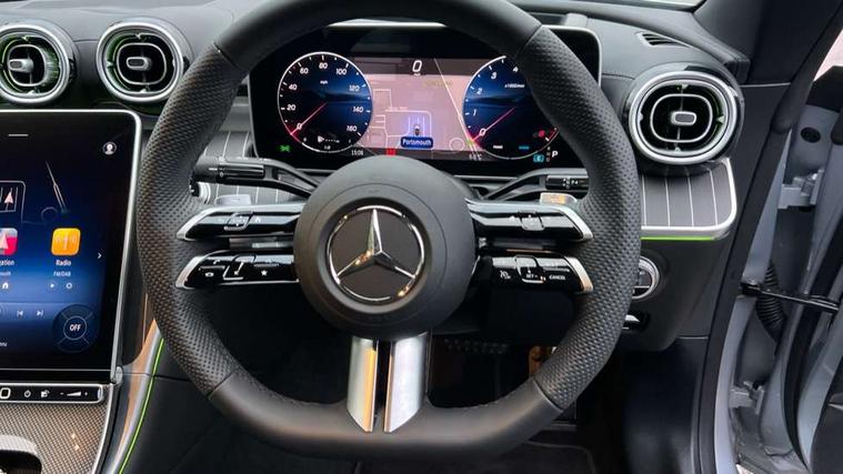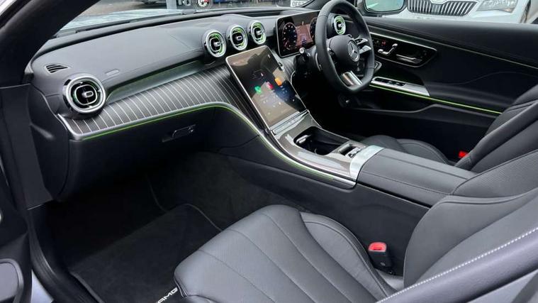 5G Communications module, Active lane keeping assist, Bluetooth connection, Car wash mode, DYNAMIC SELECT with a choice of driving modes (ECO, Comfort, Sport, Sport+ and Individual), eCall emergency call system, Fingerprint scanner, Fluorescent jacket for driver, Fully digital 12.3" driver display screen, Hard-disk navigation, Head up Display, Hey Mercedes Voice activation, MBUX augmented reality for navigation, MBUX navigation premium, PAS, Passive person presence reminder, Portrait format 11.9" touchscreen central display with driver orientation, Smartphone integration with Apple CarPlay and Android auto, Traffic sign assist, Wireless charging system for mobile devices in the front, 66 litre fuel tank, 9G TRONIC plus automatic transmission, Agility control sports suspension lowered by 15 mm, Integrated starter generator Gen 2, Sporty engine sound system, Burmester 3D surround sound system with sound personalisation, Digital radio, MBUX extended functions, MBUX multimedia system, AMG bodystyling, AMG Line exterior, Auto headlights, Electric windows, LED 3rd brake light, LED Day time running light, LED digital light with adaptive highbeam assist plus, Rain sensor windscreen wipers, Rear boot, Variable front intermittent wipers, 2 individual rear seats, 2 rear head restraints, Ambient lighting premium, Ambient lighting with projection of brand logo, AMG floor mats, AMG line interior, Belt feeder, Climatised massage multicontour front seats, Folding rear seat backrests, Front headrests, Heated front seats, Heated steering wheel, Illuminated door sill panels with Mercedes Benz lettering, Instrument panel and beltlines in ARTICO manmade leather in nappa look, Leather upholstery, Multifunction sports steering wheel in nappa leather, Power height and reach adjustable steering column, Single front passenger seat, THERMATIC automatic climate control, Comfort package - CLE, Interior light pack - CLE, Memory seat pack - CLE, Mirror pack - CLE, Parking package with 360 degree camera - CLE, Stowage space package - CLE, USB package plus - CLE, Anti-lock braking system (ABS), Braking system with larger brake discs on the front axle, Centre airbag, Dual front airbags, Electric parking brake, Electronic Stability Programme (ESP), Front and rear seatbelt reminder, Hill start assist, Pedestrian protection, Rear side airbags, Tyre pressure monitoring system, Anti theft alarm system, Guard 360 degree vehicle protection plus, Increased anti-theft protection, Interior monitoring system, Keyless Go starting function, Black open pore aluminium lines wood trim with centre console in black fine structure, 20" AMG multi spoke light alloy wheels painted in black with high sheen finish - RVM, Tirefit,
