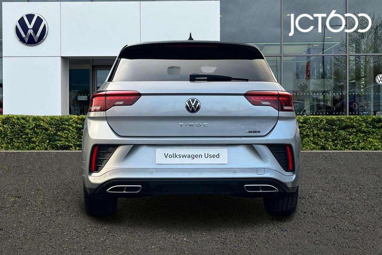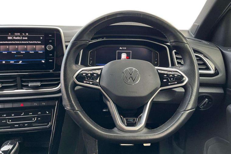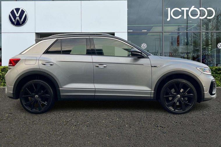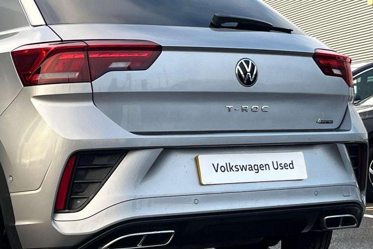 10.25" Digital cockpit pro, Bluetooth mobile phone interface, Driver alert system with fatigue detection, Driver tips and journey analysis, Emergency call service, Lane keeping system Lane Assist, Modified key software - reduce switch off time for key status change to Long no motion, Online services, Park assist including front and rear parking sensors, Service interval indicator, Tailgate/trunk lid release from outside, Think blue trainer driver tips and journey analysis, Warning sound and light for front seatbelts unfastened, Wireless app connect, Battery regeneration during braking, Four wheel drive, Start/stop function with battery regeneration, Diversity antenna for FM reception, Front and rear 6 speakers, Music playback - MP3, WMA and AAC files, Premium USB cable in choice of either Apple or Android smartphone compatibility, SD card slot, Simultaneous pairing of 2 compatible mobile devices, Title and cover art display, We Connect and We Connect Plus functionality, 3rd brake light, Auto dimming interior rear view mirror, Automatic hazard lights activation under emergency braking, Automatic headlight control with LED separate daytime running lights with coming/leaving home function, Extended roof spoiler, Exterior mirrors aspherical on driver side, convex on front passenger side, External USB type C socket and charging sockets, Front windscreen wiper with intermittent wipe and 4 position delay, Heated rear window, LED Plus headlamps, LED rear combination lamps, LED rear number plate lights, LED tail lamp rear comination lamps, Power windows with comfort operation and circuit breaker, R-Line design body coloured bumpers, Rain sensor, Rear exhaust tailpipe, Rear fog light on one side and reversing lights on both sides, Rear side wing doors, Rear wash/wipe with intermittent wipe setting, Remote electrically foldable door mirrors, puddle lights and reverse activated passenger's door mirror, 12V power socket in centre console, 3 rear head restraints, 3 seat bench in 2nd row, 4 load lashing points in luggage compartment, Air care climatronic air conditoning system with active combination filter and 2-zone temperature control, Black roof lining, Chrome plated radiator grille inserts, air vent surrounds and light switch surrounds, Door and side trim panel with leatherette insert, Drawer under drivers seat, Front + rear carpet mats, Front centre armrest, Front cupholders x 2, Front footwell illumination, Front reading light, Front scuff plates with R logo, Instrument lighting, white adjustable panel illumination, Interior ambient lighting and surround lighting, Interior light delay, Isofix child seat preparation, Leather gearshift handle, Load-through provision with cup holder when folded down ('Unsplit rear seat bench, split folding backrest, with centre armrest), Luggage compartment lighting, Single front passenger seat, Stainless steel pedals, Storage compartment in left and right luggage area, Storage compartment in rear doors, Storage compartments in driver and front passenger doors, Sunvisors with illuminated vanity mirrors, Variable boot floor, height adjustable and removable, Driver assistance pack without proactive passenger protection - T-Roc, 3 point height adj front seatbelts + pretensioners, 3 point seatbelts in outer rear with ECE label, ABS, Child locks on rear doors, Driver and front passenger airbag with front passenger airbag deactivation, Driver and front passenger safety-optimised head restraints, Drivers seatbelt reminder, Electronic parking brake, Electronic Stability Control (ESC) inc EDL (Electronic Differential Lock) and ASR (Traction Control), Front and rear passengers curtain airbag system including front side airbags, Front assist with city emergency braking and pedestrian monitoring, Front seat side impact airbags, Hill start assist, Predictive pedestrian protection, Rear disc brakes, Single tone horn, Tyre pressure loss indicator, Volkswagen roadside assistance, Alarm with interior protection, Anti-theft alarm system with interior monitoring, backup horn, and towing protection, Remote central locking with SAFELOCK, radio remote control with 2 remote control folding keys, Trims for alloy wheels,