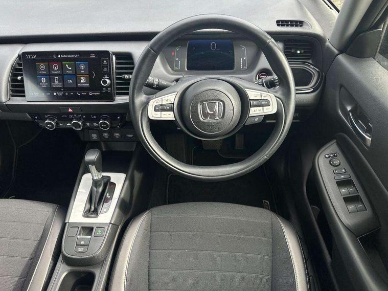 Adaptive cruise control, Adjustable speed limiter, Agile handling assist, Bluetooth hands free telephone connection, eCall emergency call system, Econ mode, Electric power steering wheel with variable gear ratio steering, Emergency stop signalling system, Forward collision warning, Front and rear parking sensors, Honda CONNECT with GARMIN Navigation + 9" touchscreen, AM/FM/DAB/Apple Carplay and android auto, Idle stop, Intelligent speed limiter, Lane departure warning system, Lane keep assist system, Low speed following, Multi-information display, Rear view camera, Road departure mitigation, Tailgate, Traffic jam assist, Traffic sign recognition, Wireless apple carplay, Vehicle stability assist, 'Shark fin' mobile antenna, 180w Power audio system with 4 speakers, 2 USB-C connectors rear, 2x USB Front socket (1 data & 1 charge), Remote audio controls on steering wheel, Aspheric door mirrors, Auto wipers, Automatic headlights with on/off timer, Coming/leaving home function, Black door mirrors, Black headlight extension, Body colour door handles, Body coloured front grille, eHEV emblem, Electric adjustable door mirrors, Electrically folding door mirrors, Exclusive styling includes front and rear bumper, front fog garnish, silver fender, side sill garnish, Front and rear electric windows, Heated door mirrors, High beam assist, LED 3rd brake light, LED daytime running lights, LED front fog lights, LED Headlights, LED rear lights, Manual headlight levelling, Privacy glass, Rear side wing doors, Rear wiper, Roof rails, Single exhaust tailpipe, 3 seat bench in 2nd row, 60/40 split rear bench seat, Cargo net hooks, Climate control air conditioning, Driver and front passenger seat armrests, Driver and passenger front seat pockets, Driver's seat height adjustment, Fabric/Water repellent upholstery, Front accessory power socket, Front head restraints, Front map lights, Front/rear courtesy lights, Heated front seats, Heated steering wheel, Isofix points, Leather gearshift knob, Leather steering wheel, Magic seat flexibility system, Plating interior door handles, Rear head restraints, Single front passenger seat, Sunvisors with vanity mirrors, Tilt/telescopic adjustable steering wheel, Tonneau cover, Trunk light, Vanity mirror illumination, 3x3 point rear seatbelts, Anti-lock braking system (ABS), Brake assist function, Brake hold function, Child locks on rear doors, Collision mitigation braking system, Deflation warning system, Driver knee airbag, Driver SRS airbag (single stage inflation), Driver/Front Passenger airbags, Electronic parking brake with auto hold, Front and rear seat belt with emergency locking retractor, Front and rear side curtain airbag, Front centre airbag, Front side airbags, Hill start assist, Passenger SRS airbag cut-off device, Rear side airbags, Whiplash lessening front headrests, Honda super locks, Immobiliser, Mirrors and windows key fob operation, Remote central locking with 2 remote folding keys, Security alarm, Smart entry + Smart start, Soft pad leather interior panels, 16" 3D chrome H centre cap alloy wheels, Tyre repair kit,