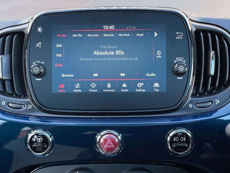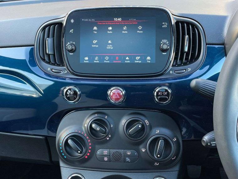 Apple car play/Android Auto, Cruise control, E-call, External temperature gauge, Power assist steering, Rear parking sensor, Speed limiter, Stop/start system, Trip computer, 4 speakers, 7" HD Touchscreen Radio, Bluetooth, USB and DAB, Rear speakers, 3rd brake light, Auto headlights, Body colour bumpers, Body coloured electrically adjustable door mirrors, Chrome plated exterior door handles, Dolcevita badge on fender, Dusk and rain sensors, Electric front windows, Fixed glass sunroof with sunblind, Front fog lights, Halogen headlamps, Heat insulated glass, Heated rear windows with wash wipe, LED daytime running lights, Rear side wing doors, Rear wiper, 1 passenger grab handle, 2 seat bench in second row, 50/50 split folding rear seats with height adjustable rear headrests, Air conditioning, Auxilliary 12V power socket, Chrome kit, Front headrests, Height adjustable drivers seat, Height adjustable steering wheel, Isofix child seat preparation, Single front passenger seat, Techno leather steering wheel with audio controls, 7 airbags - Driver, passenger, side, window and drivers knee airbags, ABS/EBD, ESC + ASR/MSR + HBA + Hill holder, Passenger airbag deactivation system, Traction control, Tyre pressure monitoring system, Automatic door locking, Immobiliser, Locking fuel filler cap, Remote central locking, 15" Alloy wheels,
