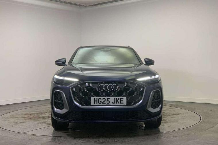 Adaptive cruise control, Advanced driver attention alert, Audi application store, Audi connect emergency call and service, Audi drive select, Audi smartphone interface, Audi virtual cockpit plus with 11.9" OLED colour display, Camera based traffic sign recognition, Fatigue monitor, Front cross traffic intersection assist, Lane departure warning system, MMI navigation plus with high resolution 14.5" OLED touchscreen colour display, Park assist plus, Parking system plus with 360 display, PAS, Reversing camera, Swerve assist and turn assist, Traffic sign based speed limiter, 2 USB-C ports in both the front and rear, Audi sound system impressive sound with 10 loudspeakers including centre speaker and subwoofer, 6-channel amplifier with a total output of 180 watts, DAB Digital radio, Smartphone compartment with wireless charging, Aluminium roof rails, Auto dimming rear view mirror, Body coloured door mirrors, Coming/leaving home lighting function, Electrically adjustable heated and folding + automatically dimming exterior mirrors, Front and rear electric windows, Front door sill trims with aluminium inlays, illuminated with 'S' logo, Grill frame, inlay and front air inlets in matt anthracite chrome, Headlight cleaning system, Heated rear window, High beam assist, High gloss window surrounds, LED headlights plus incl. digital DRL, dynamic coming and leaving home function with turning/all weather/motorway/manouevring and intersection lights, LED rear lights pro incl. dynamic rear indicators and illuminated light strip with animated coming and leaving home function, Logo projection light in exterior mirrors, Privacy glass, Projection light for rear window, Radiator grille in phantom black, Rear and side windows with heat insulating glass, Rear honeycombe grille in matt black with inlay in matt anthracite chrome, Rear side wing doors, Rear wash/wipe, S Line badge on the front wings, S line bumpers in contrasting Volcano grey metallic paint finish, Towbar preparation, Windscreen with acoustic glazing, 3 rear head restraints, 3 seat bench in 2nd row, 3 spoke leather steering wheel with multi-function buttons with touch control, flattened on top and bottom, with S badging and contrast stitching, 40:20:40 split folding rear seat bench with centre armrest and cup holders, Comfort centre armrest, Deluxe 3 zone electronic climate control, Front and rear floor mats, Front seats with manual adjustment for position and 4-way electric lumbar support, Front sport seats with integrated head reastrains, Headlining in black cloth, Heated front seats, i-Size child seat mounting on the front passenger side and outer rear seats, i-Size and top tether on the outer rear seats, Interior trim in aluminium look, Luggage compartment lid, electrically opening and closing, Manual steering column adjustment, Single front passenger seat, Softwrap in leatherette, Stainless steel pedals and footrest, Steering wheel grips in perforated leather and shift paddles, Ambient lighting package plus - Q5, Storage and luggage compartment pack - Q5, 3x3 point rear seatbelts, ABS, Acoustic vehicle alerting system, Driver and front passenger airbag with passenger airbag deactivation, Electric child safety locks, First aid kit with warning triangle and high visibility vests, Front emergency brake assist, Front side airbags with head airbag system and front interaction airbag, Hill hold assist, Rear seat occupant reminder, Tyre pressure loss indicator, Anti theft alarm, Anti-theft wheel bolts, Remote control key with SAFELOCK and keyless go, Accent surfaces and control buttons in gloss black, Anthracite matt brushed aluminium inlays with linear embossing, Black dashboard with contrast stitching, Upper and lower interior elements in artificial leather, Tyre repair kit,
