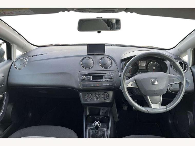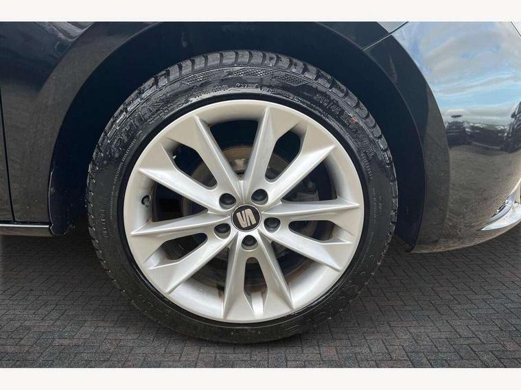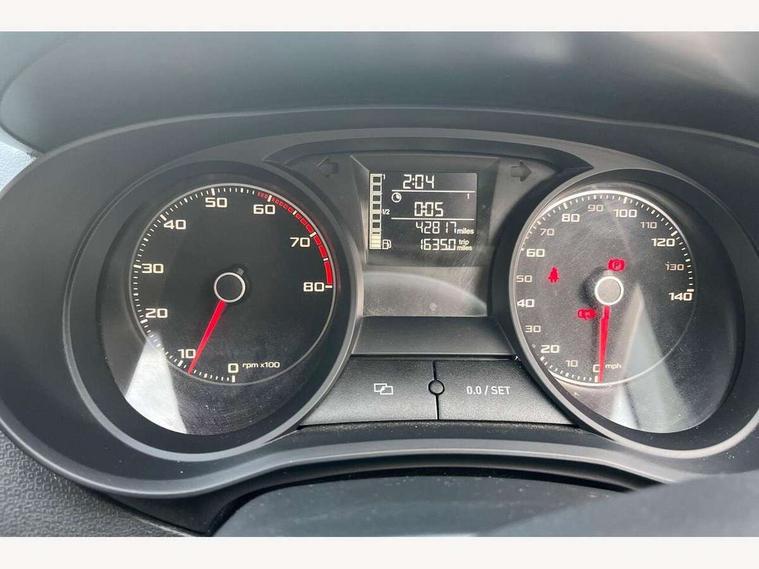 'Lights On' Reminder warning buzzer, Digital clock, Low fuel warning light, Outside temperature gauge, SEAT Portable Navigation system inc SD card slot, bluetooth connection with audio streaming, Service interval indicator, Speed sensitive power steering, Trip computer, 4 speakers, Auxiliary input socket, MP3 compatible radio/single CD player, Steering column with mounted audio controls, Body colour door handles, Body colour door mirrors, Body coloured bumpers, Cornering front fog lights, Electric headlight adjustment, Electrically adjustable and heated door mirrors, One touch electric front windows, Rear wiper, Roof antenna, Tinted glass, 12V accessory power point in centre console, 3 cupholders, Air conditioning, Aloe cloth upholstery, Boot light, Driver/passenger sunvisors and vanity mirrors, Front door pockets, Front seat and rear pockets, Front/rear floor mats, Grab handles, Height adjustable driver's seat, Height adjustable front/rear head restraints, Height/reach adjust steering wheel, Illuminated glovebox, Interior centre roof light, Isofix system on outer rear seats, Leather steering wheel and gear knob, Map and reading lights, Pollen filter, Split folding rear seats, Underfloor storage compartments in luggage area, 3 point seatbelts on all 3 rear seats, ABS, Driver and passenger airbags, ESP+EBA, Front passenger airbag deactivation, Front side airbags, Hill hold control + Tyre Pressure monitor, Seatbelt warning, 2 folding remote keys with window open/close function, Deadlocks, Immobiliser, Remote central locking, Volumetric alarm with back up horn, 16" Cartago alloy wheels,
