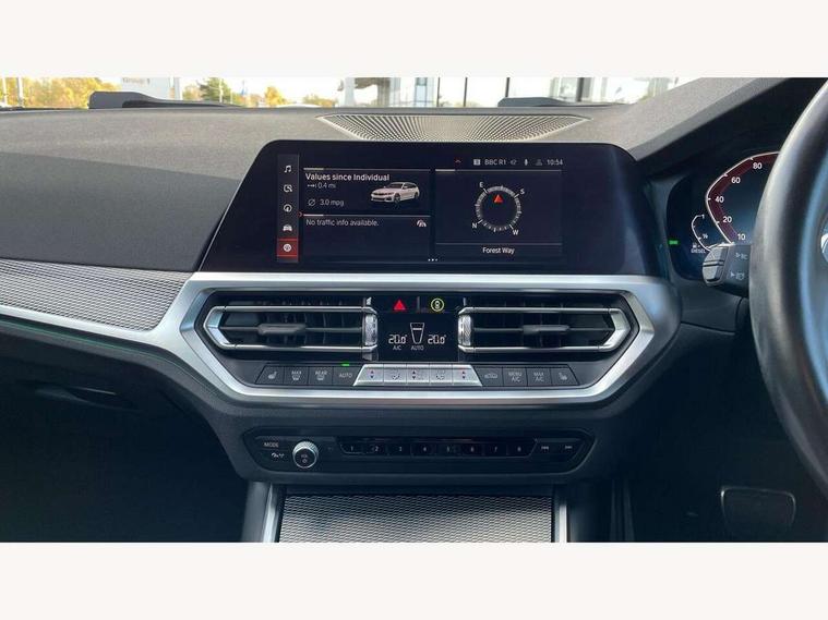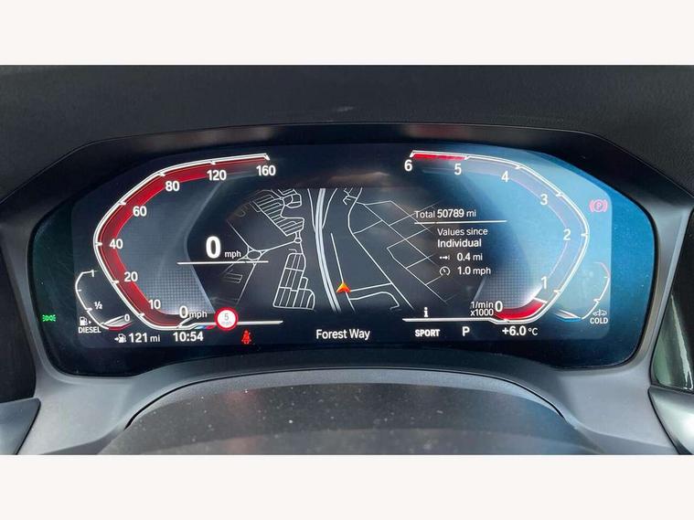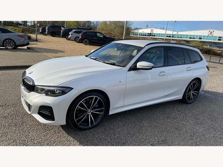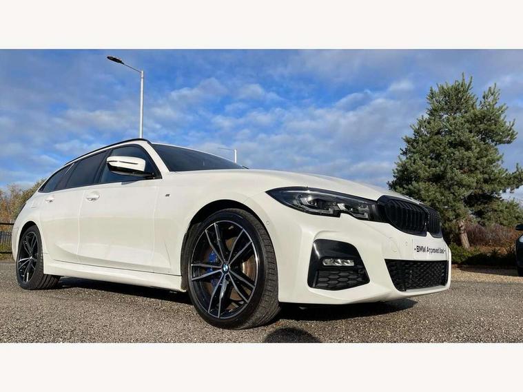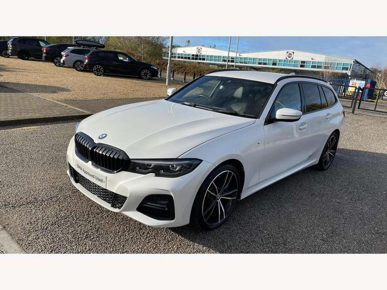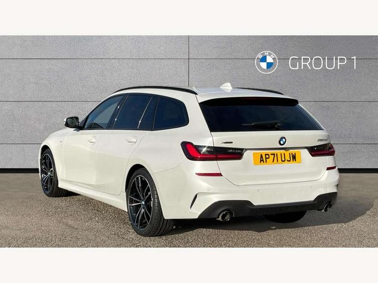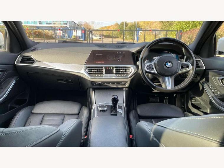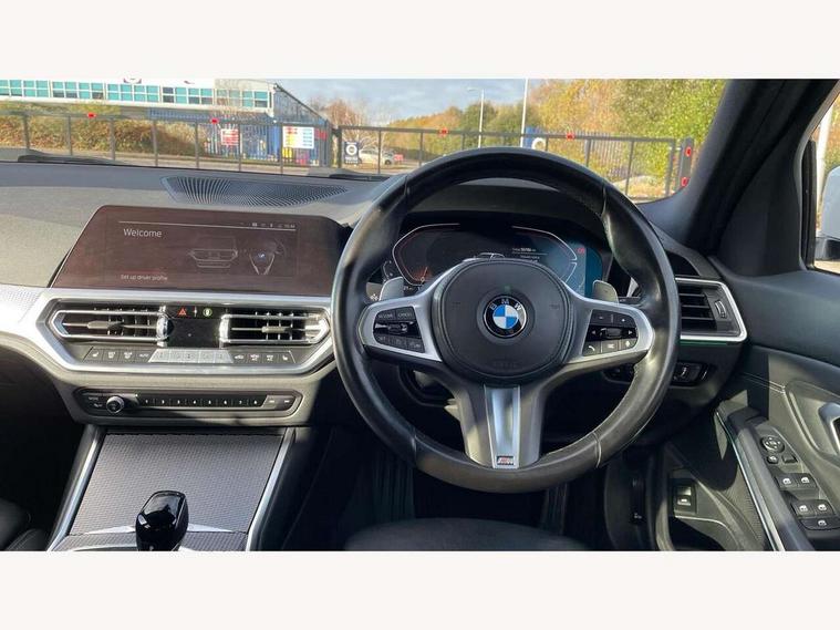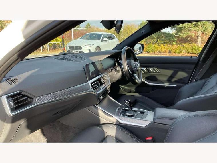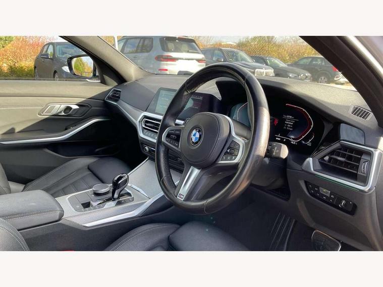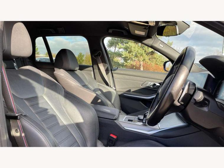Active guard plus, Attentiveness assist, Bluetooth hands free facility with USB audio interface with audio streaming, BMW ConnectedDrive oline services with BMW apps, BMW iDrive controller on centre console, BMW Live Cockpit Professional Nav with 12.3" instrument display + 10.25" display, Intelligent Voice Assist, BMW OS 7, HDD, 2USB, 4G LTE connect, BMW service history, BMW Teleservices, Brake pad wear indicator in front and rear, Check Control warning system for monitoring of lights and door/luggage compartment open warning, Condition based service, Cruise control with brake function + speed limiter, Electric power steering with Servotronic steering optimised at all speed ranges, Gearshift time display in manual mode, Instrument cluster with speedometer with mph readout, tachometer, fuel gauge and oil temperature gauge, Integrated owners handbook, Oil sensor for level and grade, warning by check control system, On board computer - average speed+fuel consumption, service interval, clock/date, odometer/trip meter, outside temperature display and ice warning, Optimum shift indicator, Personal Profile - automatic lock when driving away selectable, Recovery braking system, Variable sport steering, 48V Mild hybrid technology, Balanced 50/50 weight distribution, Battery cut-out switch, Common rail technology, Diesel particulate filter, Drive performance control - ECO PRO, comfort and sport modes, EU6 emissions management, Incorrect fuelling protection, Larger capacity fuel tank, M sport suspension, Oxidation catalytic converter, Selective catalytic reduction (SCR) with AdBlue, Stroke dependent dampers, Twin scroll turbocharger, xDrive system permanent all-wheel drive variable torque distribution, DAB tuner, Electronic service booklet, Acoustic glazing, Active airstream chrome frame kidney grille with 8 high gloss black vertical slats, Automatic headlight activation/adjustment, Automatic headlight beam throw control with load dependent regulating reaction, dynamic compensation of braking dive and acceleration squat, Black roof mouldings, Body colour door handles, Body colour fuel filler flap, Body colour mirror caps with bottom segment in matt black, Dynamic brake lights, Electric windows - front and rear, with open/close fingertip control, anti-trap facility and comfort closing, Exhaust tailpipe - split left and right, Exterior mirrors - electrically folding with anti-dazzle, Fading support, Front and rear bumper system with replaceable deformation elements, Front black door sill finishers with BMW designation, Green tinted heat protection glazing, High gloss black exterior B pillar, Interior rear view electrochromatic mirror with automatic anti dazzle function, LED daytime running lights, LED front fog lights, LED third brake light, Lightweight engineering, M designation on front side panels, left and right, Rain sensor, Rear side wing doors, Rear wiper, Shark fin antenna, Two part LED tailights in L-shape with components in smoked glass, brake light, LED turn indicator and rear fog light, Visible VIN plate, Welcome lights in interior and door handle area, Windscreen wipers with integrated washing jets, xDrive designation on left tailgate, 12V power socket in front storage compartment, 2 front cupholder in centre console with clamping elements and matt black inlay, 3 seat bench in 2nd row, 3 zone automatic air conditioning, 4 pieces lashing eyelets in luggage compartment, 40:20:40 split folding rear seat with loading system, Ambient lighting with welcome carpet light, Anthracite headlining, Armrest integrated in front and rear door trim + front centre console armrest, Backrest width adjustment, Centred top Luggage compartment lights, Four grab handles integrated in roof lining, Front and rear door exit lighting (left / right), Front and rear door pockets, Front and rear reading lights, Front and rear velour floor mats, Front head restraints, Front sport seats, Heated front seats, Height adjustable mechanically and infinitely variable steering column, Illuminated armrest storage compartment, Illuminated glove compartment with separate small compartment, Interior lighting - front centre over interior mirror with soft light, rear centre and front and rear footwell lighting, Make-up mirror lights, Rear centre armrest with 2 cupholders, Rear centre console with storage compartment and ventilation grille, Single front passenger seat, Sunvisors with vanity mirrors and ticket pocket, Three spoke multifunction M sport leather steering wheel, Toolkit located in luggage compartment, Connected pack professional - 3 Series Saloon/Touring, M sport exterior styling pack - 3 Series Saloon/Touring, Parking assistant pack - 3 Series, 2 tone horn, 3 rear seats with non folding headrests, Airbags activation controlled with intensity and scope, BMW emergency call, Brake energy regeneration, Braking pre-tensioning, Child proof locking system in rear door, Child seat ISOFIX attachment rear outer seats, Coasting in idle in ECO PRO mode, Crash sensor activating of airbags, Unlocking doors, hazard warning lights, interior light, safety battery terminal, Deactivation of fuel pump in the event of a crash, Driver and front passenger side airbags, integrated in the door side seat backrest bolsters for all seat variants, Driver/Front Passenger airbags, Dry braking, Dynamic brake control, Dynamic stability control + (DSC+) - Anti-lock Braking System (ABS) with brake assist and cornering brake control + Automatic Stability Control (ASC), Dynamic Traction Control - DTC, Electric parking brake including automatic hold function and automatic release of the parking brake when driving off, Electronic differential lock control (EDLC), Front passenger manual airbag deactivation, Head airbags for all 4 outer seats, Hill start assist, Seat belt security check for driver and front passenger, Side impact protection, Three 3 point seat belts on all seats including front belt stopper, pyrotechnic belt tensioners and belt force limiters,