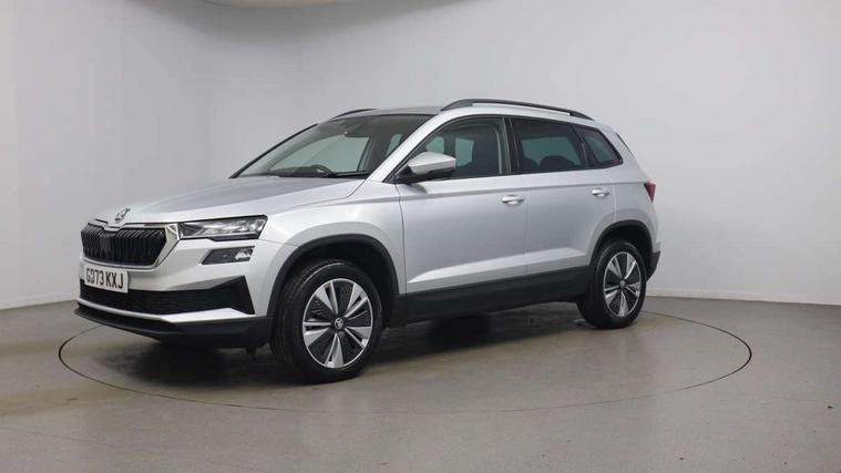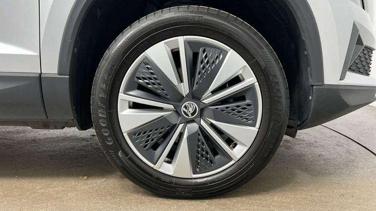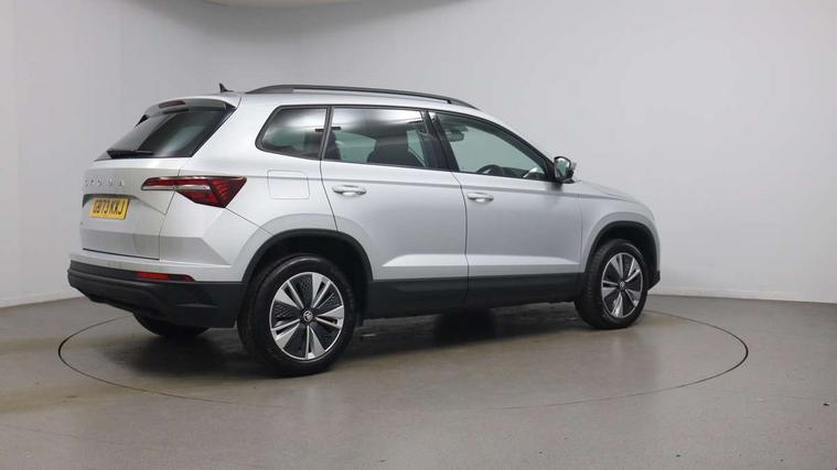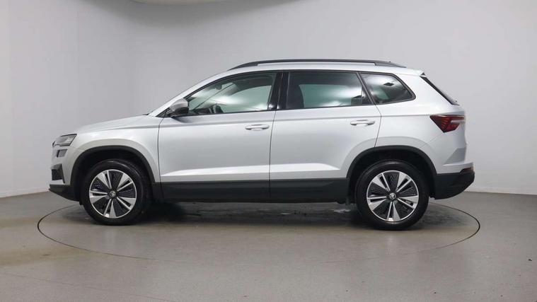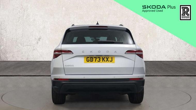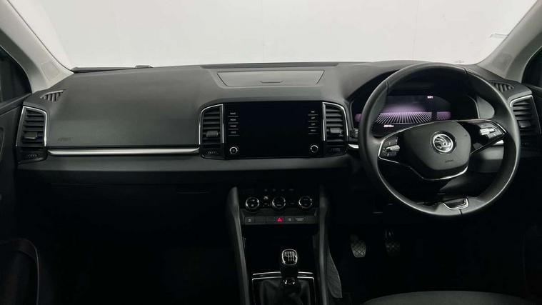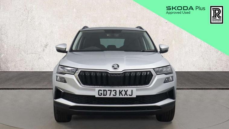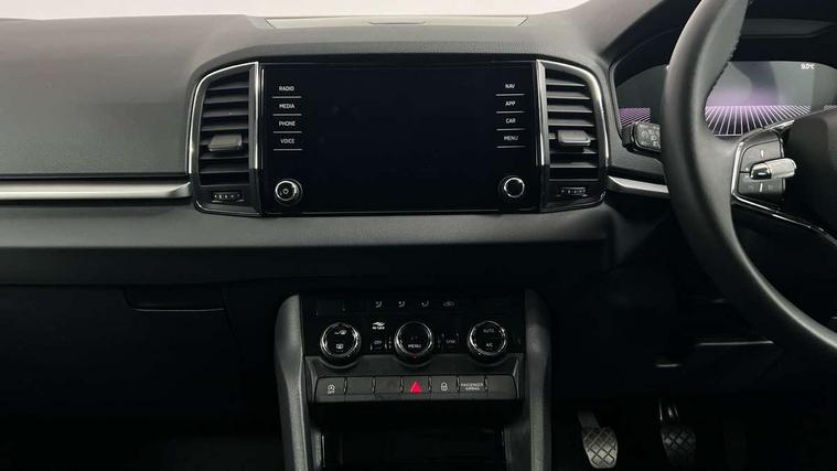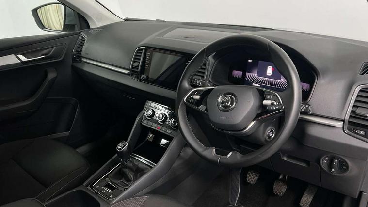 8" Digital display, Amundsen satellite navigation with 8" touchscreen display with maps Europe, WLAN and web radio, Care connect, Driver fatigue sensor, Electro-mechanical PAS, Emergency services call system, Outside temperature gauge, Service interval indicator, SmartLink wireless for Apple and wired for Android, Start/stop system with regenerative braking, USB C Port x 2 in front centre console, 8 Speakers, DAB radio with Bluetooth, USB connection, Acoustic glass, Aero front windscreen wipers with intermittent function, Auto dimming rear view mirror with light and rain sensors, Black electric window control buttons, Body colour door mirrors and handles, Dynamic headlight range control with cornering light function, Electric front and rear windows with child proof lock, Electrically adjustable heated folding and auto dimming door mirrors, Front fog lights, Heated rear windscreen, LED daytime running lights, LED Headlights, LED rear lights with high functionality welcome effect and dynamic indicators, Light assistant (coming/leaving home/tunnel light), Plastic scuff plates, Privacy glass, Rear side wing doors, Rear window wiper with washer system and intermittent control, Safety reflectors on front doors, Third brake light, 1.5 litre bottle holders in driver and front passenger door panels, 12V socket in boot, 12v socket in front centre armrest with storage compartment and rear air vents, 2 x Tablet holder, 3 rear height adjustable headrests, 3 seat bench in 2nd row, 4 foldable roof handles with rear coat hooks, Black floor carpet, Chrome inner door handles, Double sided boot floor, Driver/front passenger reading lights, Foldable hooks in the boot, Folding tables on the front seat backrests, Front head restraints, Height adjustable driver and passenger seat, Height adjustable front three point seats belts with tensioners, Height/reach adjust steering wheel, Ice scraper, Illuminated glovebox, Illuminated luggage compartment, Isofix child seat preparation for front passenger seat, Isofix child seat preparation outer rear, Manual lumbar support for front seats, Pearl grey interior ceiling, Pen holder, Pollen filter, Rear boot cover, Rear reading lights, Rubbish bin door, Safety vest holder, Single front passenger seat, Storage box in upper central dashboard closed, Sunvisors with illuminated vanity mirrors, Textile floor mats, Ticket holder, Umbrella under passenger seat, Boot pack - Karoq, Automatic door unlocking in case of crash, Automatic fuel cut off in case of crash, Child locks on rear doors, Driver airbag, Electronic parking brake with auto hold function, Emergency rear braking signal, ESC including ABS, MSR, ASR, EDS, HBA, DSR, RBS, MKB and traction control, Front side airbags, Hill hold control, Knee airbags, Passenger airbag with switch-off function, Pedestrian monitor, Seatbelt reminder signalisation and pretensioner for all seats, Three point seatbelts rear, Two tone horn, Tyre pressure display, Tyre pressure monitor, Alarm with interior monitoring, back up horn and tilt sensor with safe function, Electronic engine immobiliser, Remote central locking with 2 remote folding keys, Black centre console, Chrome framed air vents, Satin black dashboard, Satin black door trim, Anti-theft wheel bolts protection, Tool kit,