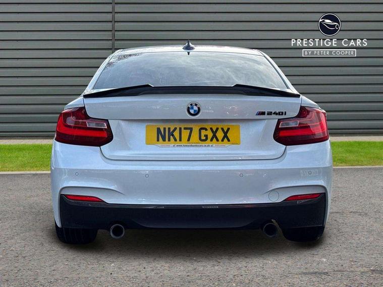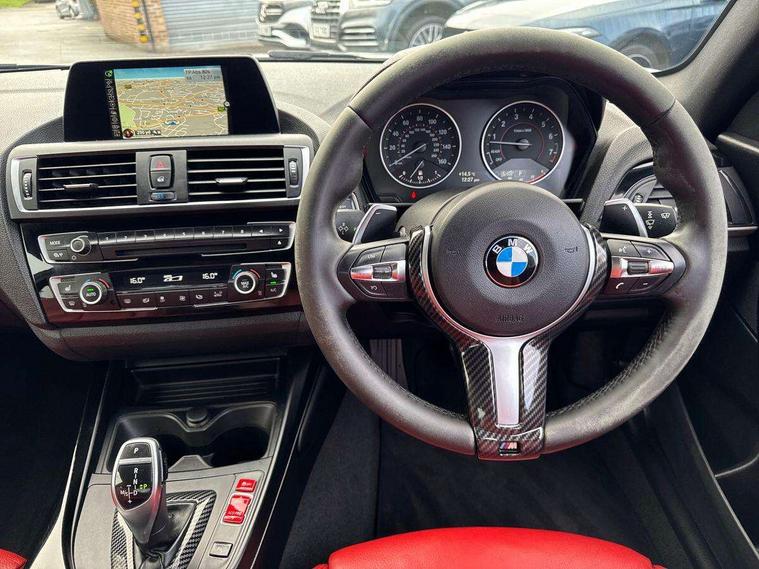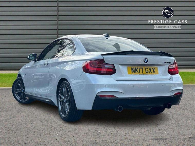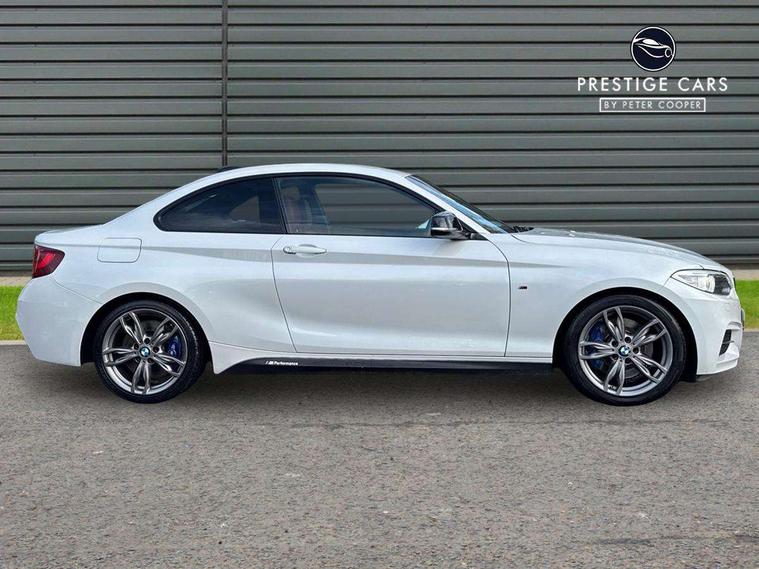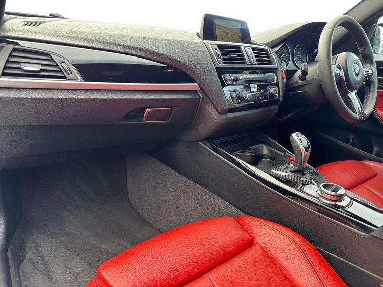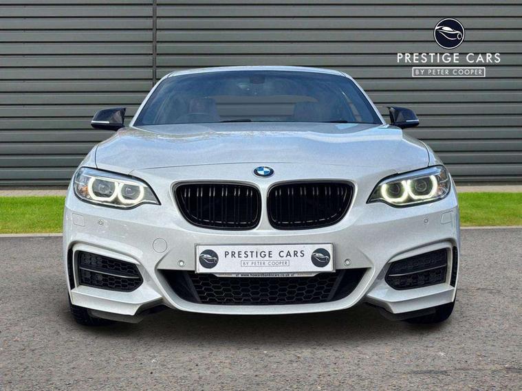 BMW Online services, BMW Teleservices, Brake pad wear indicator warning light, Check control system, Door/boot open warning, Lights on warning, Oil temperature gauge, On board computer, Outside temperature display, Service interval indicator, Speed limiter, Stop/start button, Variable sport steering, Drive Performance Control, Sports function on gearbox with steering wheel mounted gearshift paddles, Auxiliary point for auxiliary devices, BMW professional radio/CD/MP3, DAB Digital radio, 2 speed adjustable intermittent wipers with wash/wipe function, Auto dimming rear view mirror, Body colour bumpers, Body colour door handles, Body colour roof mouldings, Chrome air intake, Chrome kidney grille with black vertical slats, Door sill finishers, Dual dark chrome exhaust tailpipes, Electric adjustable heated door mirrors, Electric front windows/one touch facility, Ferric grey mirror caps, Follow me home headlights, Headlight range control, Heat insulating tinted glass, Heated windscreen washer jets, LED rear lights, M aerodynamic body styling, M rear spoiler, Rain sensor including auto headlights activation, Shark fin roof aerial, Welcome lighting, 12V sockets in front centre console and passenger footwell, 3 Spoke M sport nappa leather multifunction steering wheel, 4 grab handles, Anthracite headlining, Anthracite Velour floor mats, Dakota leather upholstery, Folding storage compartment with glasses holder + coin tray, Front cupholders x 2, Front door storage bins, Front head restraints, Front sliding armrest, Front/rear armrests within door panels, Glovebox with lid, ISOFIX child seat preparation+airbag deactivation, Lashing eyelets in boot, Leather gearknob, Reach + rake adjustable steering column, Rear centre armrest, Rear coat hooks, Storage compartment in rear centre console, Interior comfort pack - 2 Series/M2, Xenon headlight pack - 2 Series/M2, 3 point seatbelts, ABS/EBD, Automatic Stability Control (ASC), BMW emergency call, Cornering brake control (CBC), Crash Sensor - activates hazard/interior lighting + unlocks doors, Driver seatbelt warning indicator, Driver/Front Passenger airbags, DSC+, Dynamic brake control, Dynamic Traction Control - DTC, Front and rear curtain airbags, Front seatbelt force limiters, Front seatbelt pretensioner, Front side airbags, Hill start assist, M Sport braking system, Passenger airbag deactivation system, Tyre pressure monitoring system, Warning triangle and first aid kit, Drive away door locking, Electronic immobiliser, Remote central locking, Remote control Thatcham category 1 alarm, 18" light alloy wheels - M Double spoke style 436M,