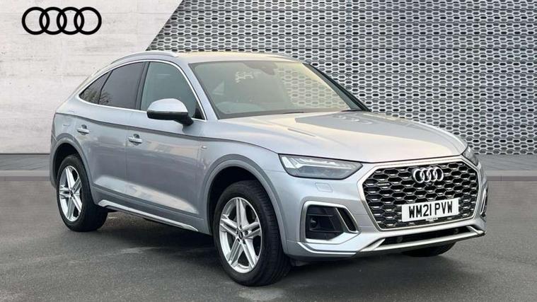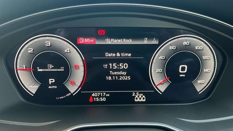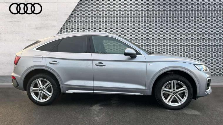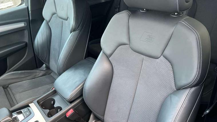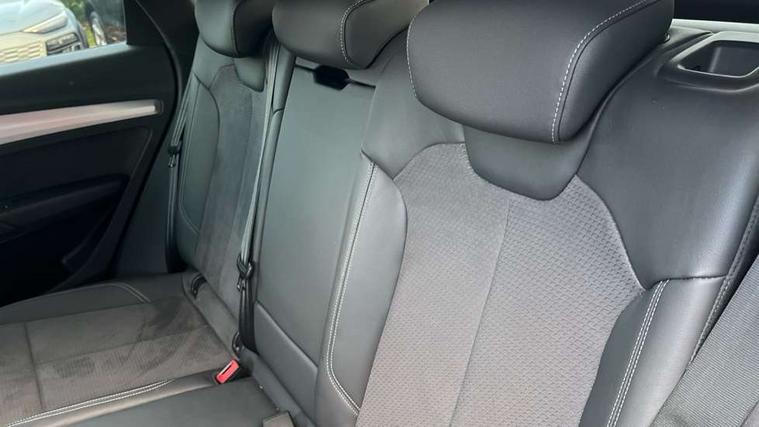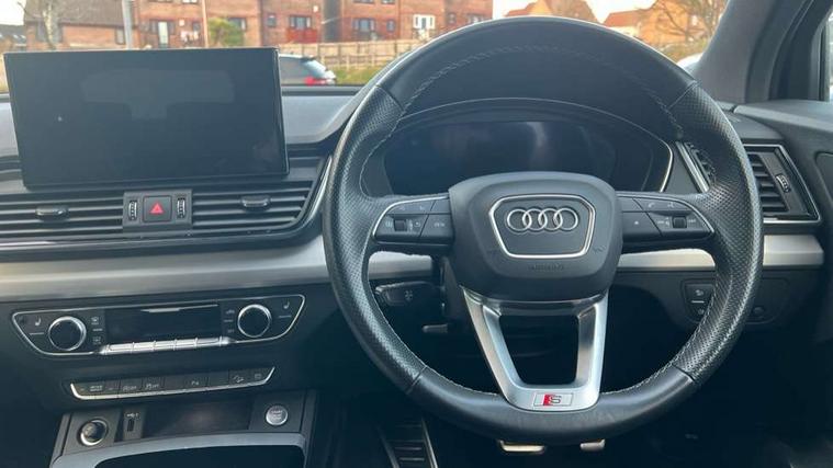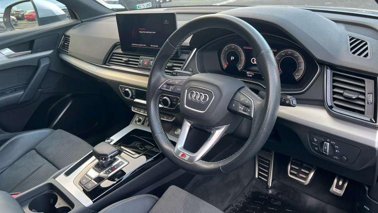 Audi connect safety and service (e-call), Audi connect with Amazon Alexa Integration, Audi drive select, Audi virtual cockpit plus with 12.3" screen and three different layout designs, Audi wireless smartphone interface, Automatic start-stop system with coasting functionality and efficiency programme, Bluetooth interface, Electro - mechanical power assisted steering, MMI navigation plus with 10.1" touch screen, Power tailgate, Reversing camera, Service interval indicator, Voice control system with Audi hotword activation "Hey Audi", Diesel particulate filter, Quattro on demand, S line sports suspension, DAB Digital radio, Acoustic windscreen, Aluminium roof rails, Audi matrix LED headlights with dynamic front and rear indicators, Auto dimming rear view mirror, Automatic headlights and windscreen wipers, Body colour door mirrors, Body colour rear diffuser with matt aluminium silver surrounds, Body colour underbody protection, Chrome plated exhaust trims, Door sills in Selenite silver, Electric adjustable/heated/folding door mirrors, Front air inlet surrounds in aluminium, Front and rear electric windows, Front radiator grille in honeycomb design, Headlight washers, Lower bumpers painted in contrast Manhattan grey, Rear chrome trim strip below lights, Rear privacy glass and rear side windows, Rear spoiler, Rear wiper, Roof bars, S Line badges on the front wings, S Line front and rear bumpers, S Line side skirts, 2 x USB charging port with aux input socket, 3 rear headrests, 40:20:40 split folding rear seat with rear centre armrest, Black cloth headlining, Comfort front centre armrest, Contrast stitching on seats, steering wheel and gear lever gaiter, Deluxe 3 zone electronic climate control, Front head restraints, Front/rear floor mats, Gear lever in black leather, Heated front seats, Height/reach adjustable steering column, Illuminated door sill trims with S logo, ISOFIX child seat mounting and top tether, Manual seat adjustment with 4-way electric lumbar support, Removable luggage compartment floor, Stainless steel pedals, Sunvisors with vanity mirrors, Trunk roller cover, High gloss pack - Q5, LED interior light pack - Q5, 3 point seatbelts on all seats, 6 airbags - Driver, front passenger, curtain and side airbags, Electrically operated child locks on rear doors, Electromechanical parking brake, Electronic stabilisation control including ABS, ASR and EDL, Front passenger airbag deactivation, Hill descent control, Hill hold assist, Multi collision brake assist, Pop-up bonnet for pedestrian protection, Pre sense city, Seat belt force limiter, Seatbelt monitoring, Tyre pressure warning, Warning triangle and first aid kit, Anti theft alarm, Anti-theft wheel bolts, Keyless Go access/ignition system, Matt brushed aluminium inlays,