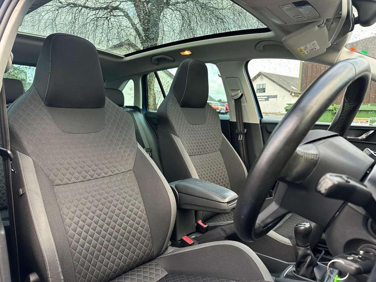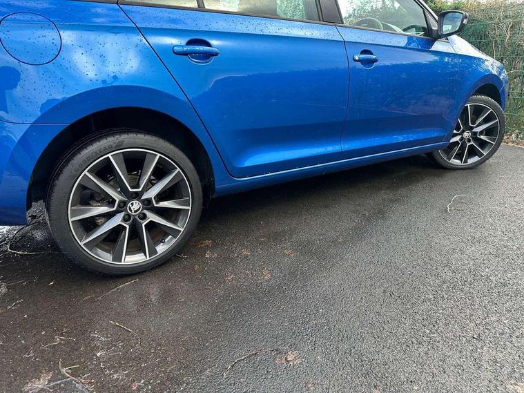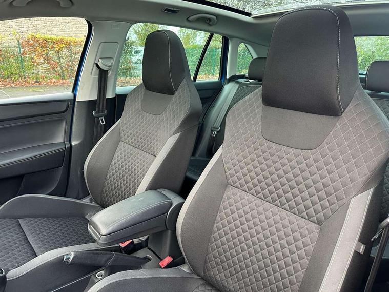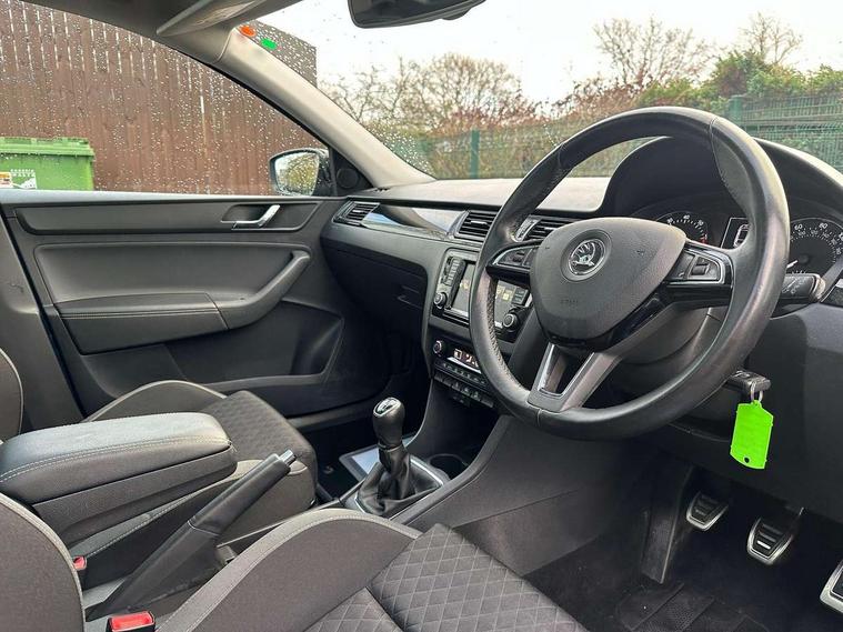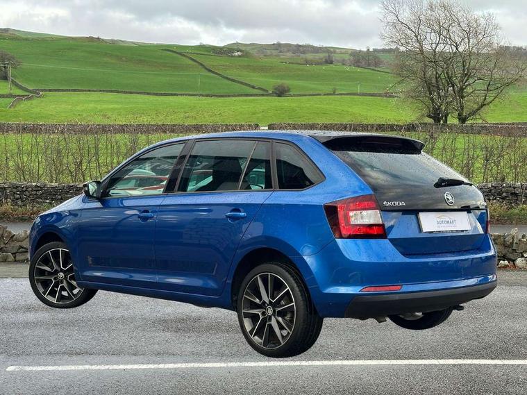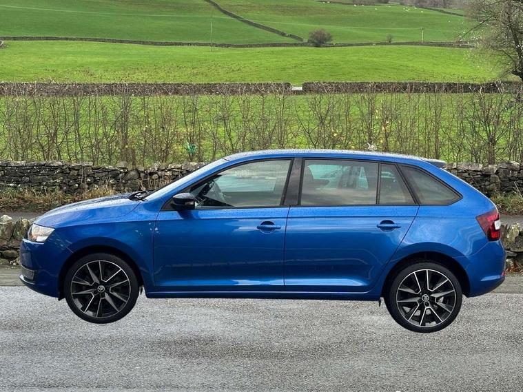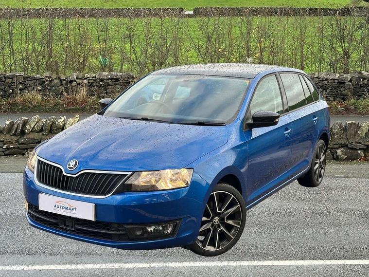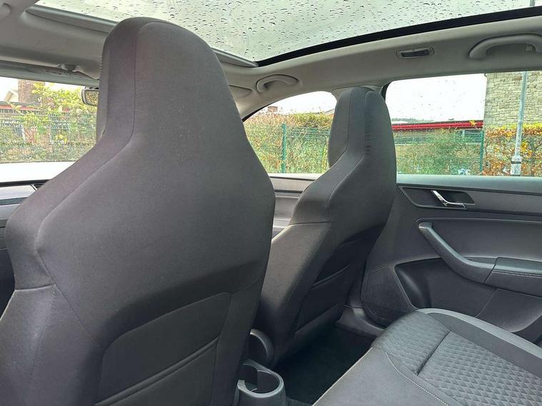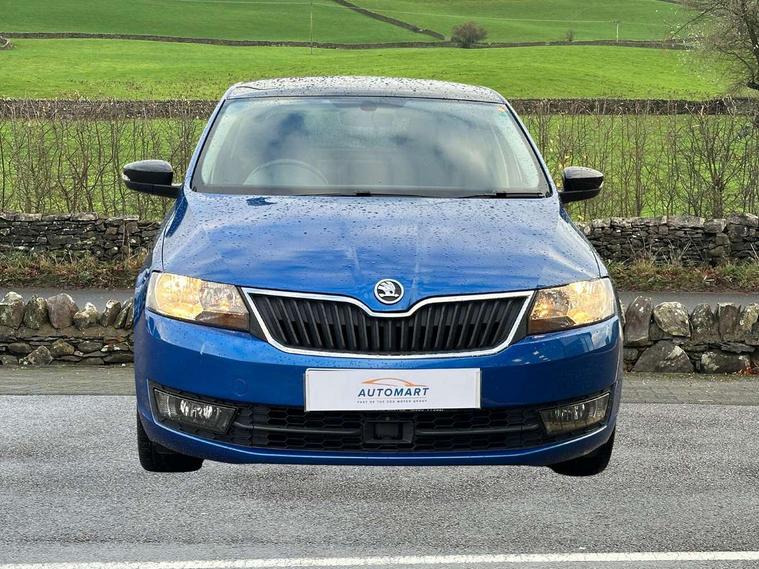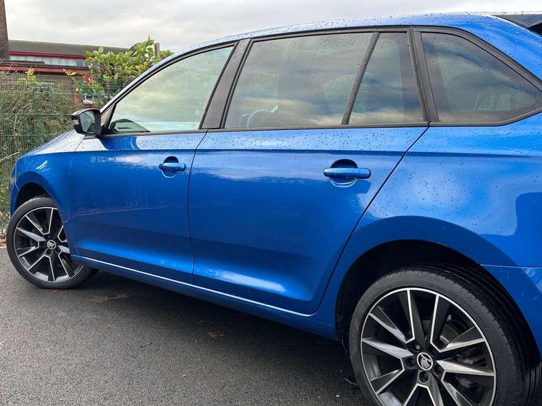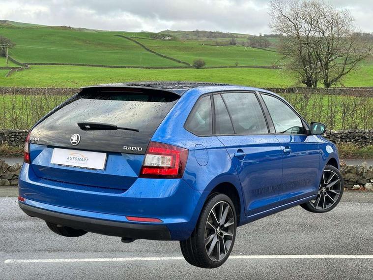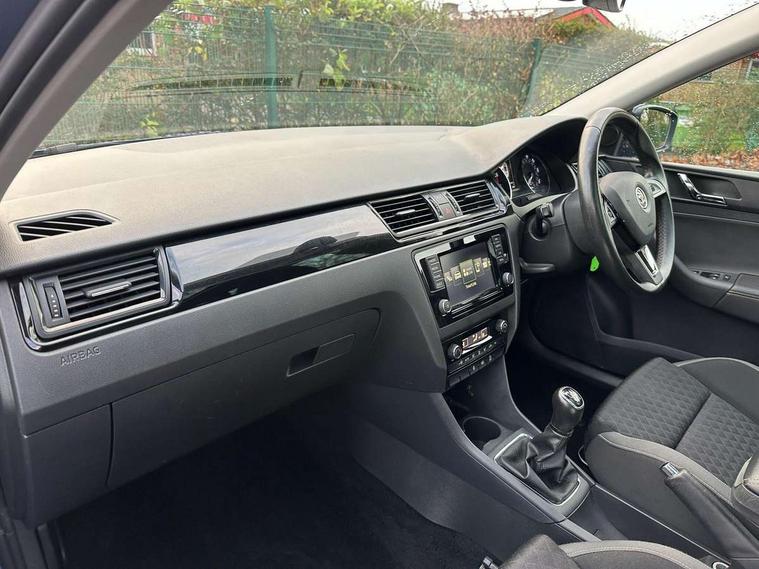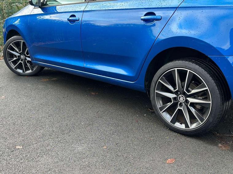 Amundsen sat nav system + DAB, Bluetooth system, Outside temperature gauge, PAS, Service indicator, Trip computer, Voice control system, 6 speakers, Multi device interface, Aero wiper + intermittent function, Body colour bumpers, Body colour door handles, Electric front windows, Electrically adjustable and heated door mirrors, Fixed panoramic glass roof, Heated rear window, Height adjustable headlamps, Radiator grille with chrome surround, Rear electric windows, Rear wash/wipe, Sunset glass from b-pillar back, Tinted glass, 12V Accessory socket in centre console, 3 spoke multifunction steering wheel with audio and phone controls, 60/40 split fold rear seat back, Centre console with storage/cupholders, Climate control air conditioning, Cloth upholstery, Driver seat height adjust, Front armrest with storage box, Front cupholders, Front seatback pocket, Glovebox, Height adjustable front headrests, Height adjustable rear head restraints, Height/reach adjust steering wheel, Interior light, Isofix child seat preparation, Leather gaiter, Leather handbrake lever, Luggage compartment lighting, Passenger sunvisor with vanity mirror, Pollen filter, Sports pedals, Sports seats, Storage compartment in rear doors, Sunglasses storage, Ticket holder, Style pack - Rapid SE Sport, 3x3 point rear seatbelts, ABS+ASR+MSR, Curtain airbags, Driver and passenger airbags, Driver seatbelt warning indicator, ESP, Fuel cut off safety device, Hydraulic Brake Assist (HBA), Passenger airbag deactivate switch, Side airbags, Traction control, Two tone horn, Tyre pressure monitor, Alarm/immobiliser, Remote control central locking, Chrome interior trim, 17" Savio black alloy wheels,